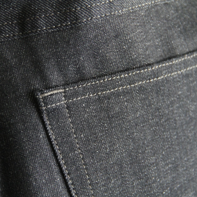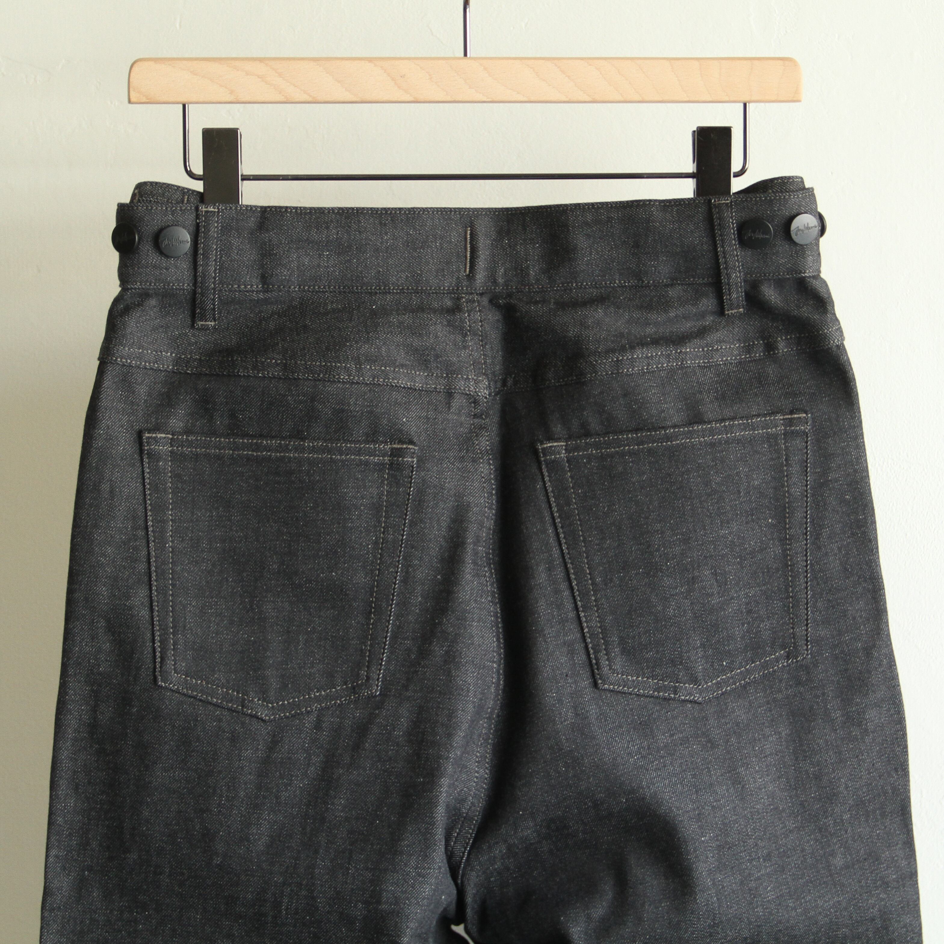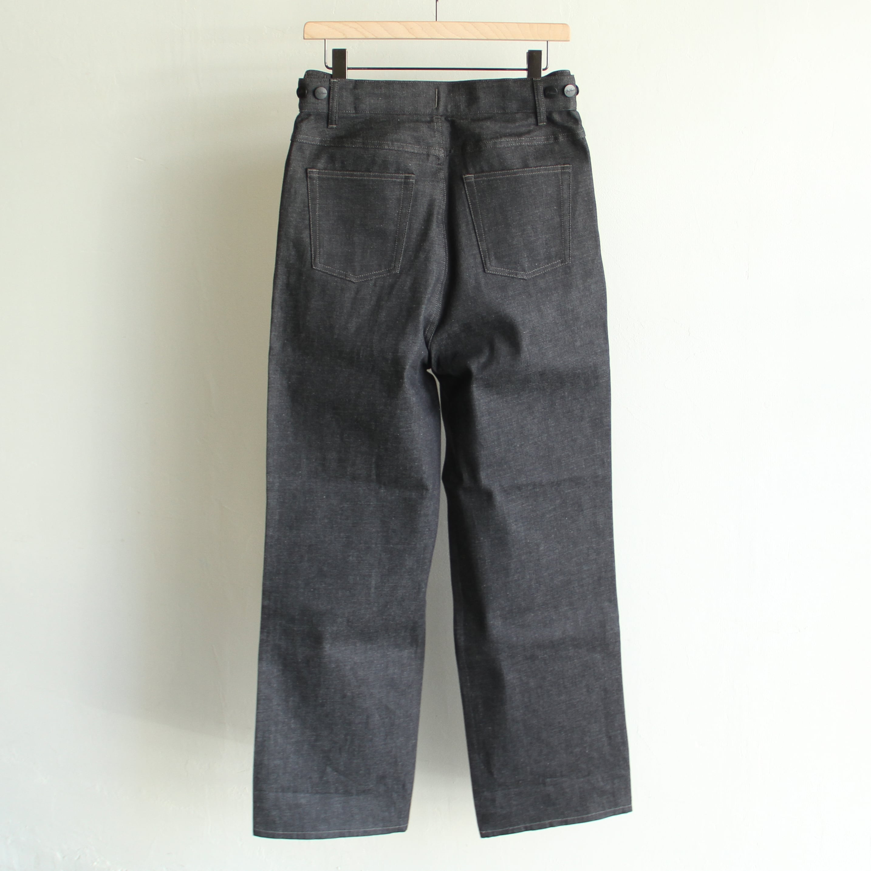 中太シルエット、通年通して着用できるデニム生地が魅力です。