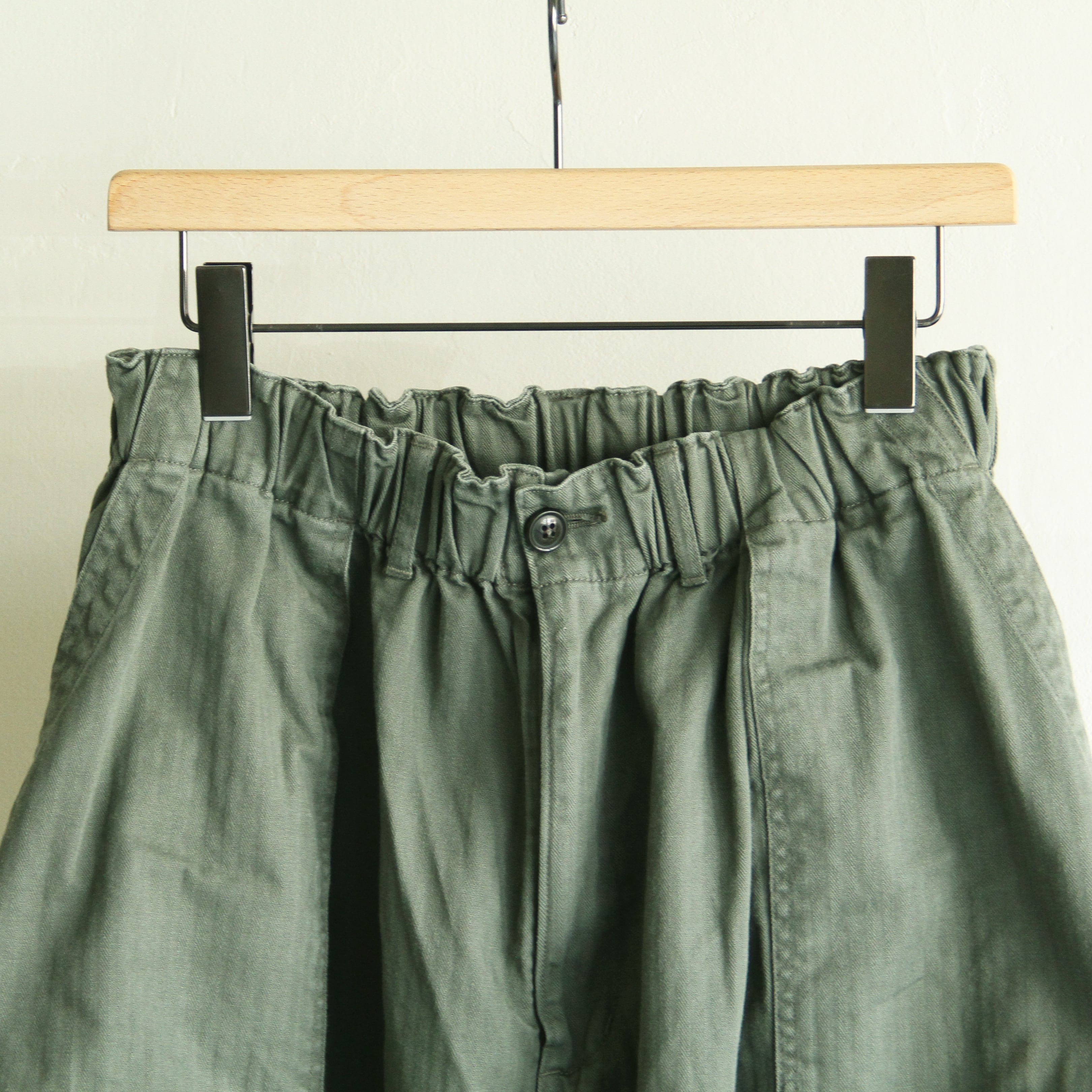 膝から下がテーパードしたボリュームのあるシルエットのイージーパンツです。