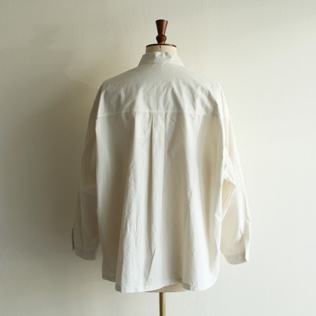 25ssのシーズンでも好評だった衿と前立てに施された3本ステッチがアクセントとなった、台衿のないリラックスシルエットのシャツです。製品染めによる独特な風合いと相まって、他にはない個性的な仕上がりとなっています。シンプルながらも洗練されたデザインは汎用性の高いアイテムとなっております。