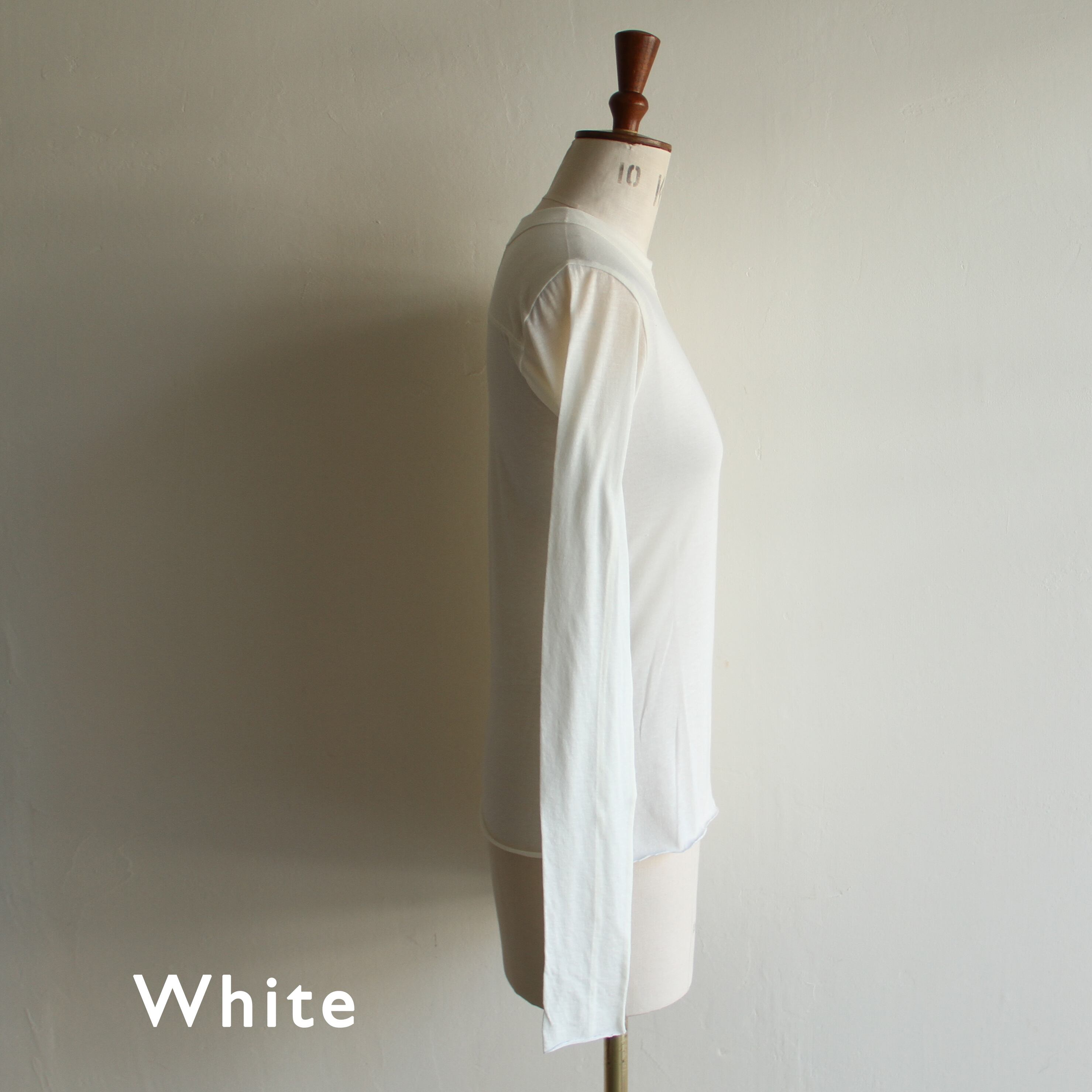 素材はスーピマコットンとカシミアを混紡した糸を使用した、風合いの良い天竺素材。