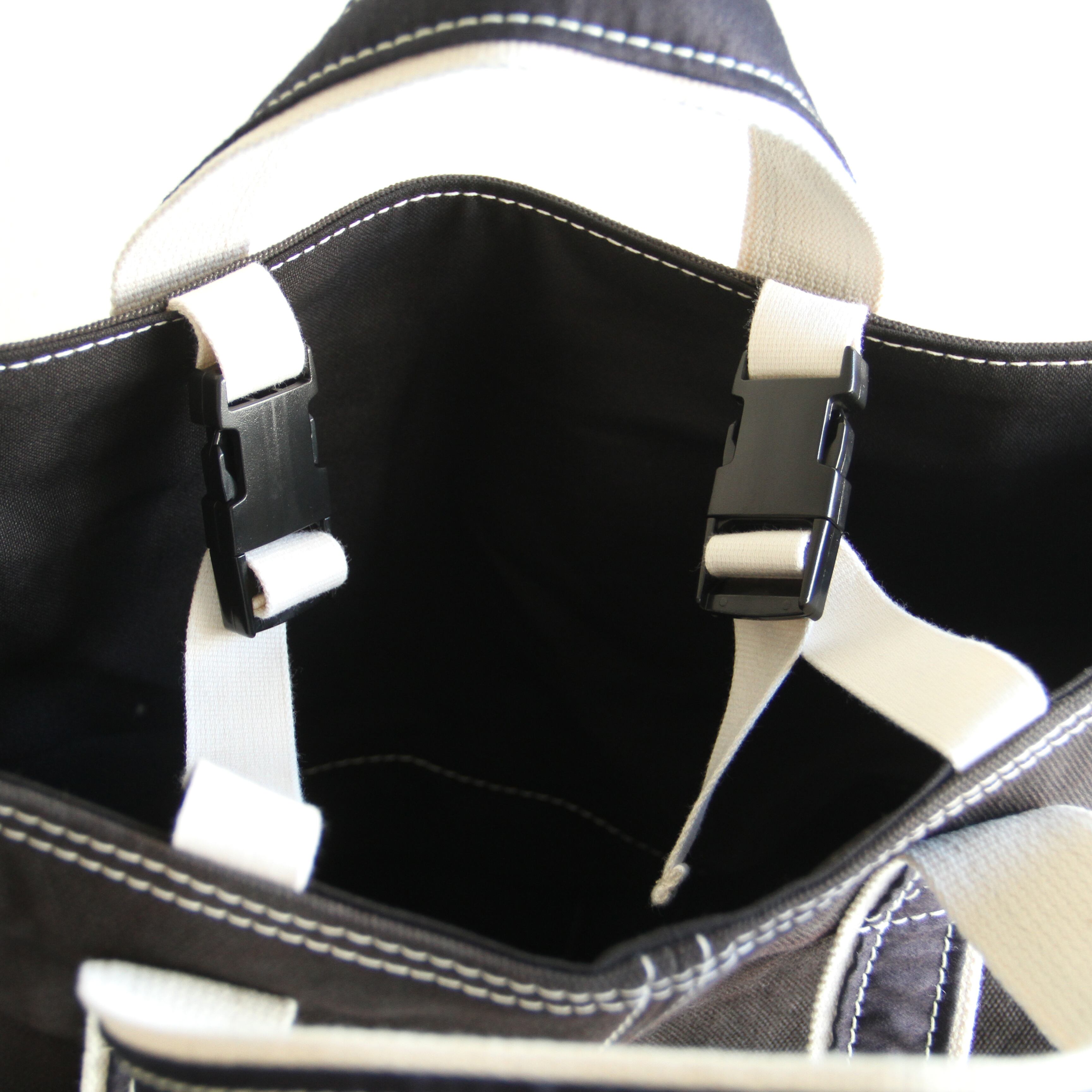 80〜90年代に作られていた、リュックとしても背負えるタイプのトートバッグをベースに作成。