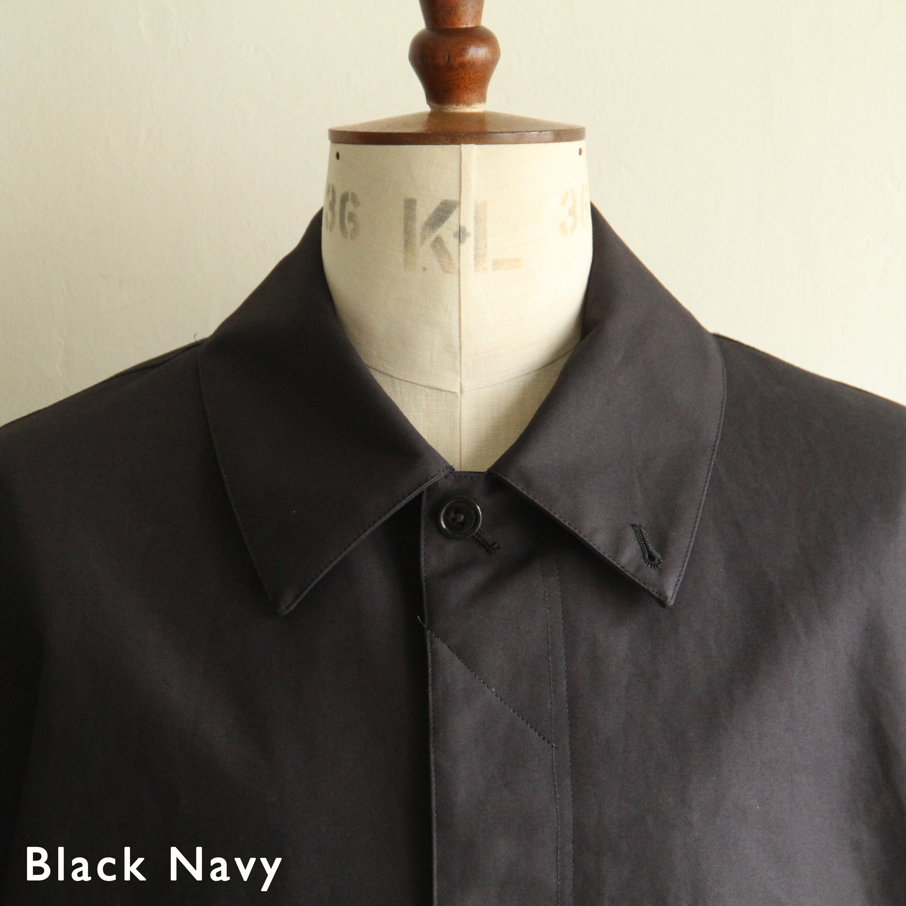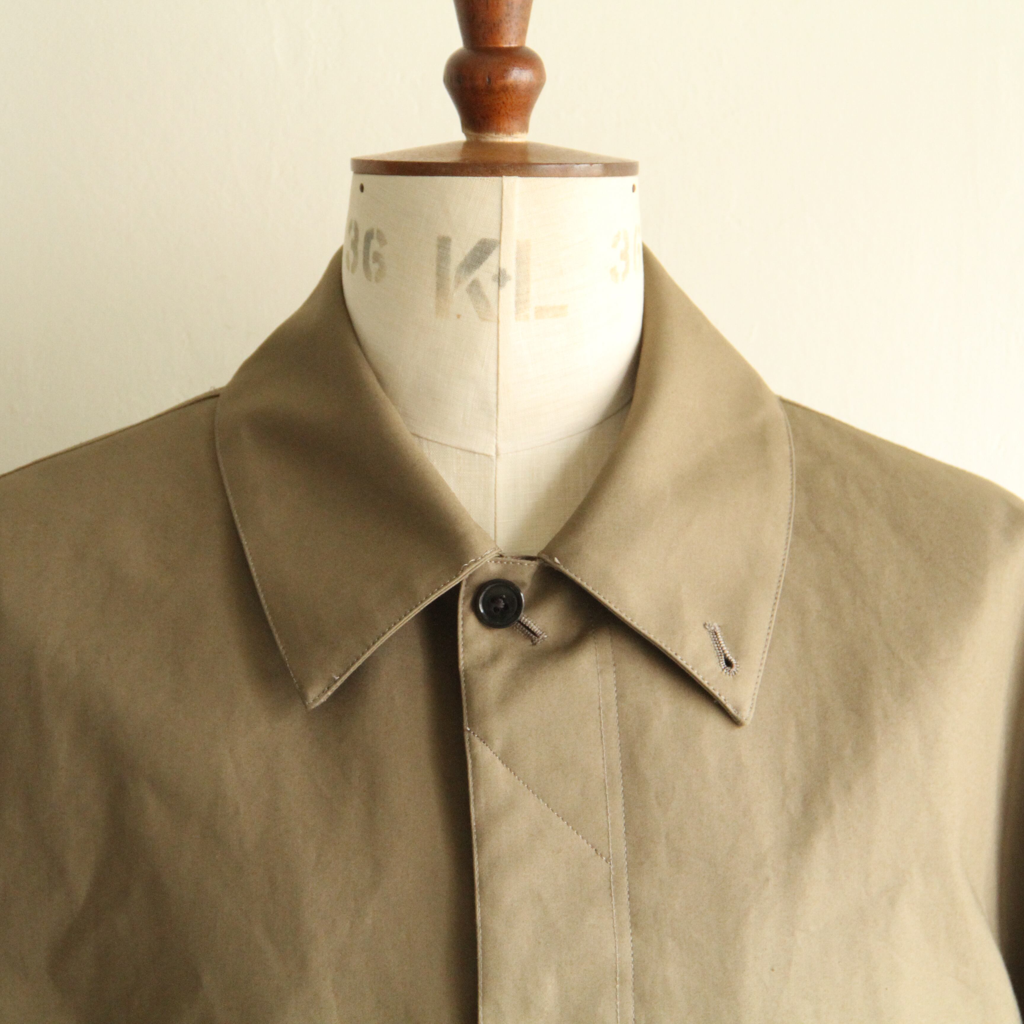 ムラ感が少ないコットンタイプライターに機能性フィルム(防風・透湿)を生地の間に貼ることで、綿素材ですが機能性を持った、テック感のある特徴的な素材に仕上げました。