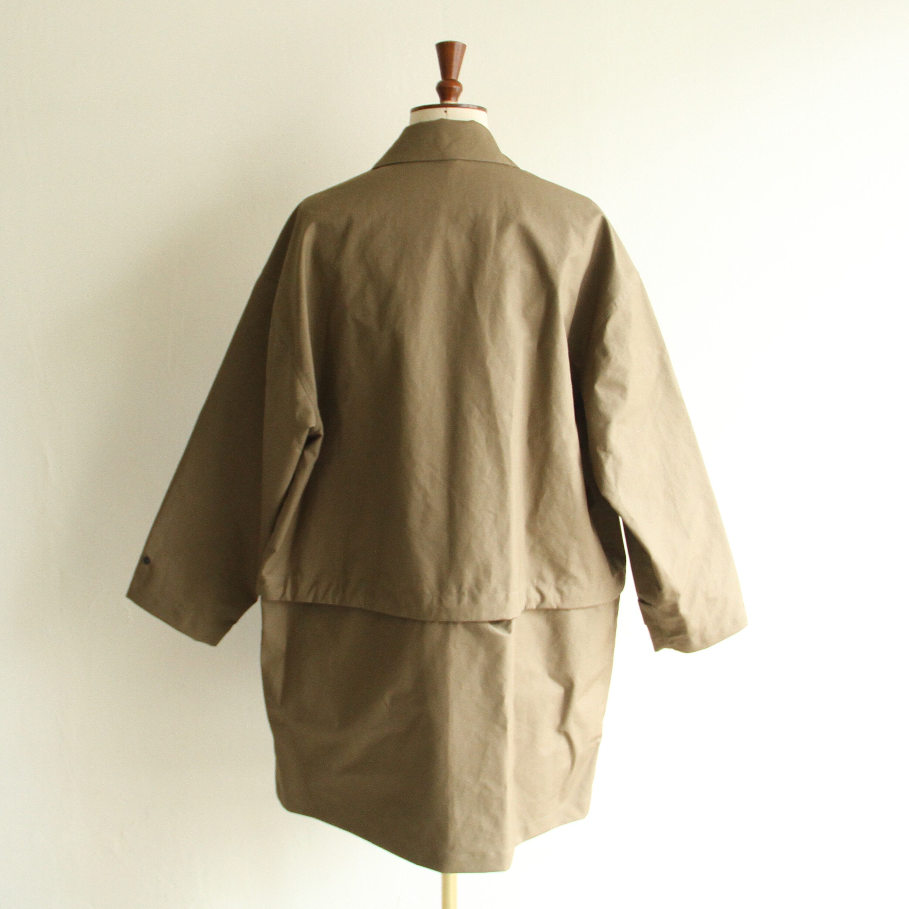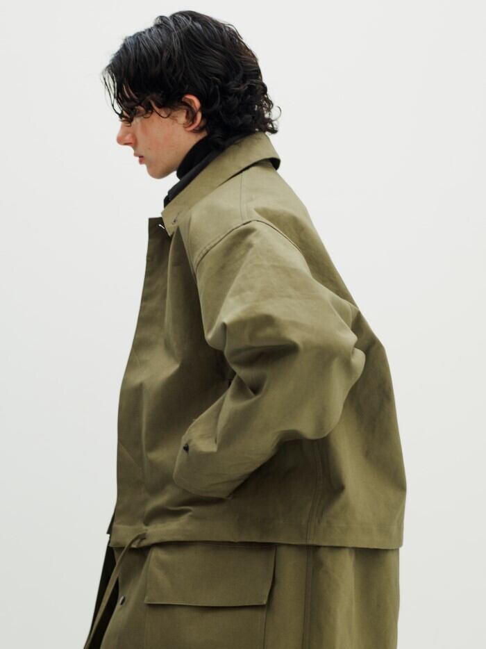 コート/ブルゾンの2WAYでの着用が可能なアウターです。いずれの状態でも自然でバランスの取れたシンプルなデザインながら、コンセプトが一目で伝わる点が特徴的です。機能面での特徴も持ち合わせた、魅力的なアイテムです。