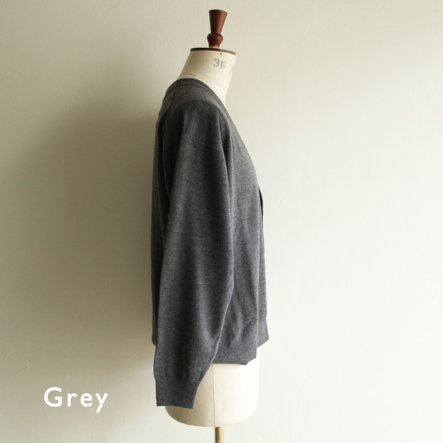 ウールとシルクを甘撚りで撚糸したオリジナルの糸で12Gのカーディガンを作成。