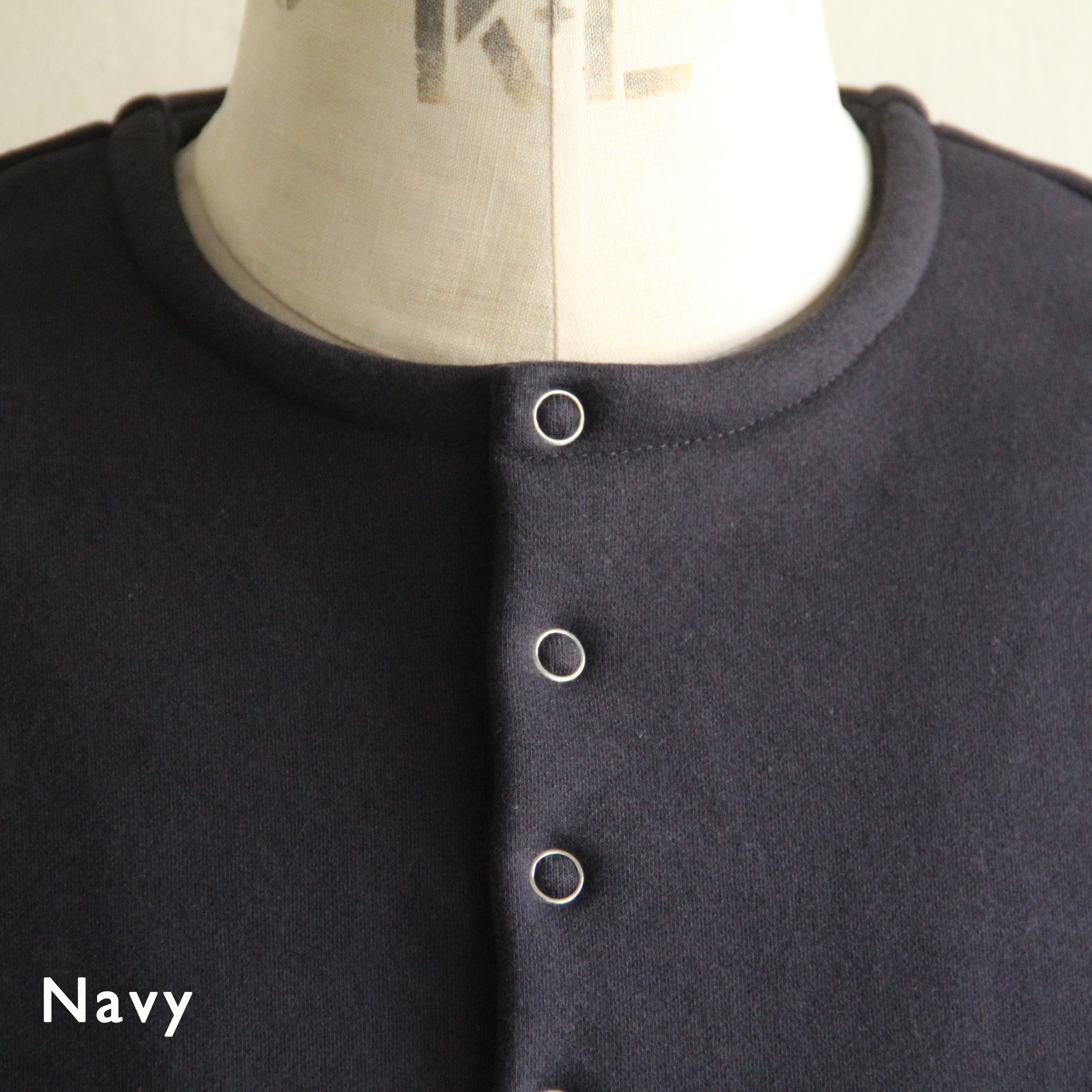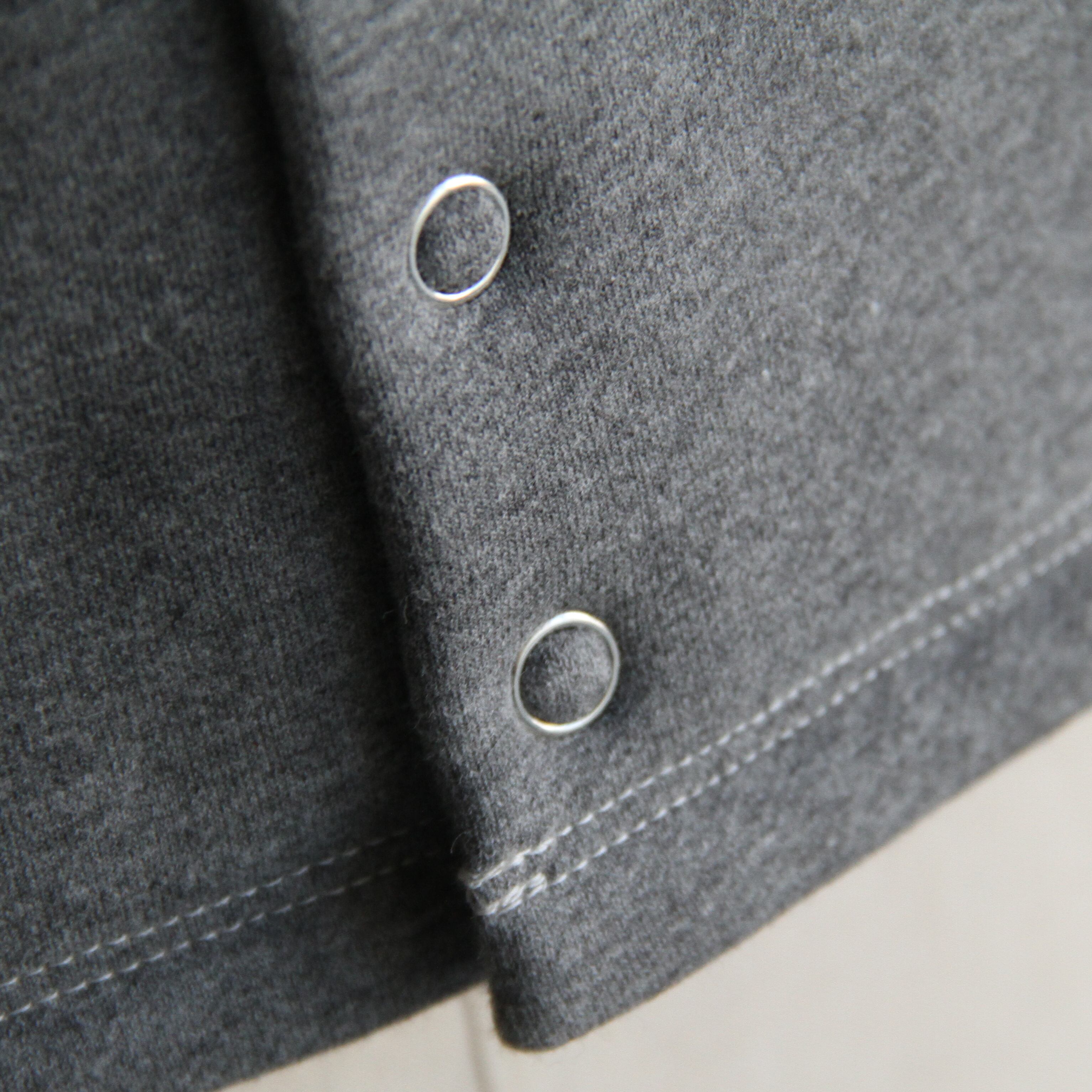 クルーネック&スナップボタンが上品で、ジャケットのような雰囲気で着用していただけます。両裾サイドのタブでシルエットの変化をお楽しみください。