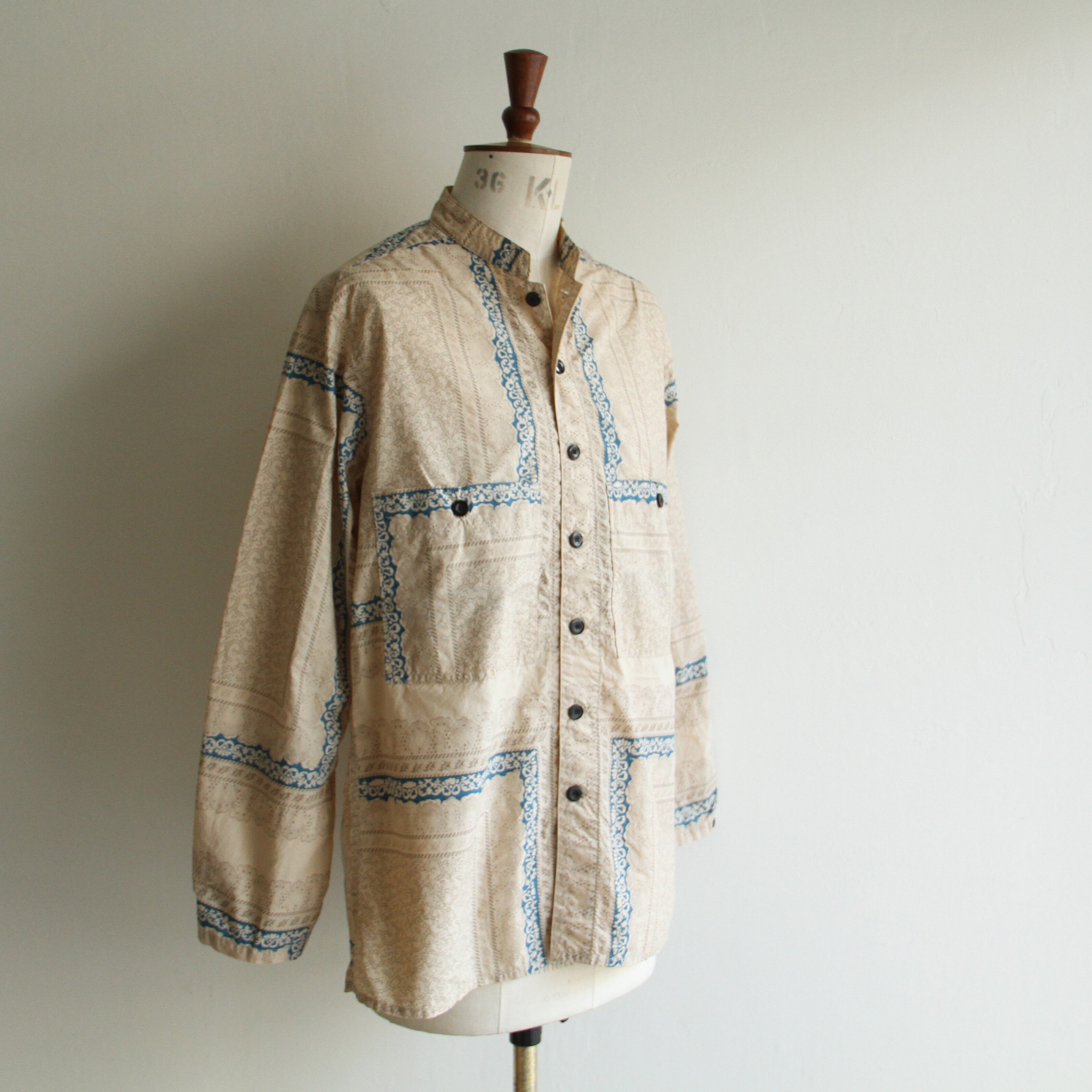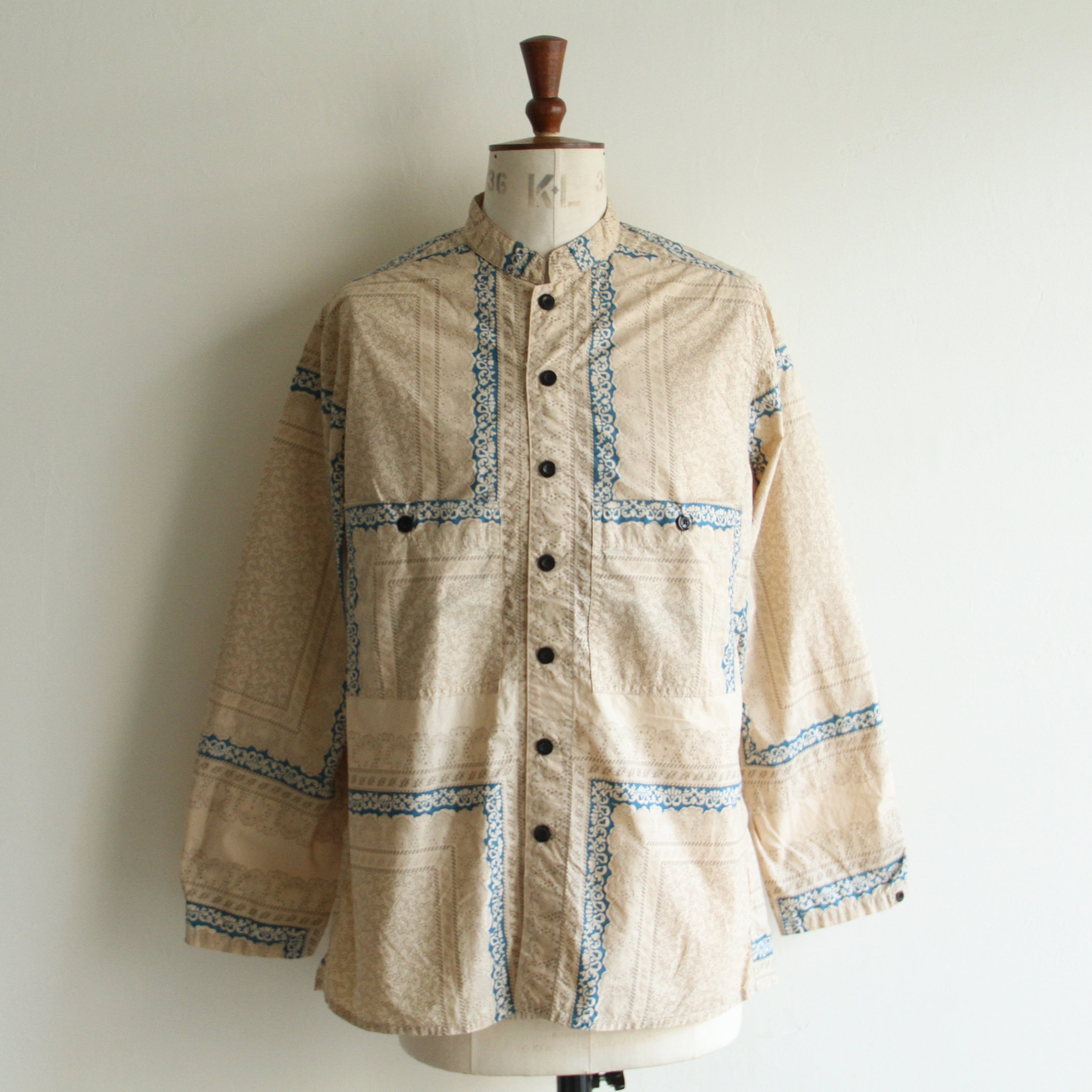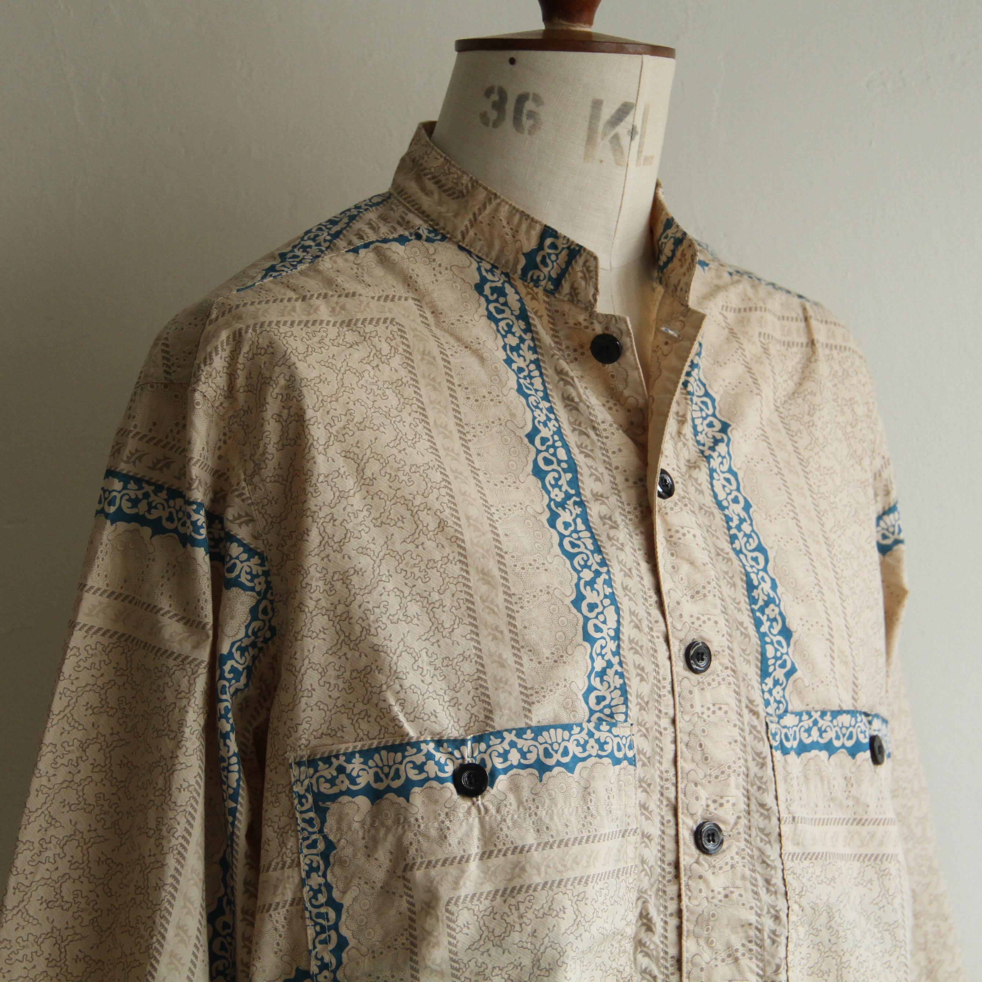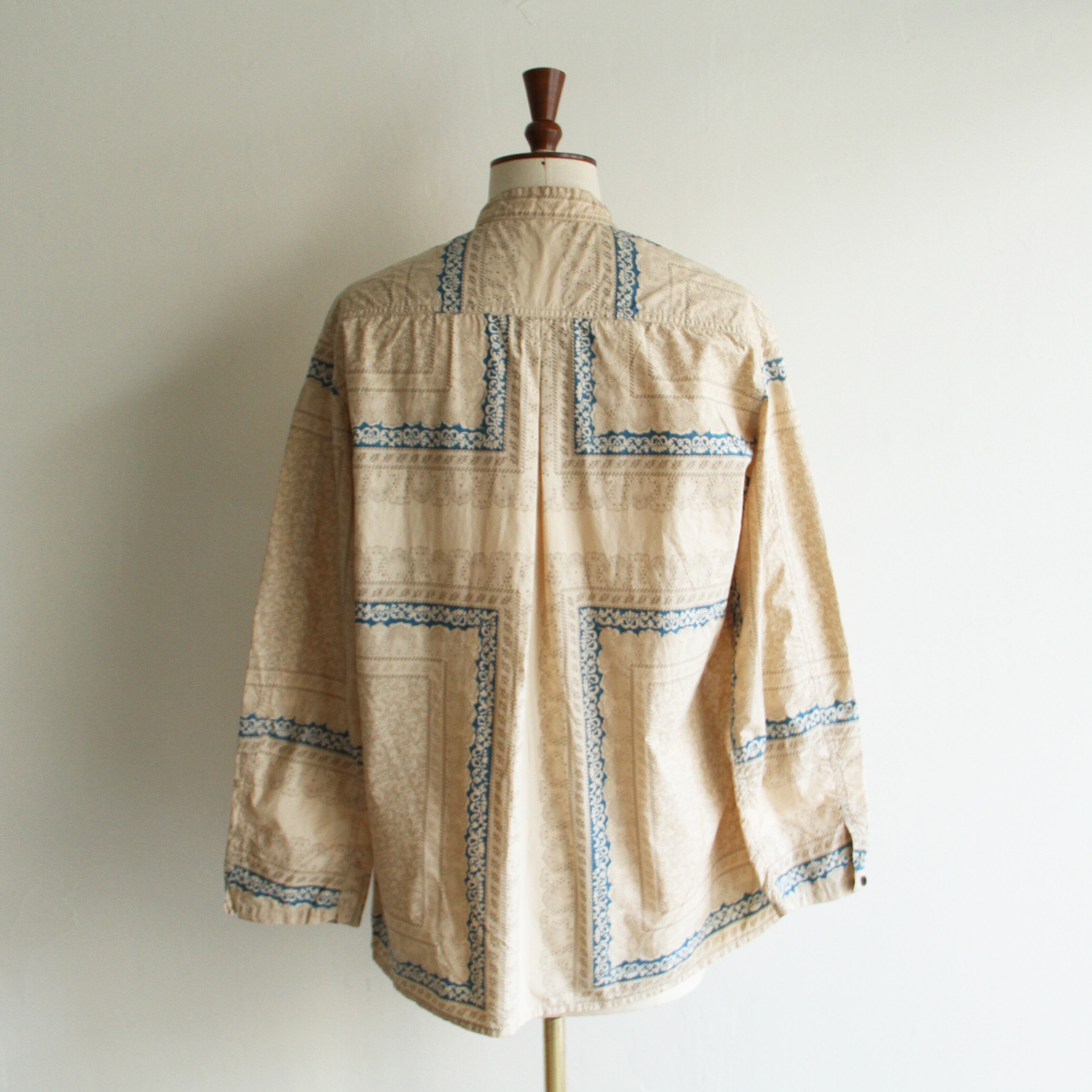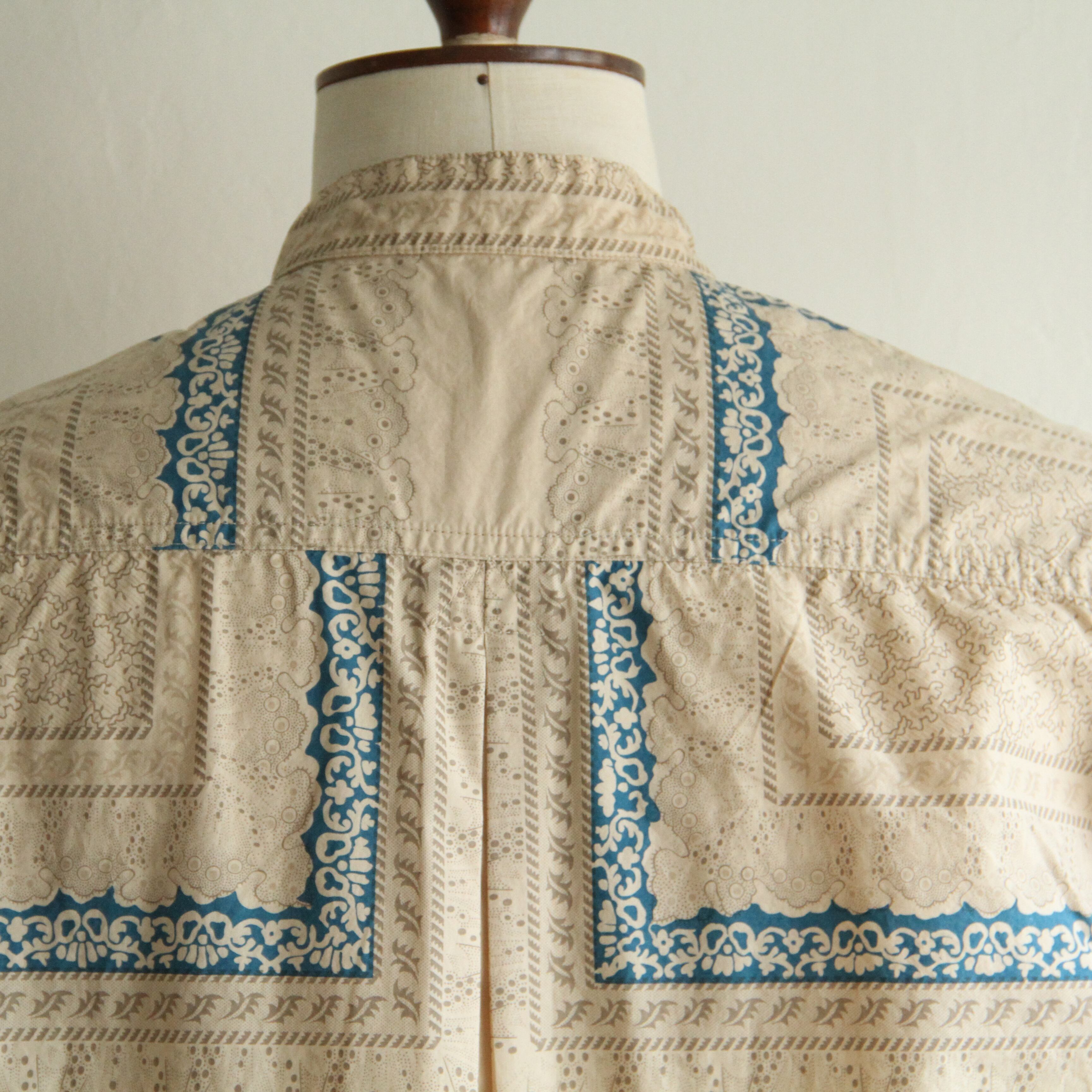 ブルー部分はインディゴプリントになり地色合わせて4色で柄を表現しています。