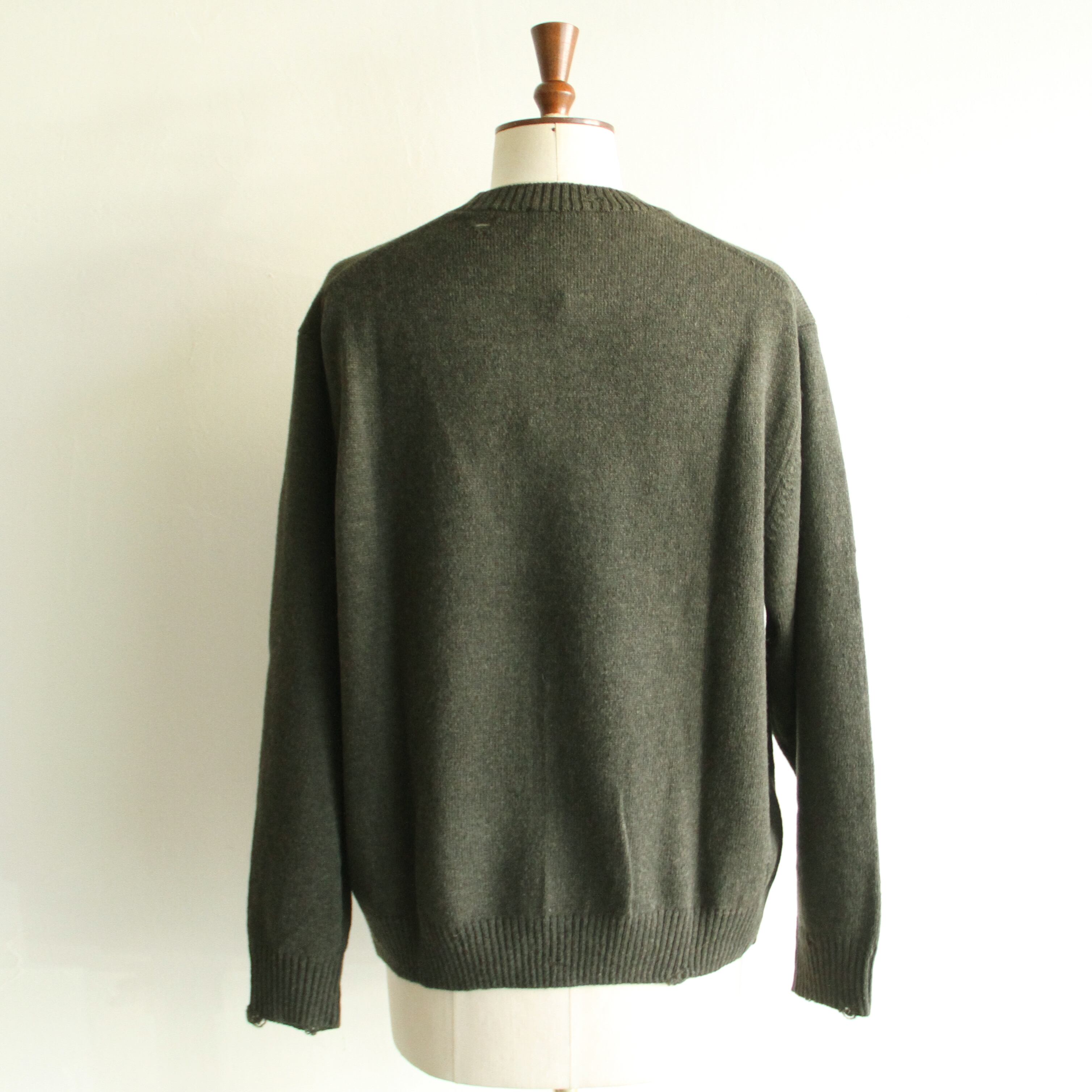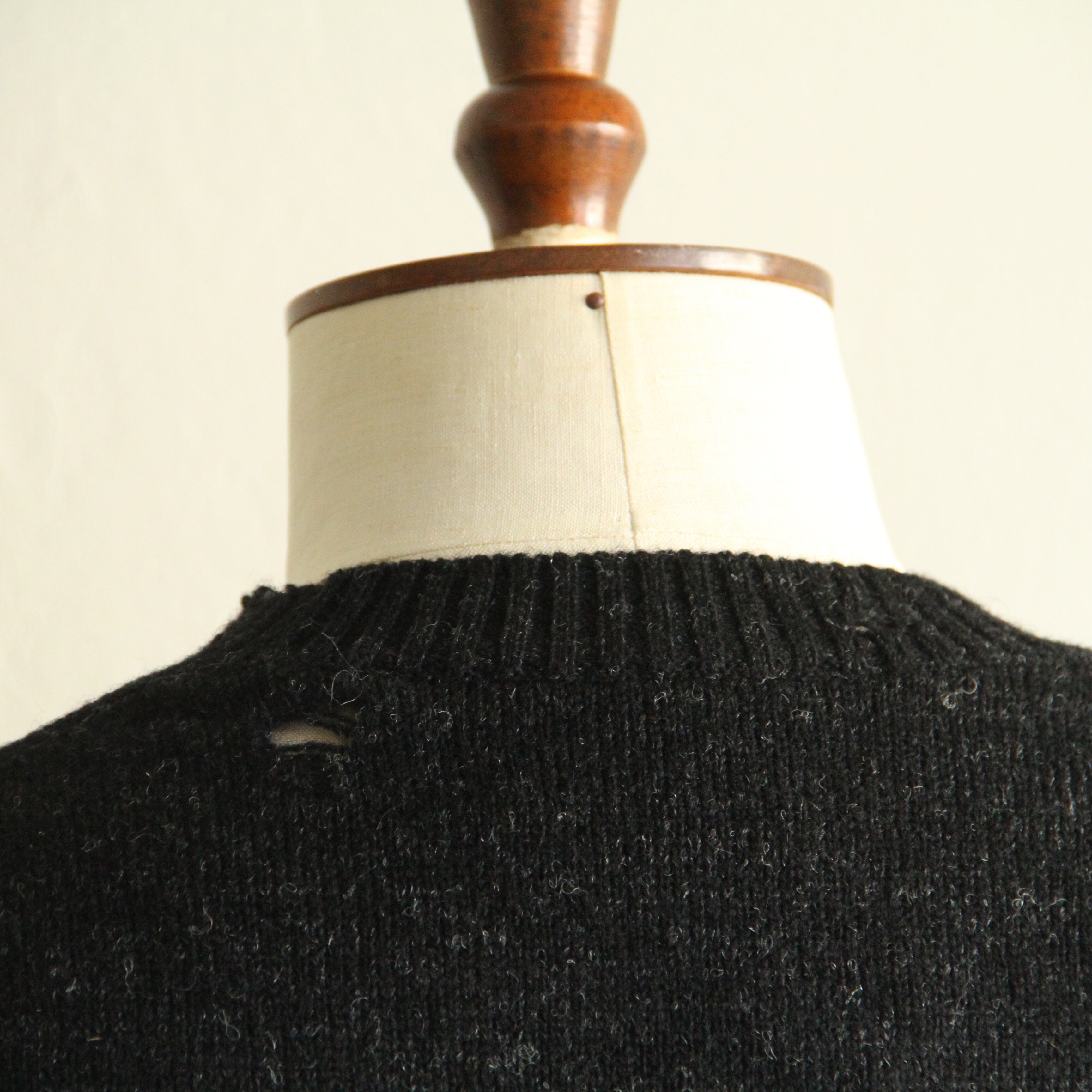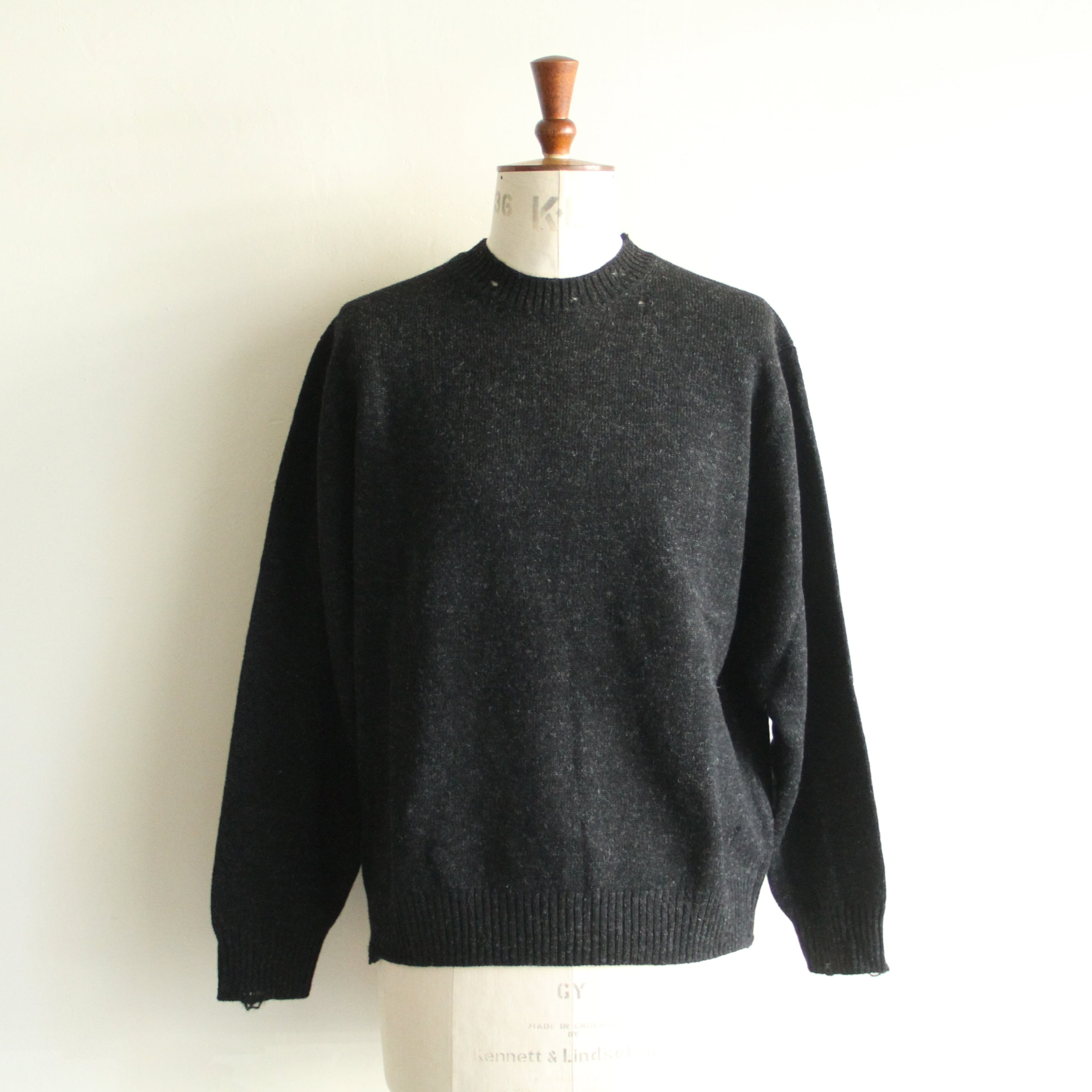 シェットランドウールを使用したダメージライクプルオーバーニット。