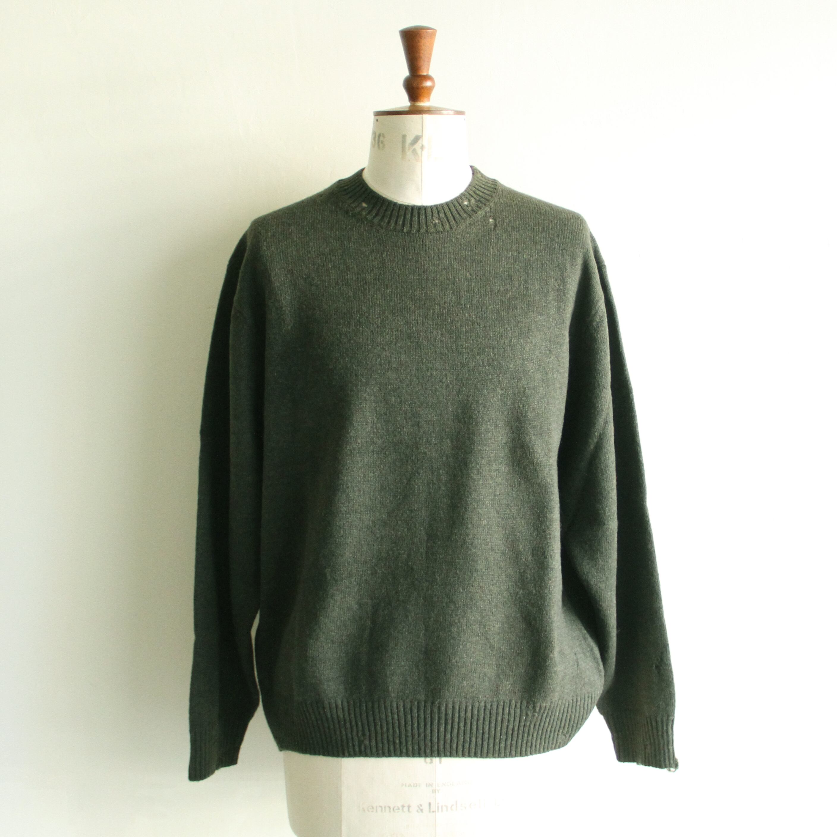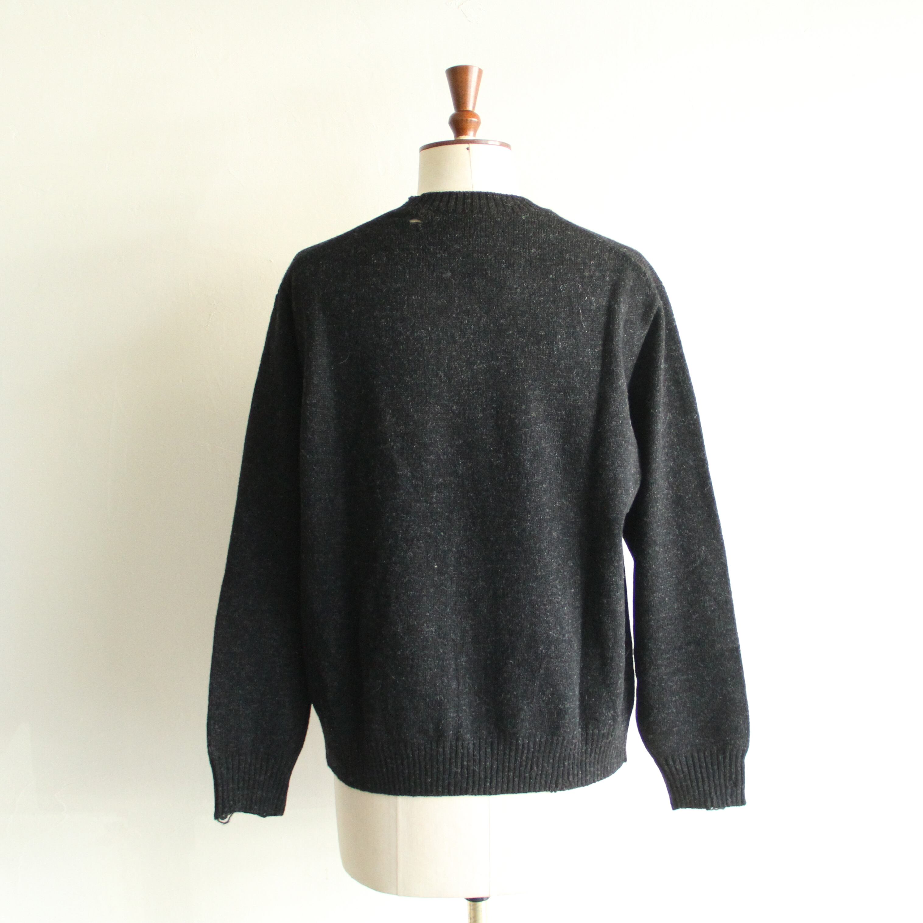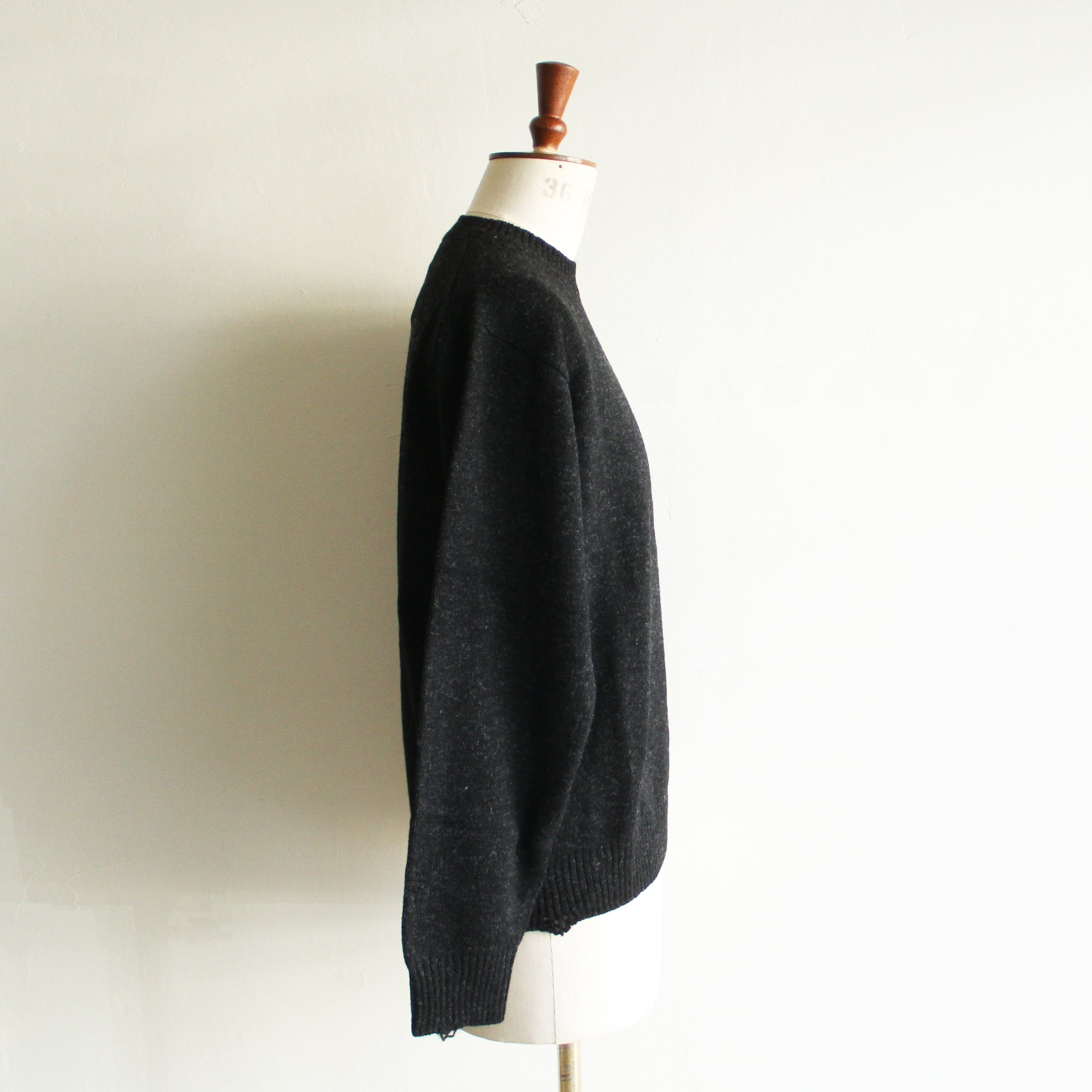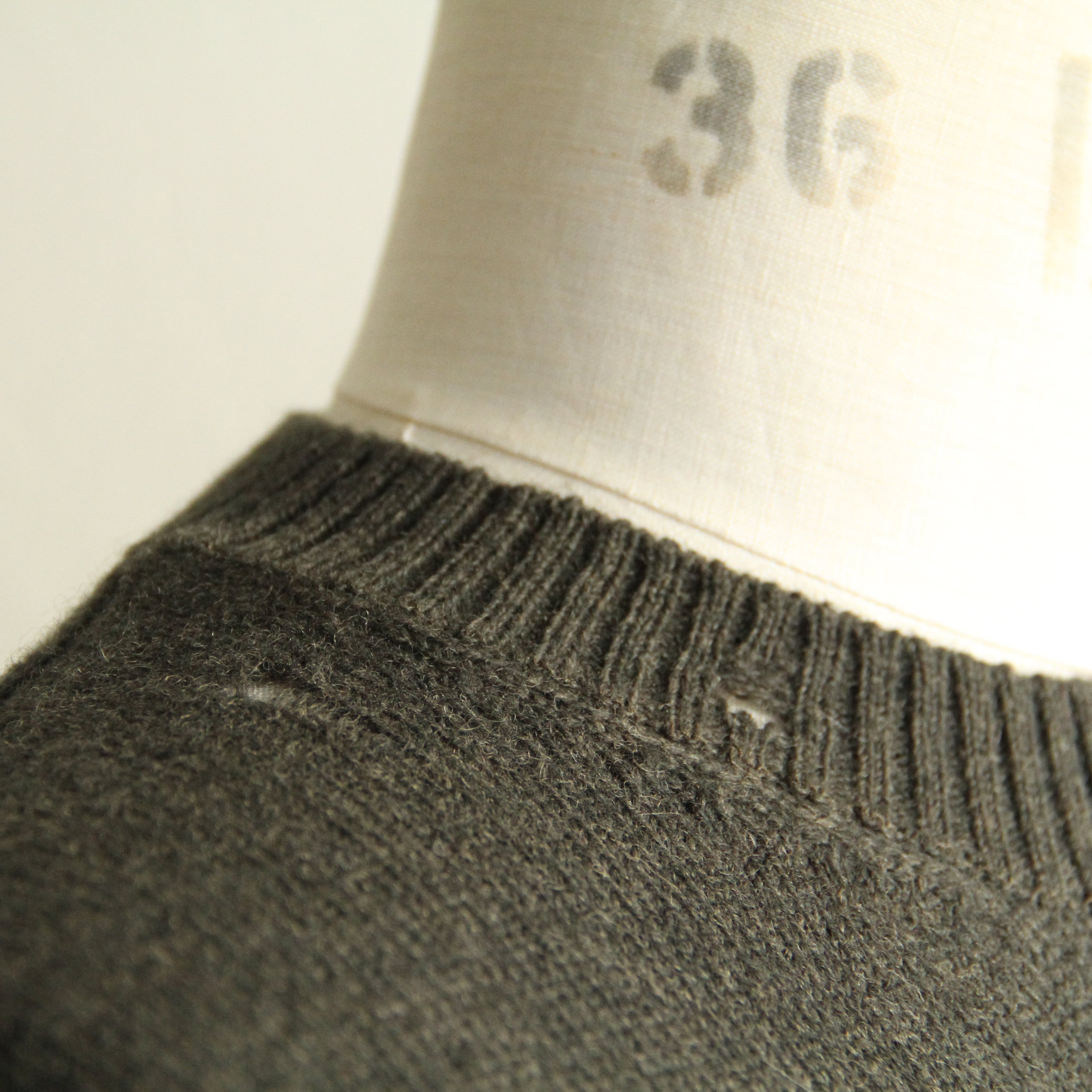 シェットランドウールを使用したダメージライクプルオーバーニット。