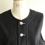 大きめポケットと刺繍使いが特徴のフェイクスウェード素材のベスト。