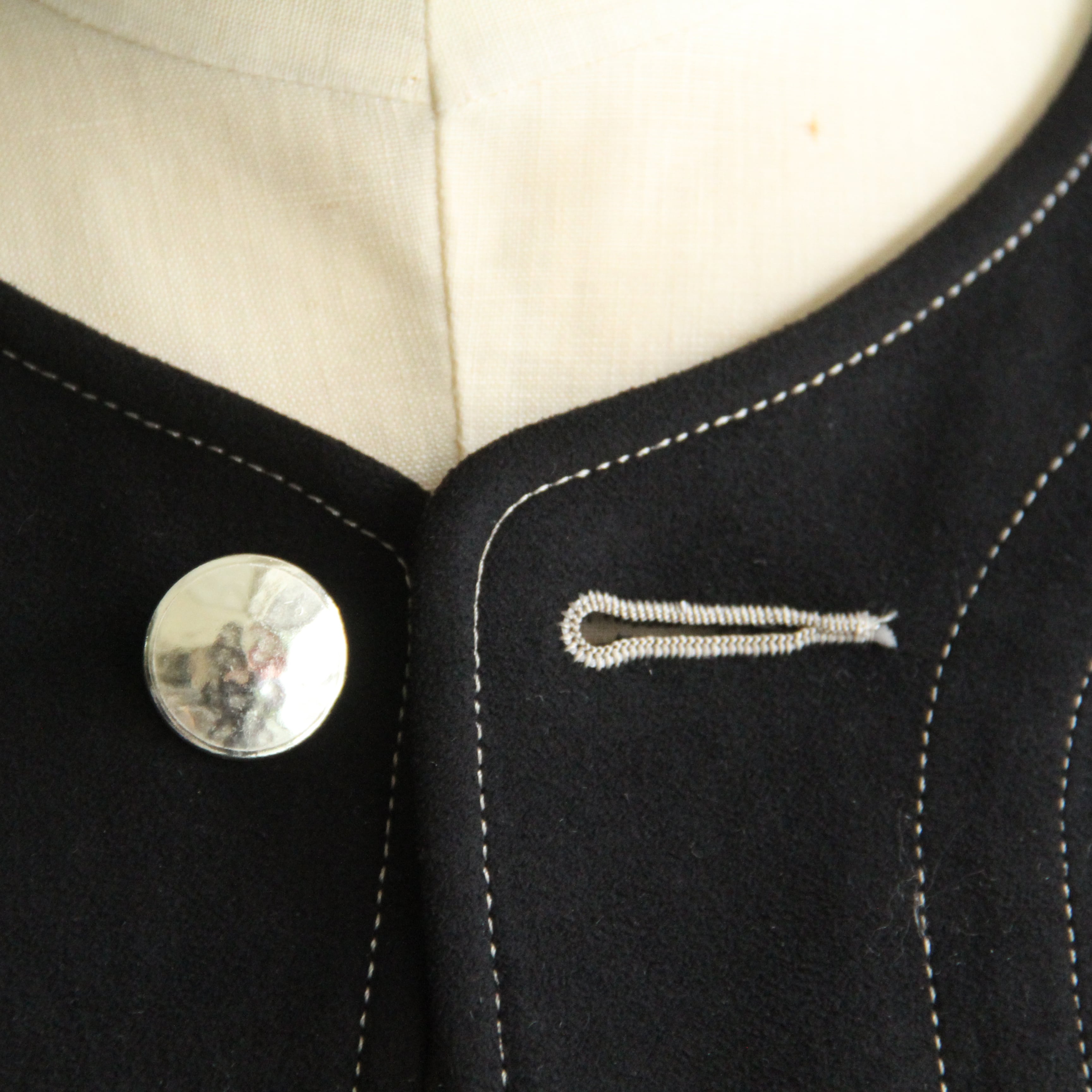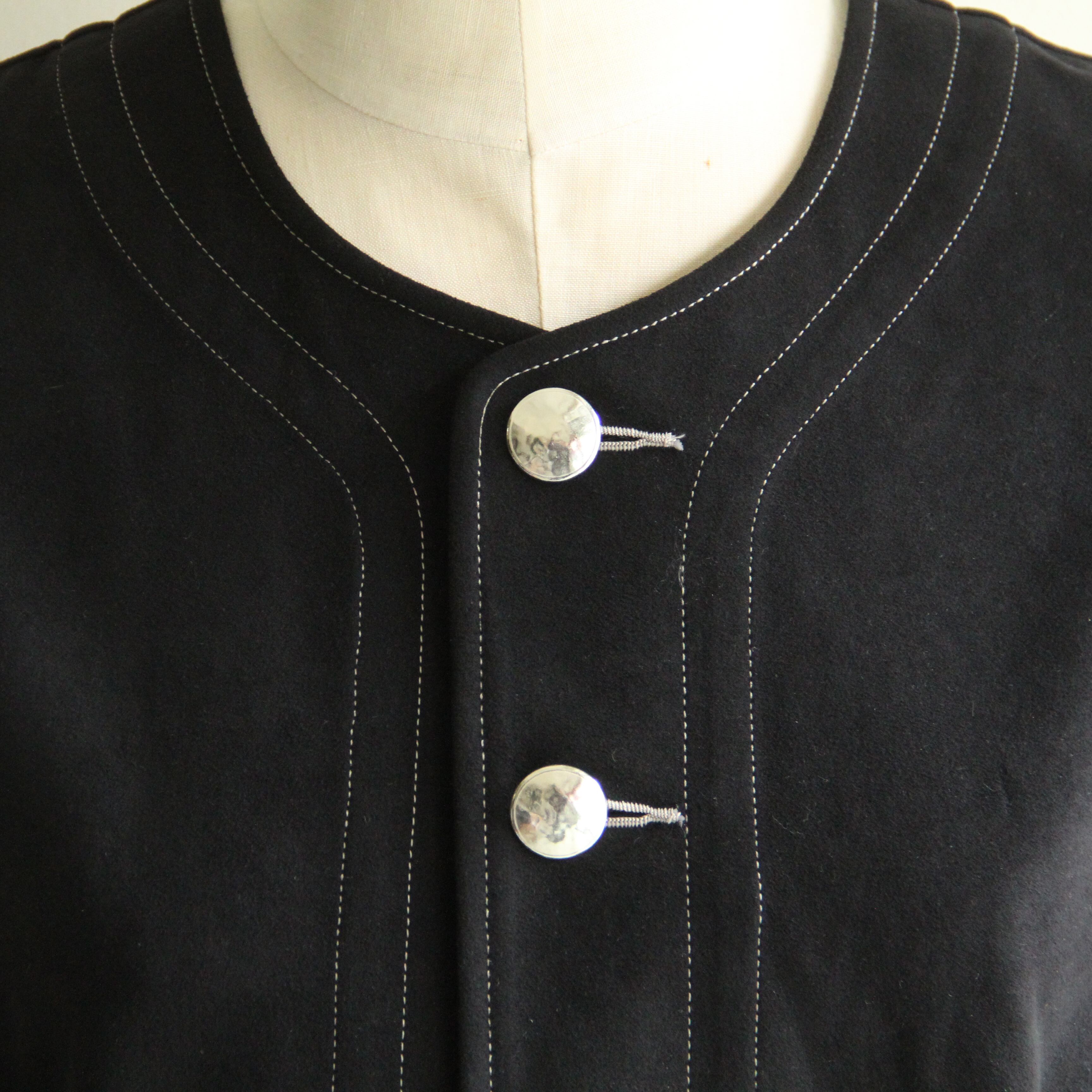 人口皮革というスウェード調に作られた生地を使用しています。高級感があるのに手洗いができるのが嬉しいです。ボタンは一つひとつ型に入れて仕上げた金属のボタンを使用しています。