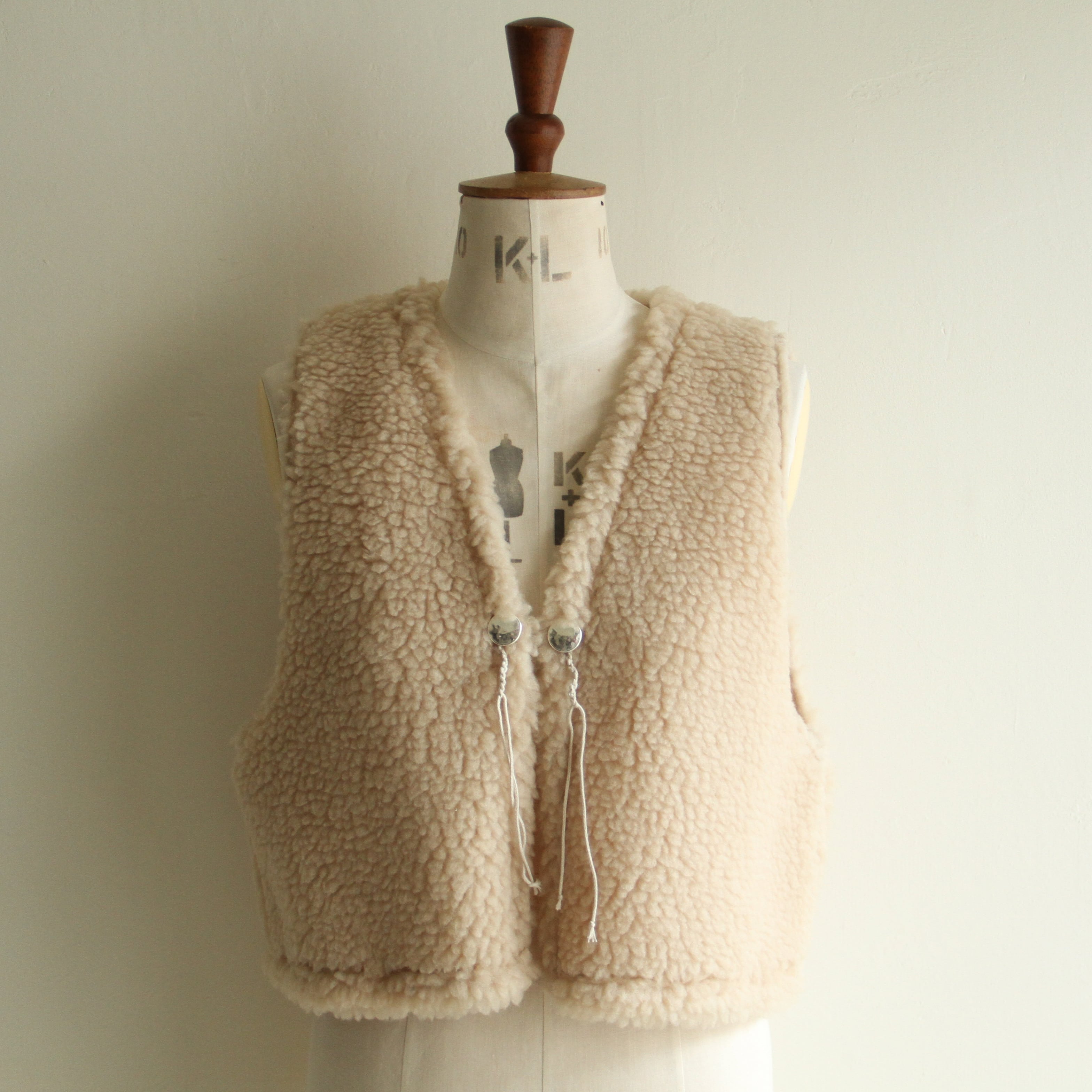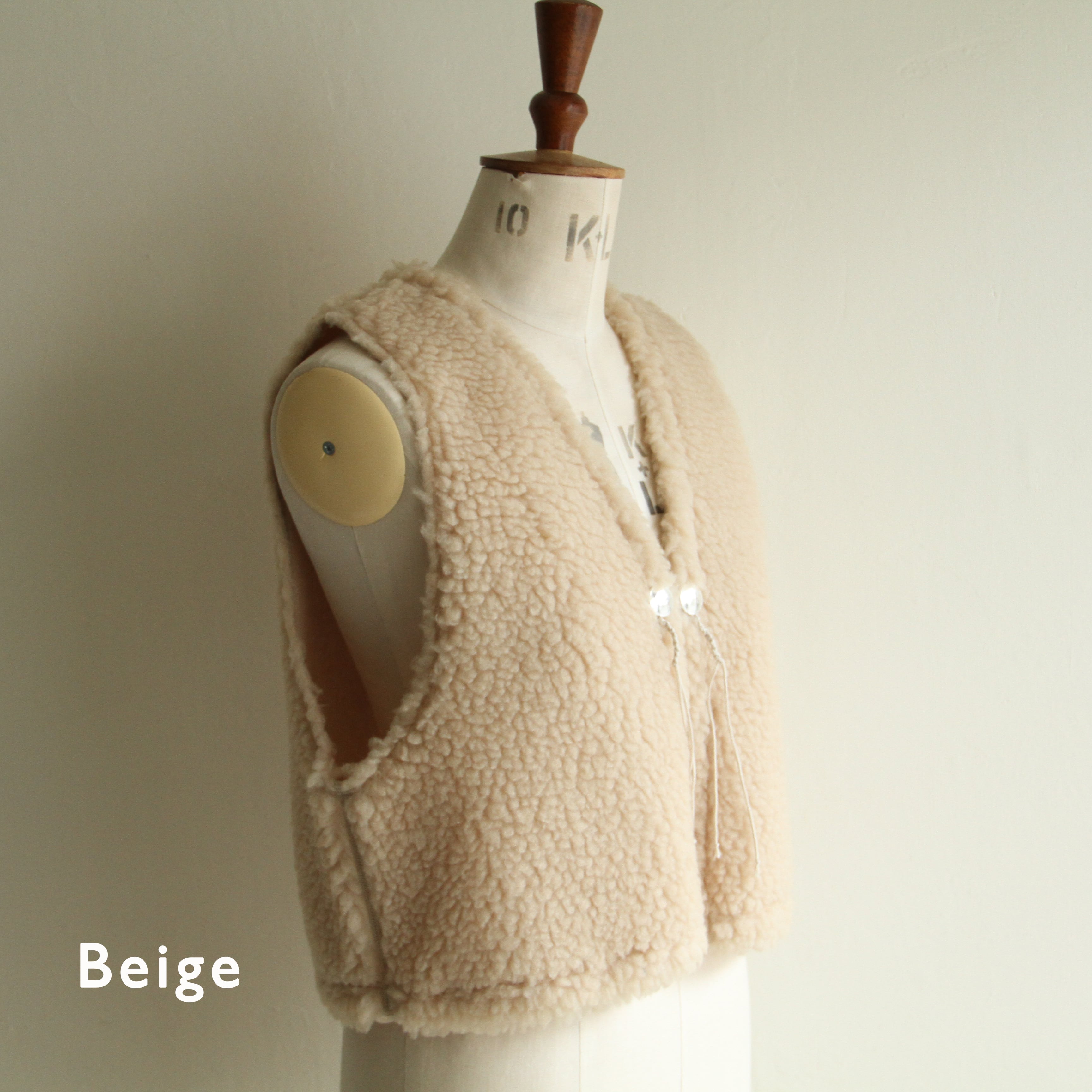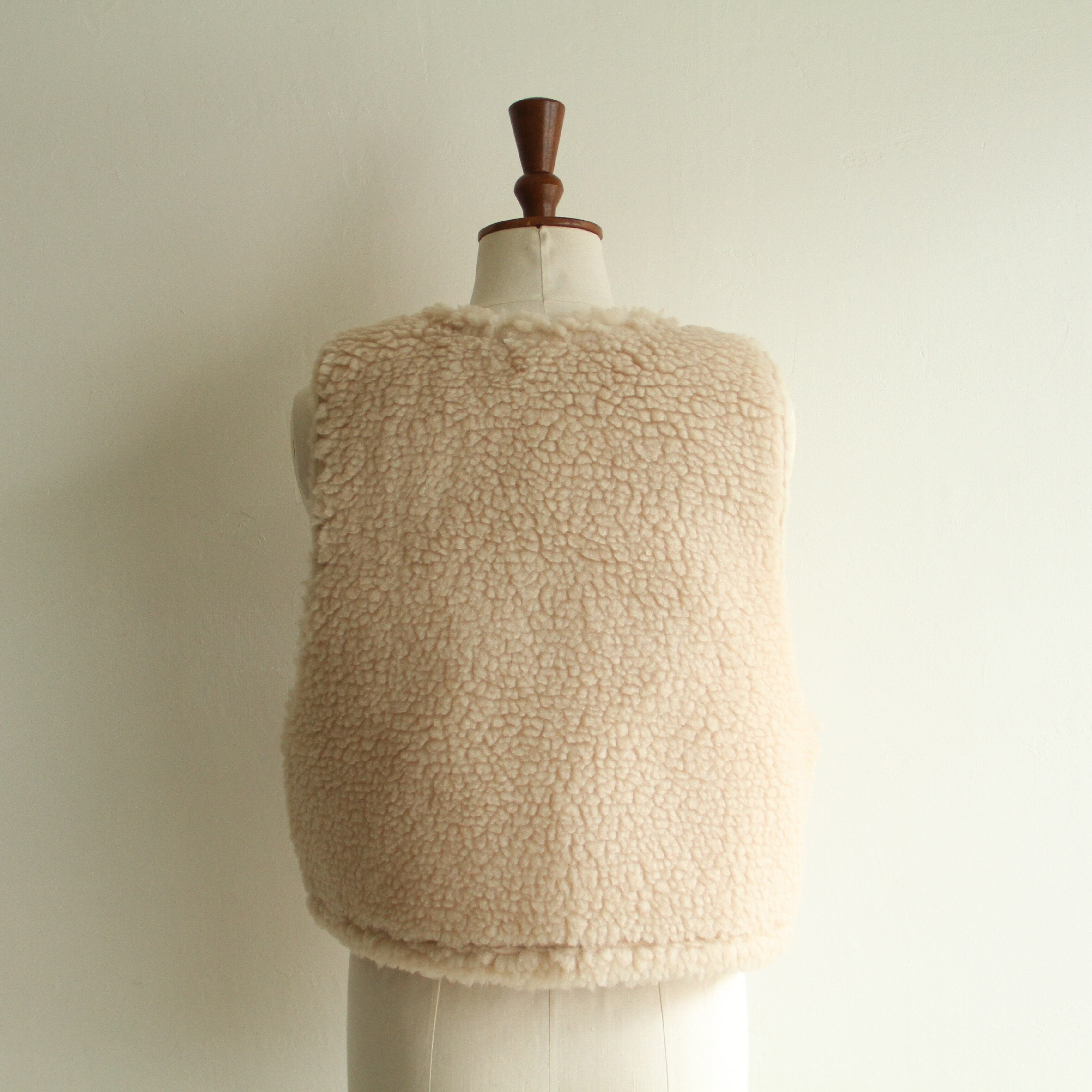 普遍的な可愛さがあるボアに、金属ボタンでエッジを効かせたベスト。