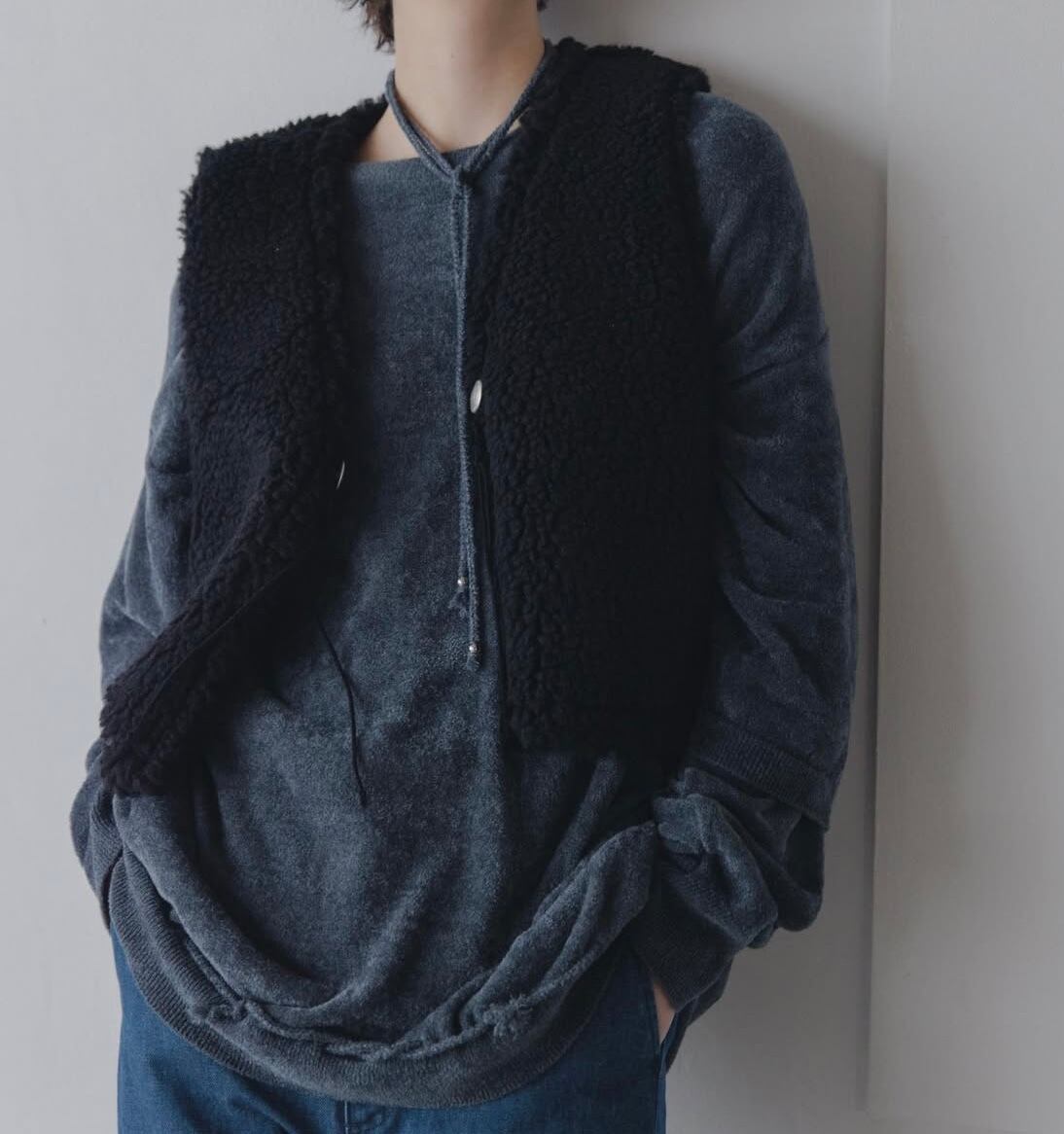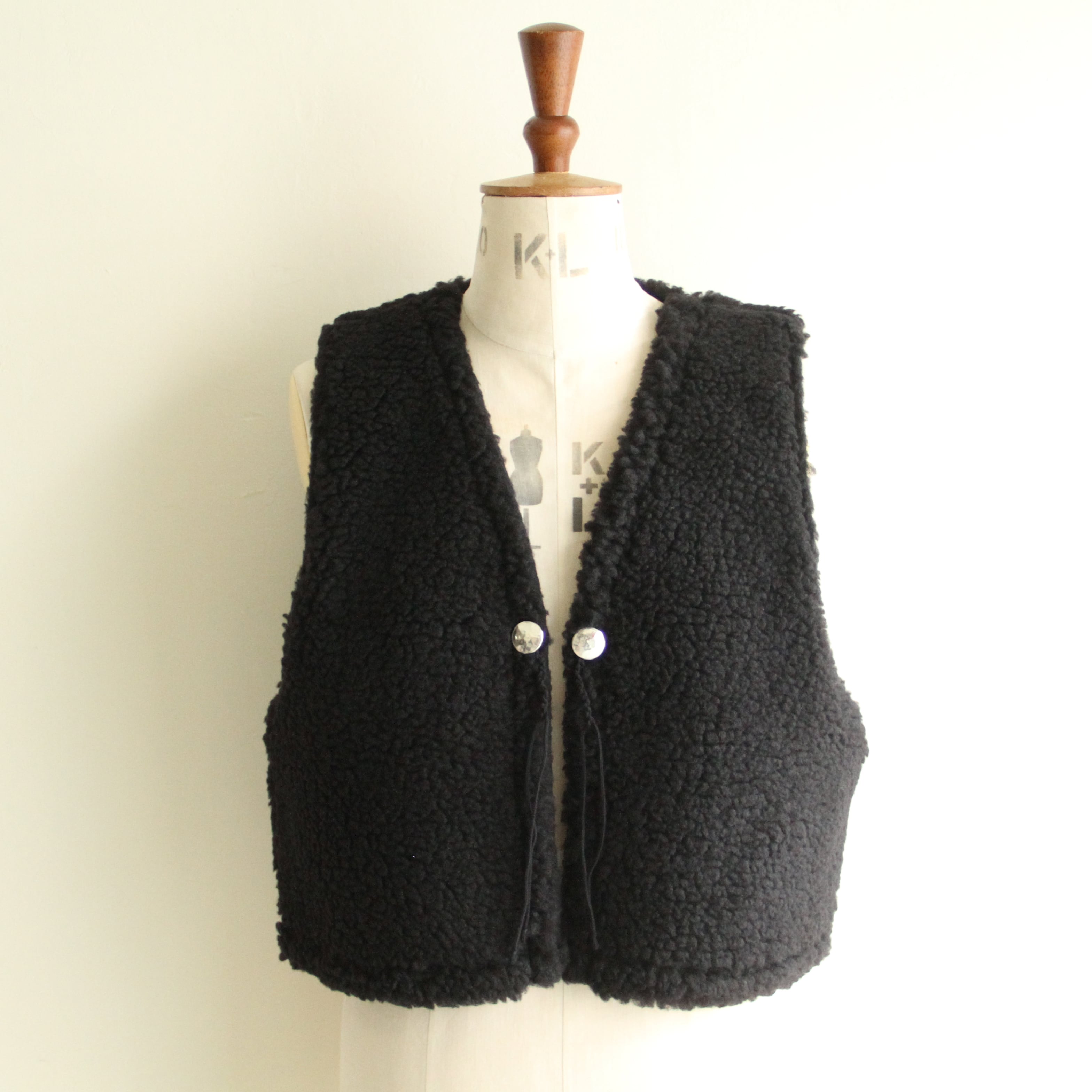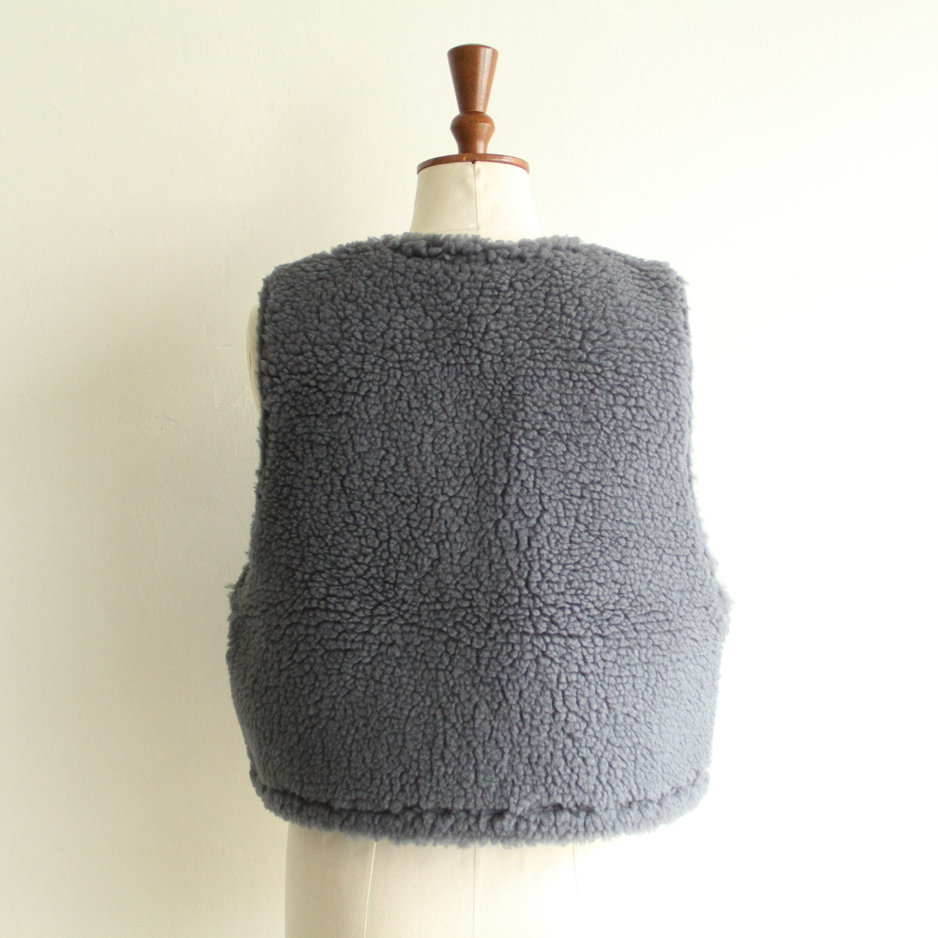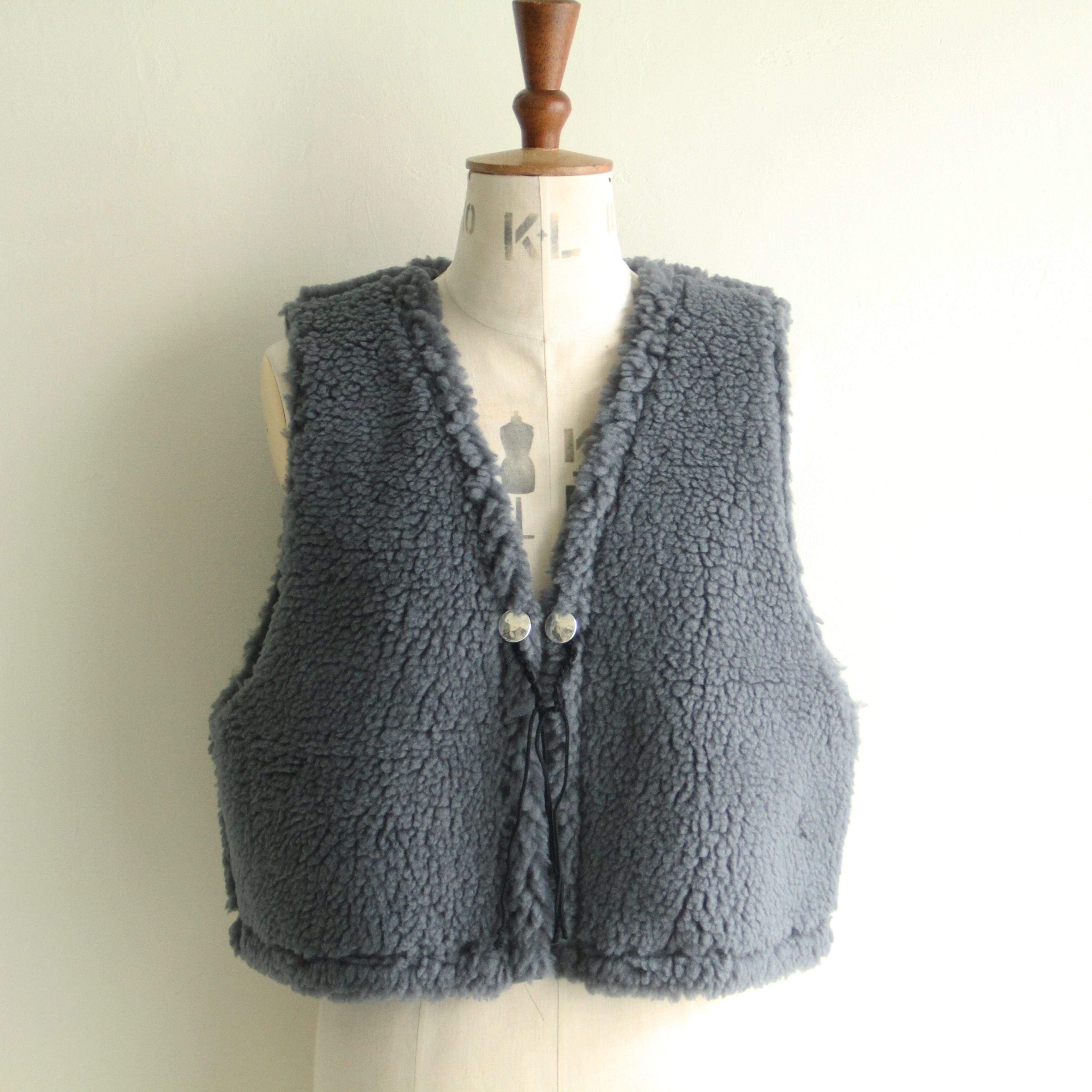 普遍的な可愛さがあるボアに、金属ボタンでエッジを効かせたベスト。