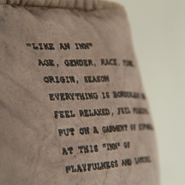 ピグメントダイ(顔料染め)の手法を用いることで、綿とナイロンの染まり方に差が生まれ、フェード感のあるムラと深みのあるトーンを表現しています。