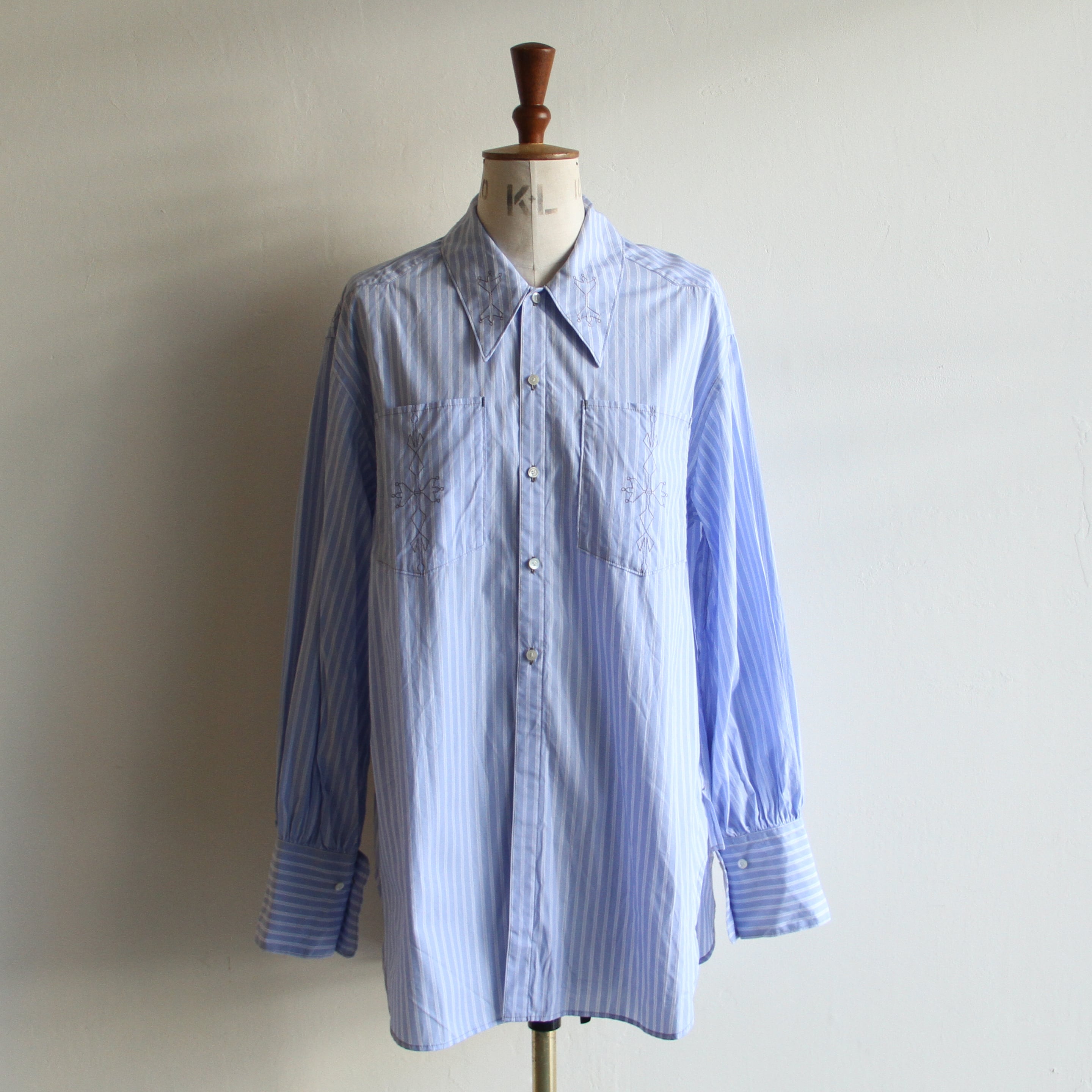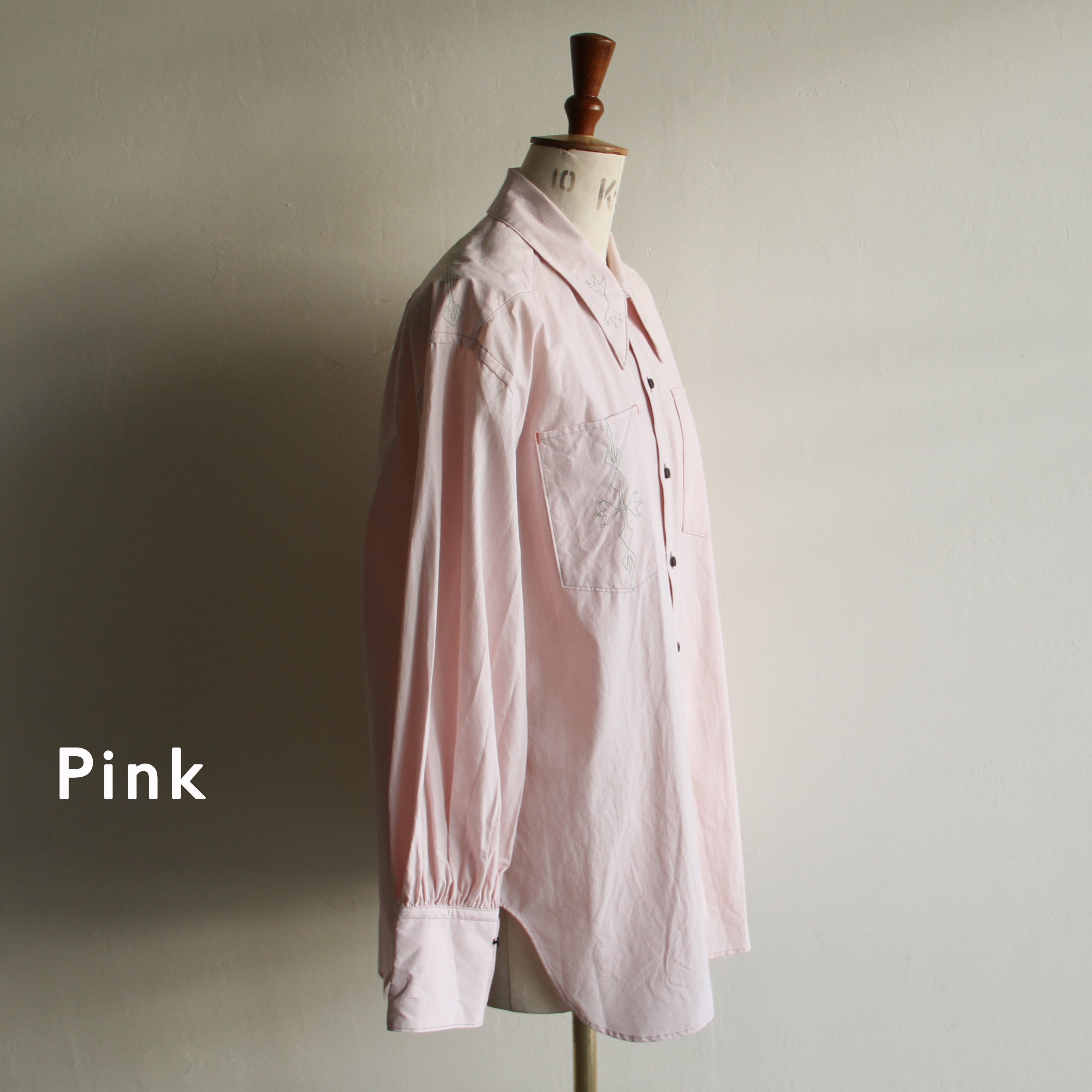 メンフィスの色使いや勢いを参考にしたステッチワークがポイントのシャツ。