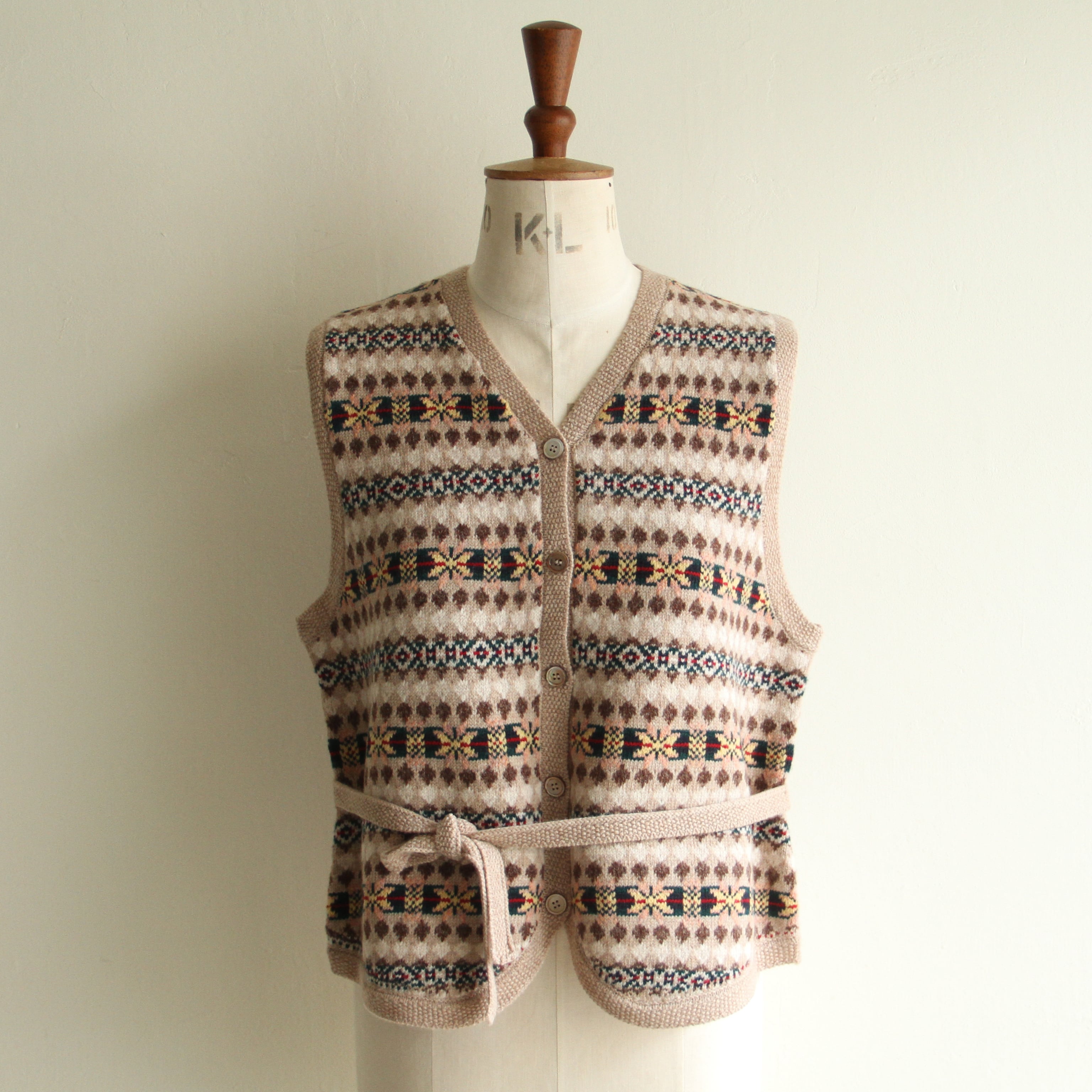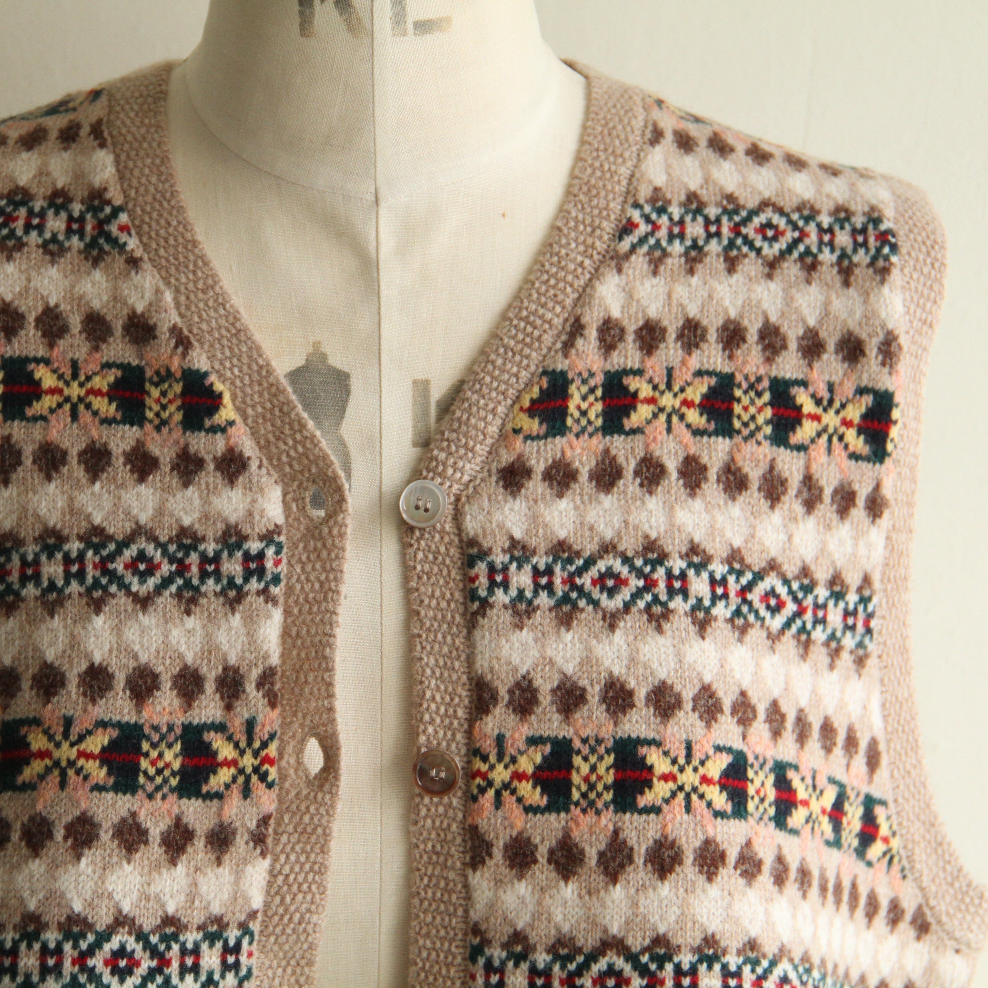 メリノウールとシェトランドを使用し、表面感のあるジャガードに仕上げられたベスト。