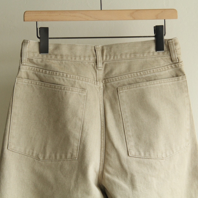 特殊な染料を使用した12オンスのカラーデニムパンツに加工を加えて少しフェード感のある表情にしています。