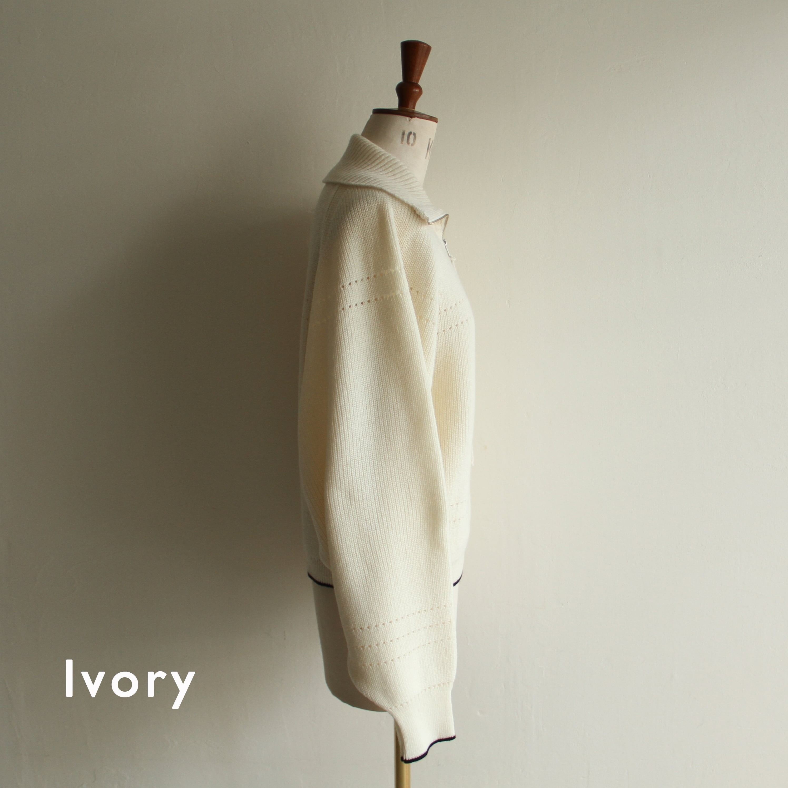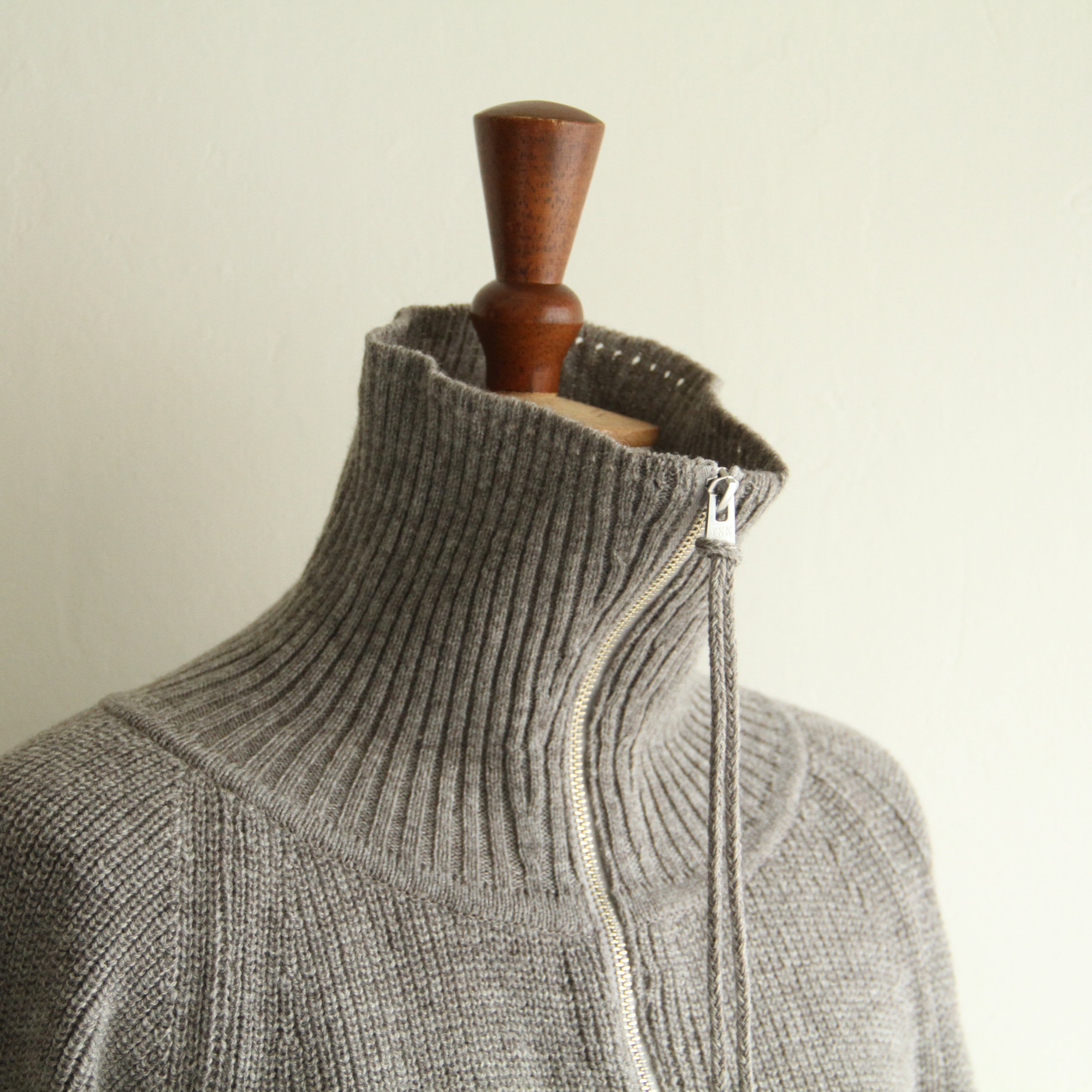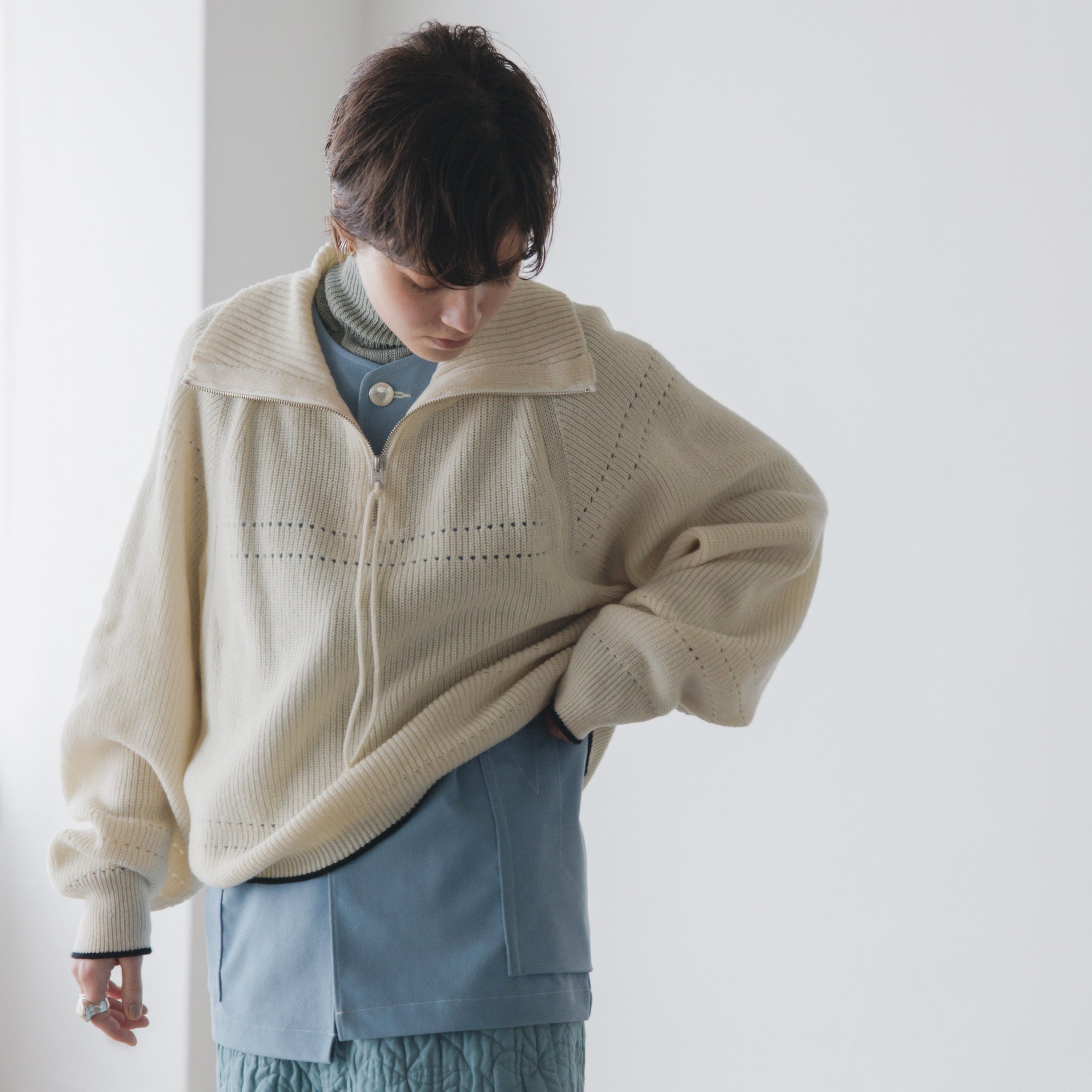 ハーフジップのデザインなので、開けてTEE シャツやタートルネックカットソーとのレイヤードを楽しんだり、上までジップを上げてタートルネックとして着用しても可愛いです。