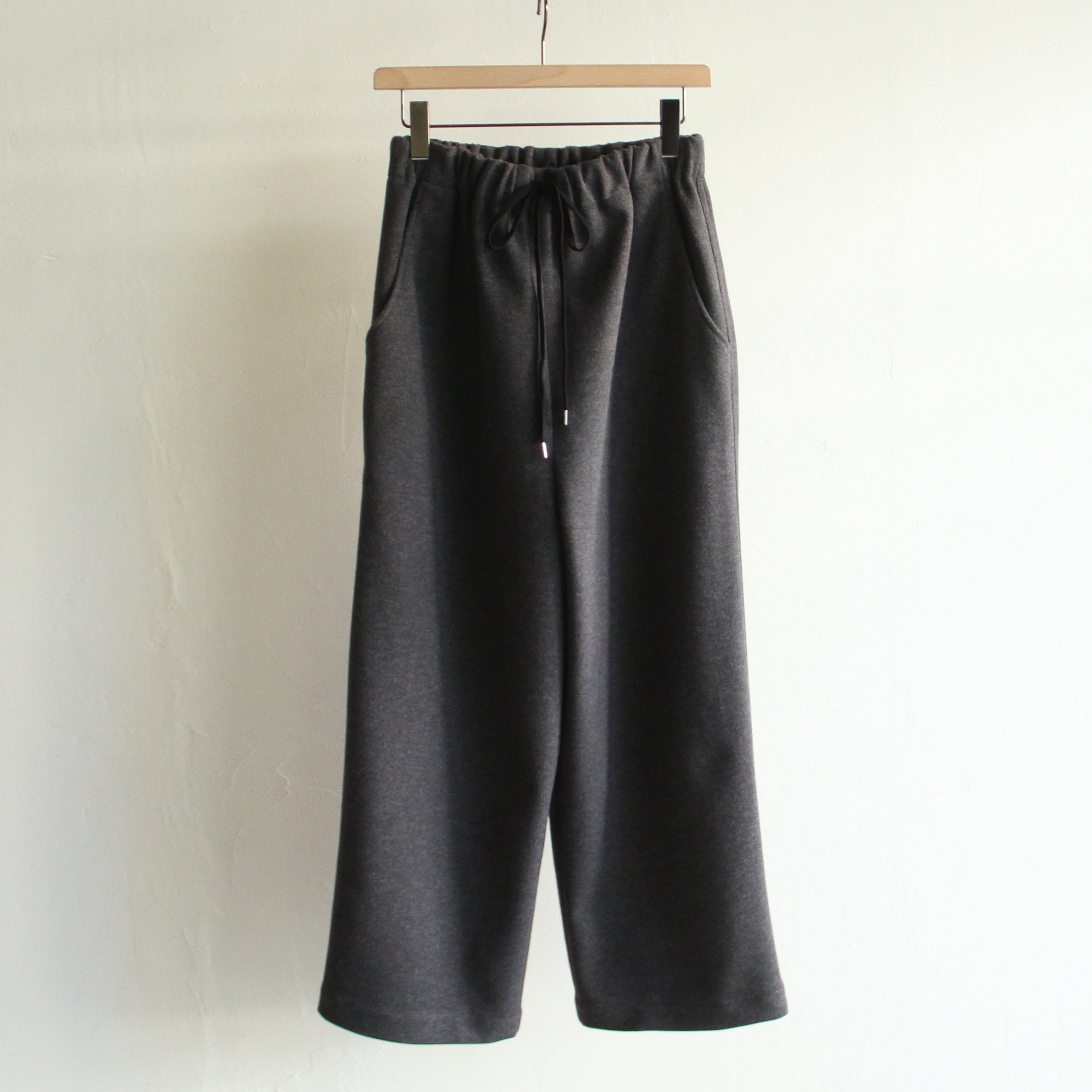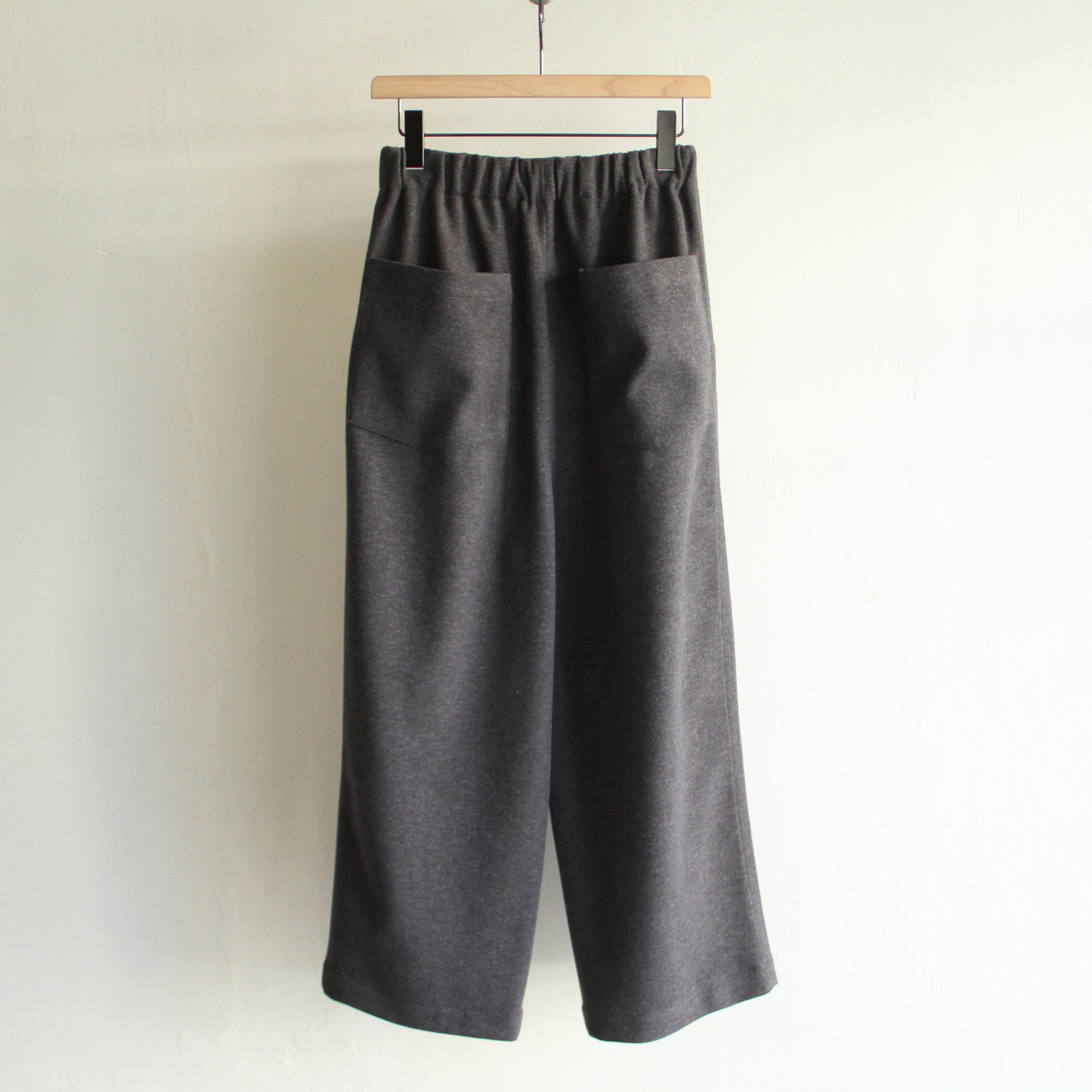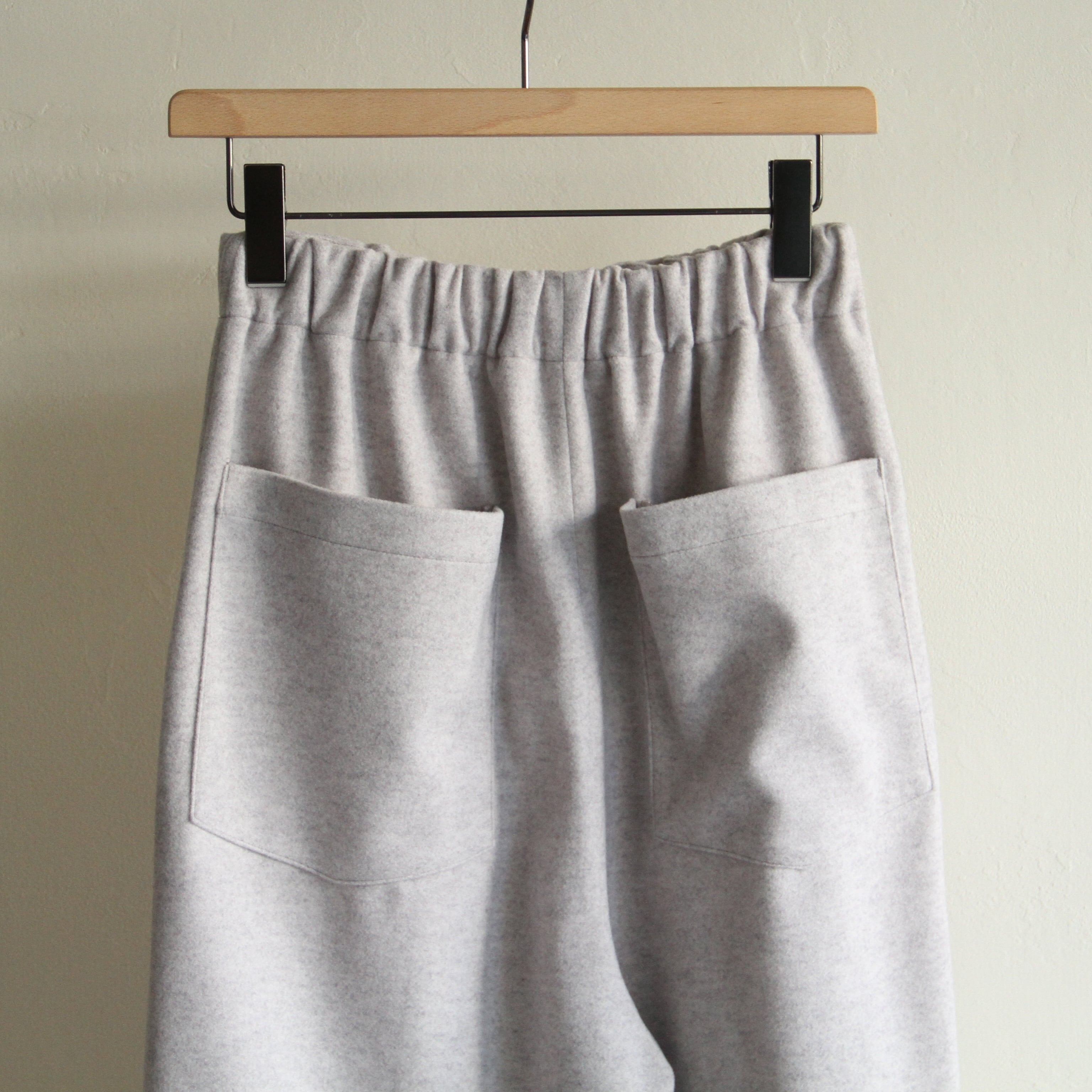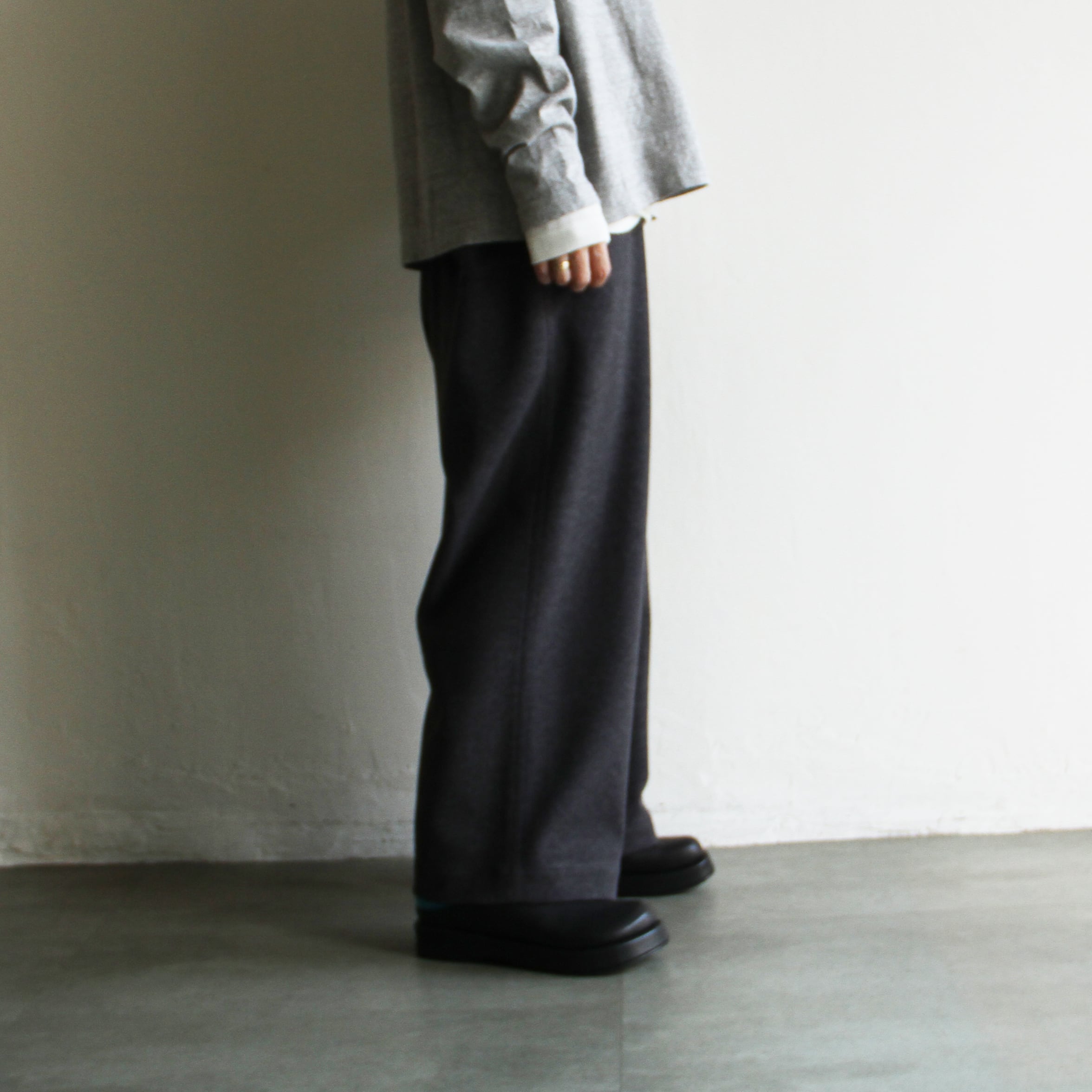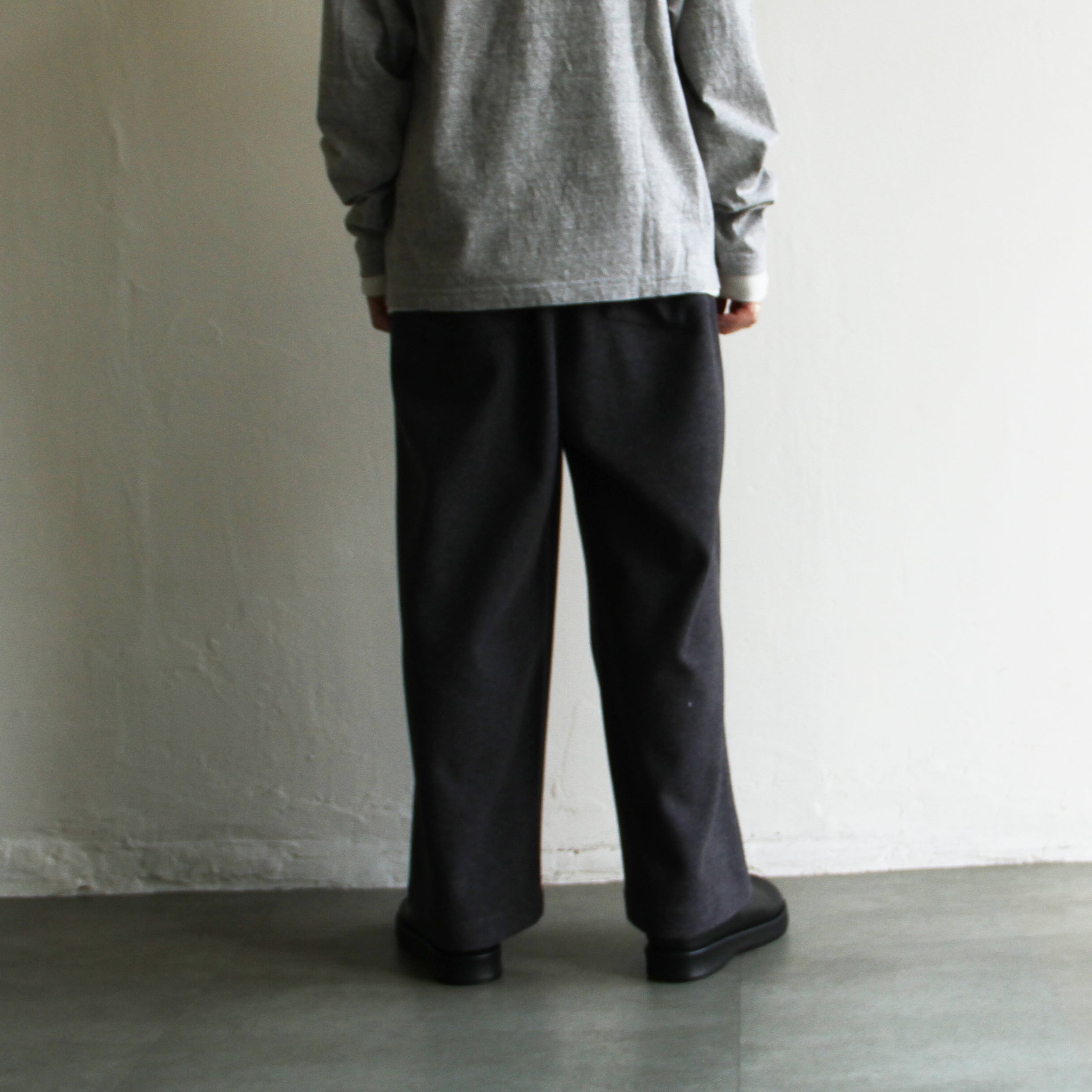 フランネルのように柔らかで暖かい質感ながら、スウェットのようにラクに着用して頂ける生地を使用したワイドシルエットのパンツ。