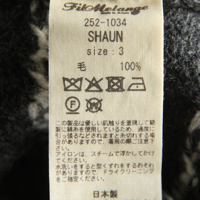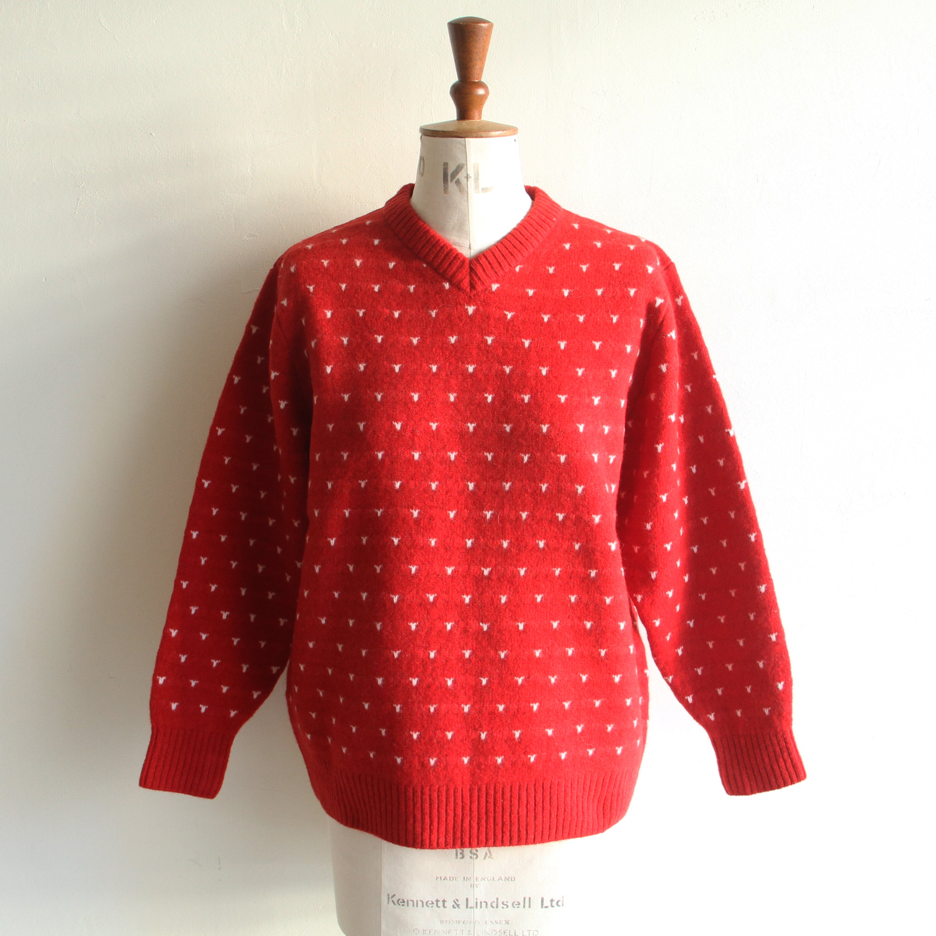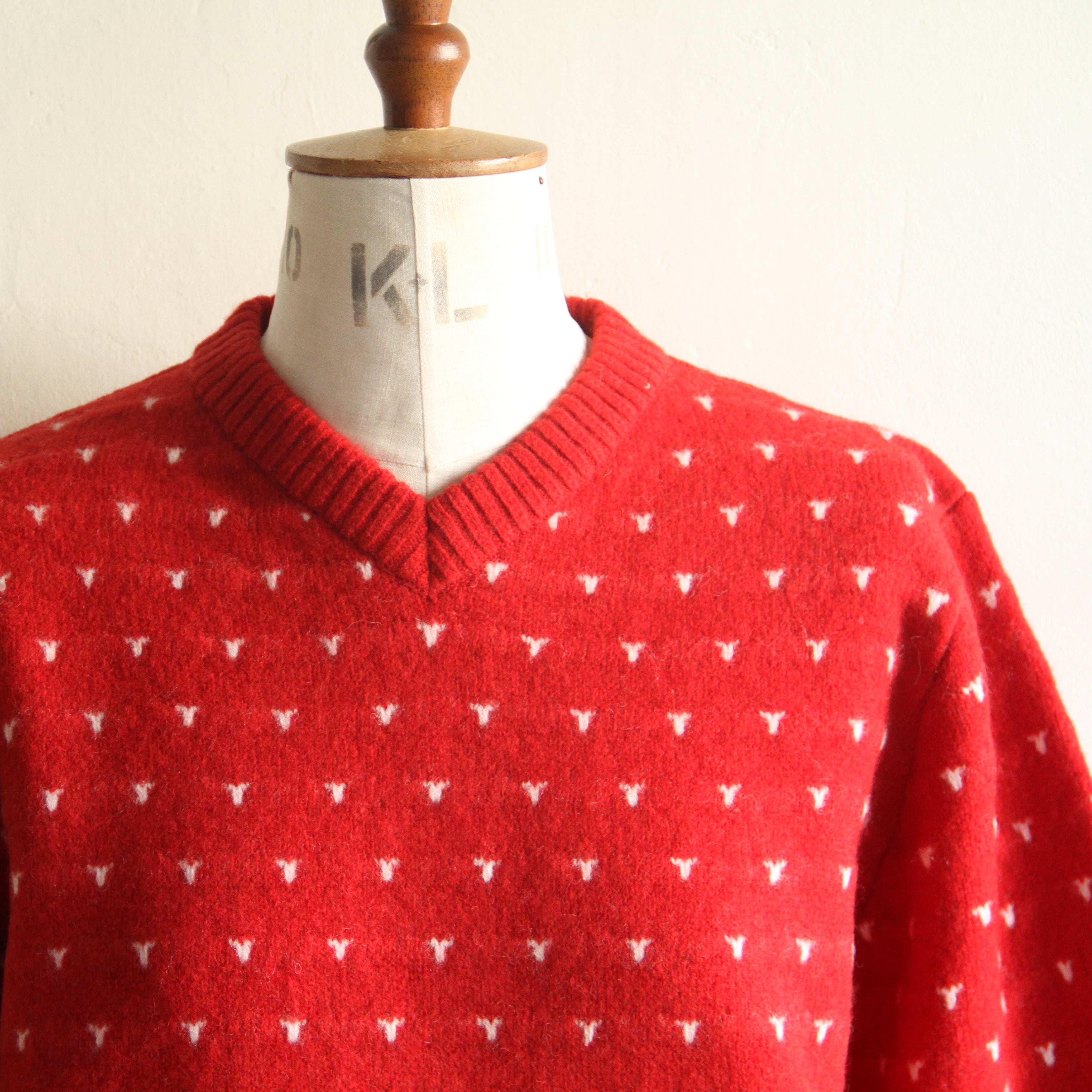 シングルジャガードで比較的薄く編んだニットで、素材はメリノ種と英国羊毛種を掛け合わせたカムバックラム種のウール100%です。