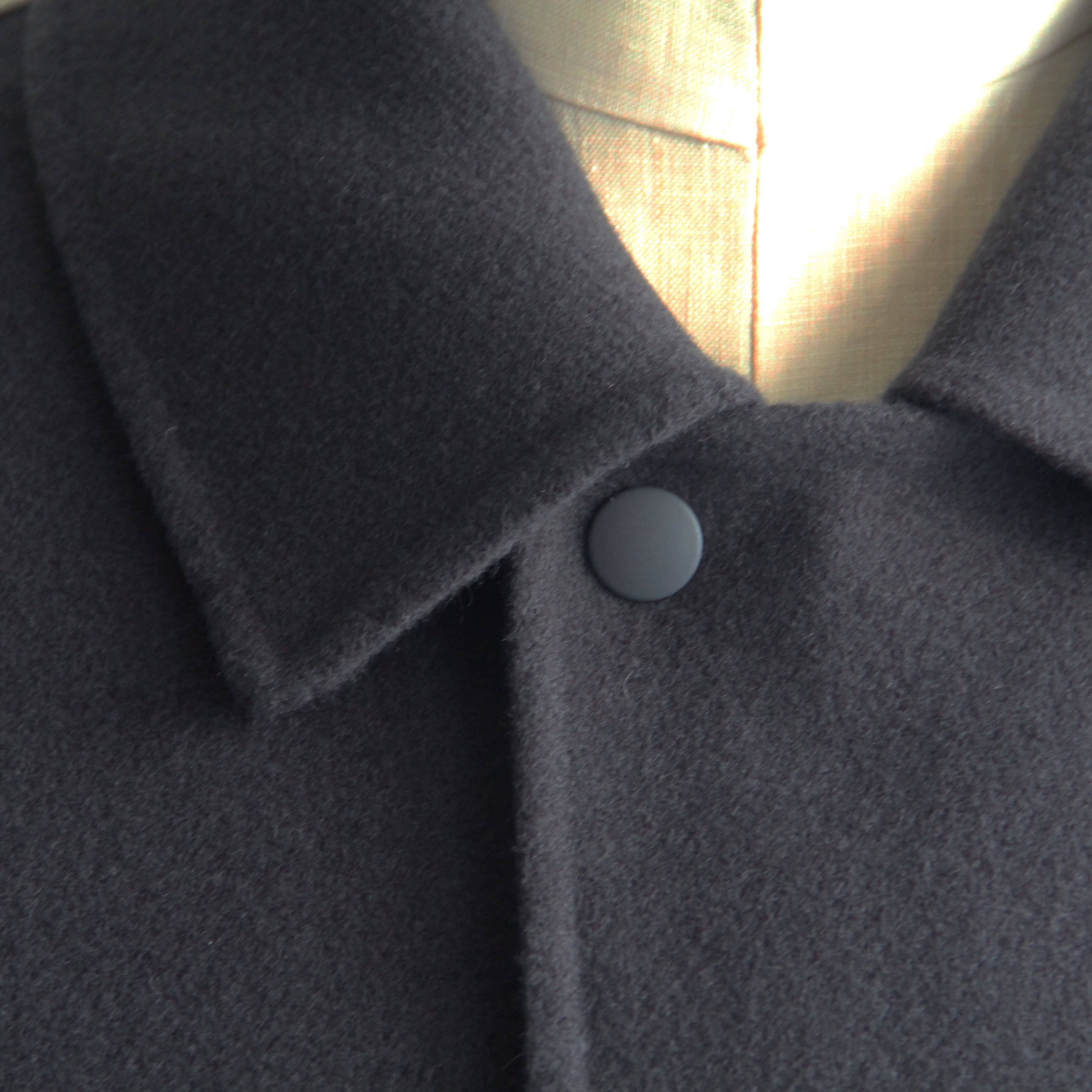生地の端を加工し、通常は二重に厚くなってしまう襟、前立て、袖口、裾口、を一重にし、スッキリと軽さを出しています。