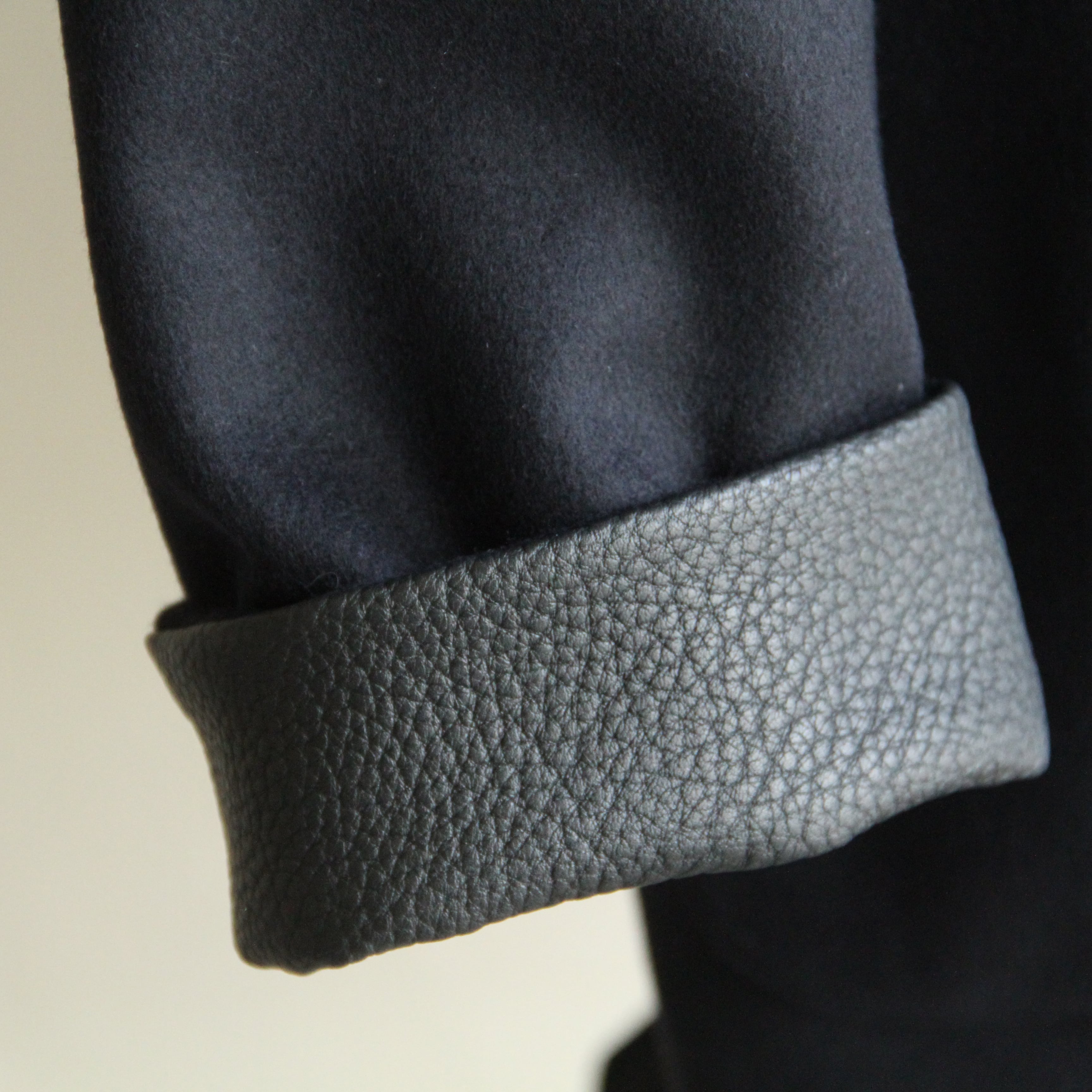 素材 : (表地)WOOL 100%(裏地)CUPRO 100%(レザー)牛革