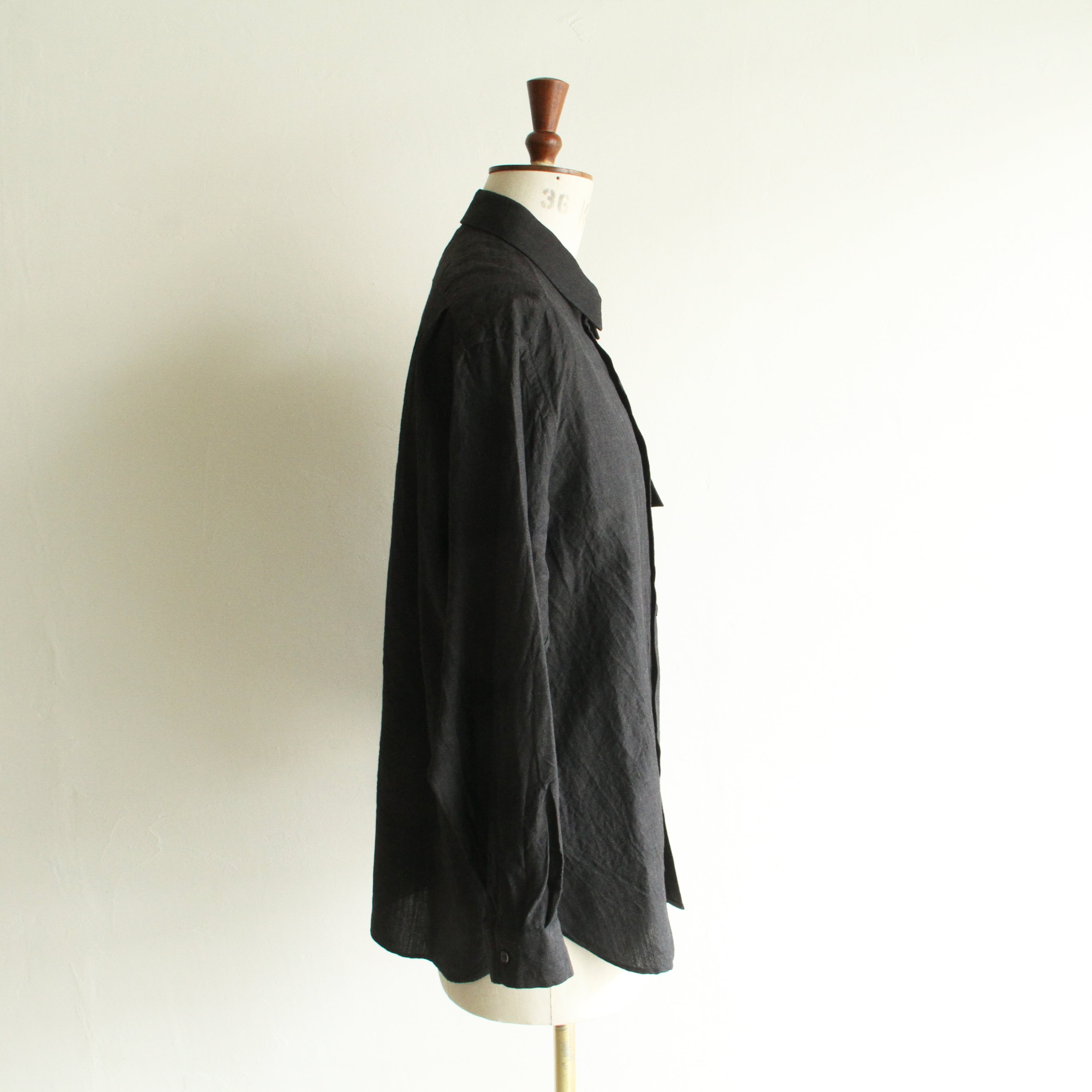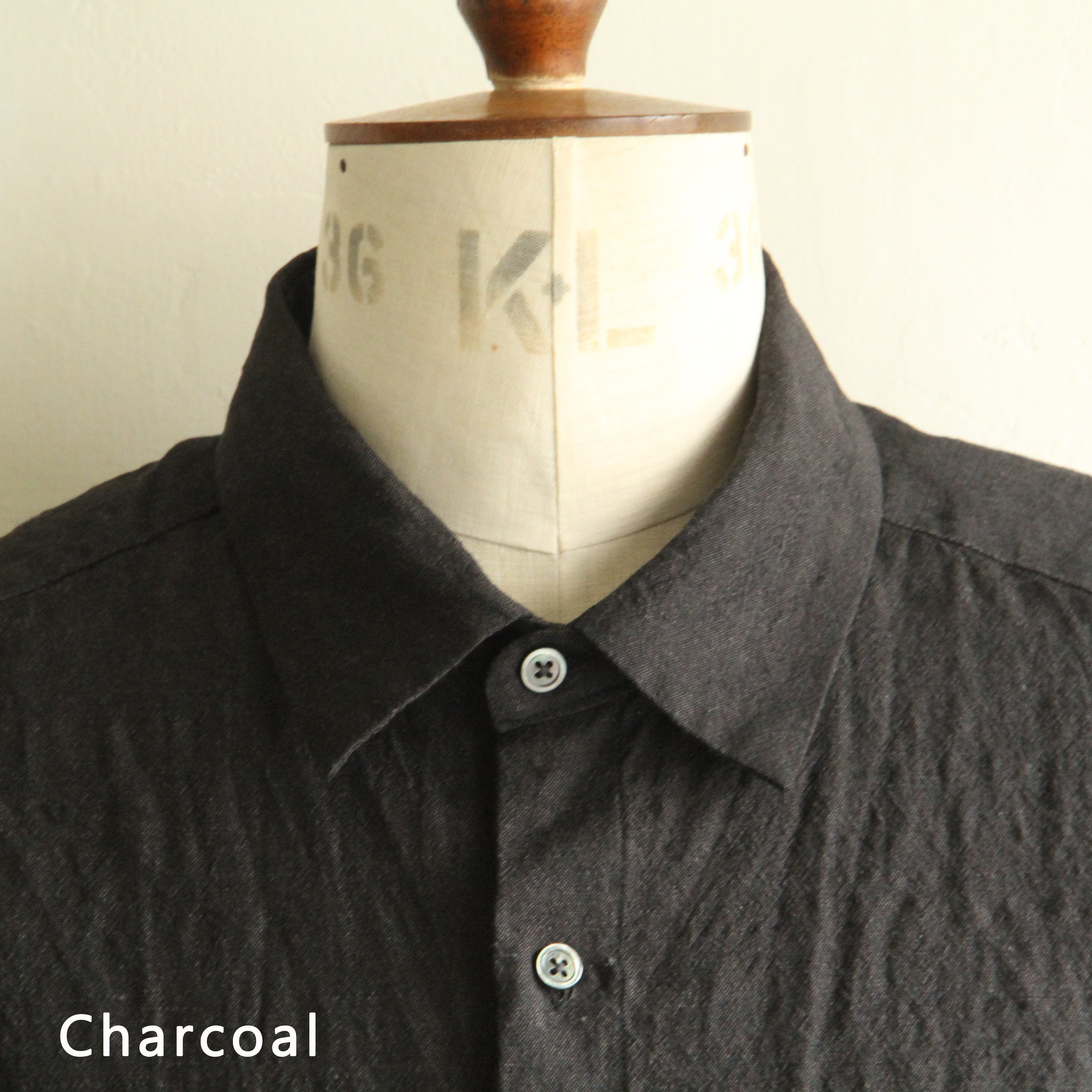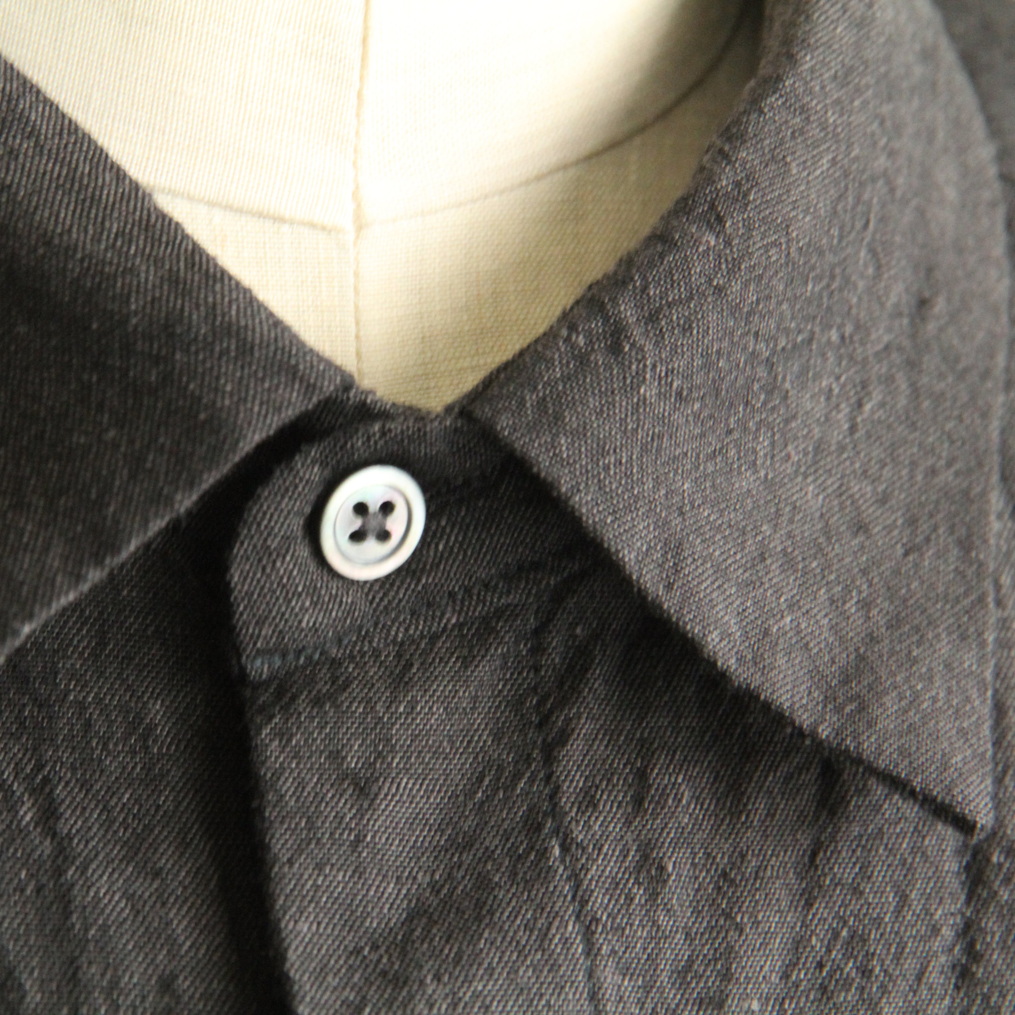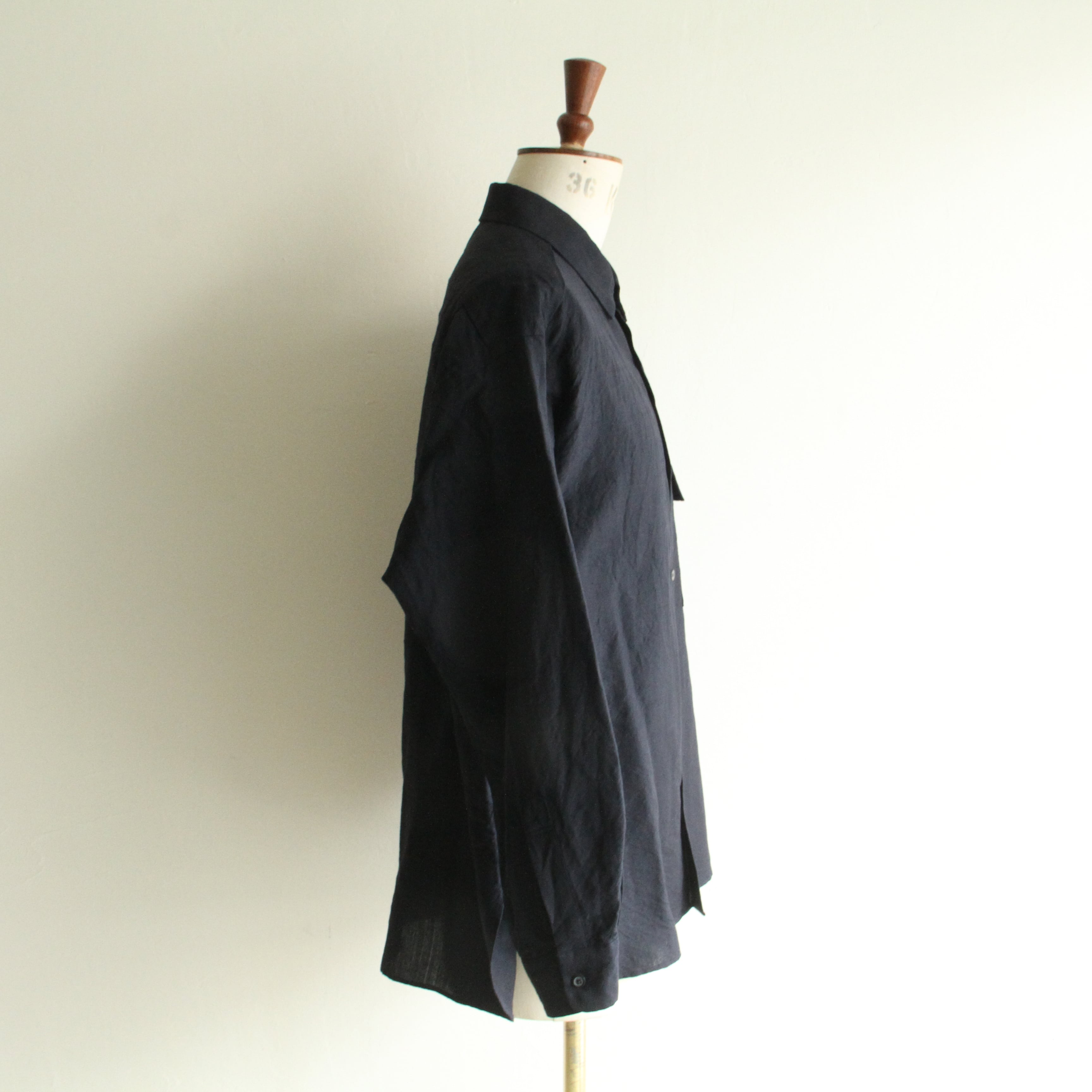 ウール/リネン素材を使用したフラップポケットのレギュラーカラーシャツ。リネン特有の節がありますが、梳毛糸を使用しているシワ感が少なく光沢感があるのが特徴です。暖かくなってから羽織として1枚で着ていただいても様になるアイテムです。