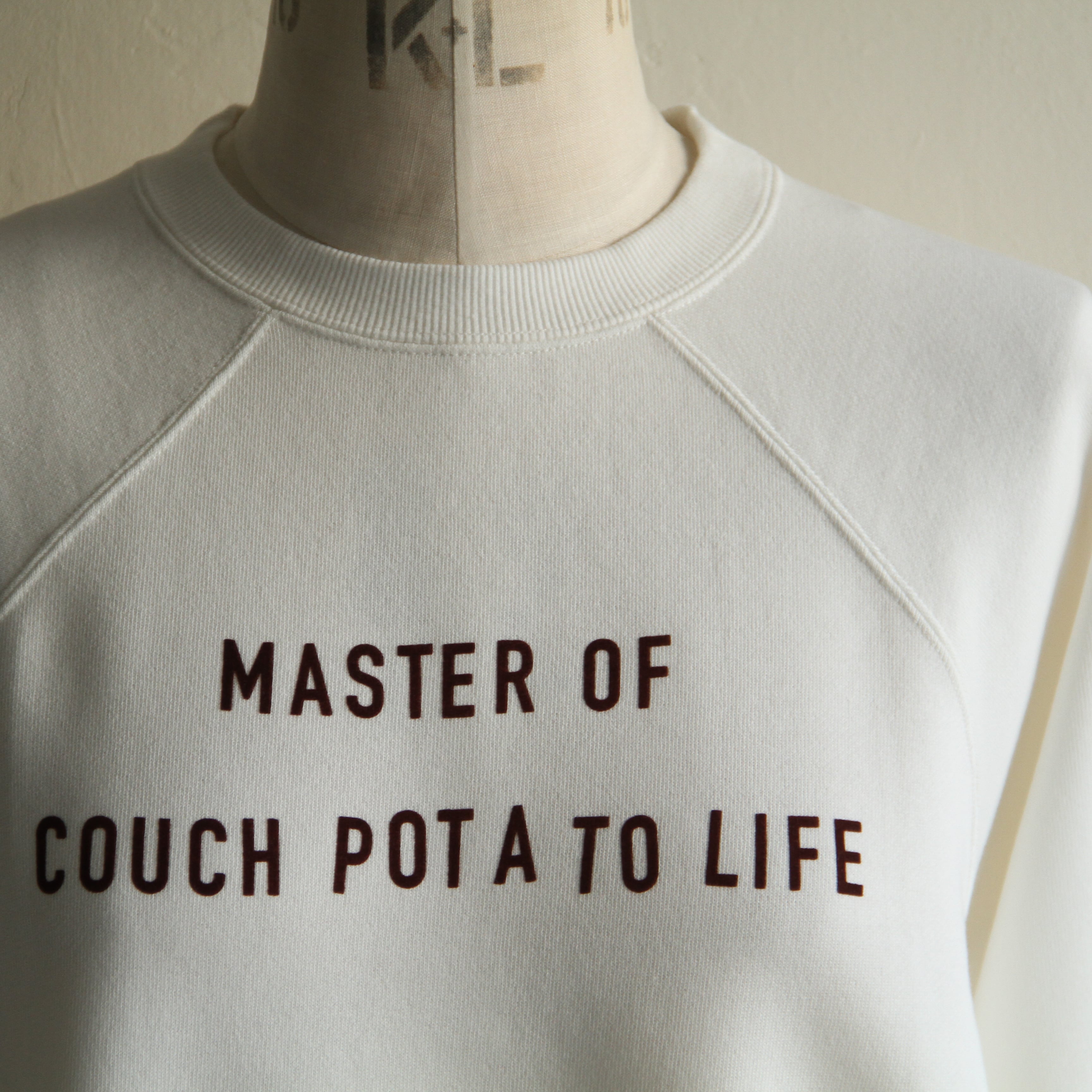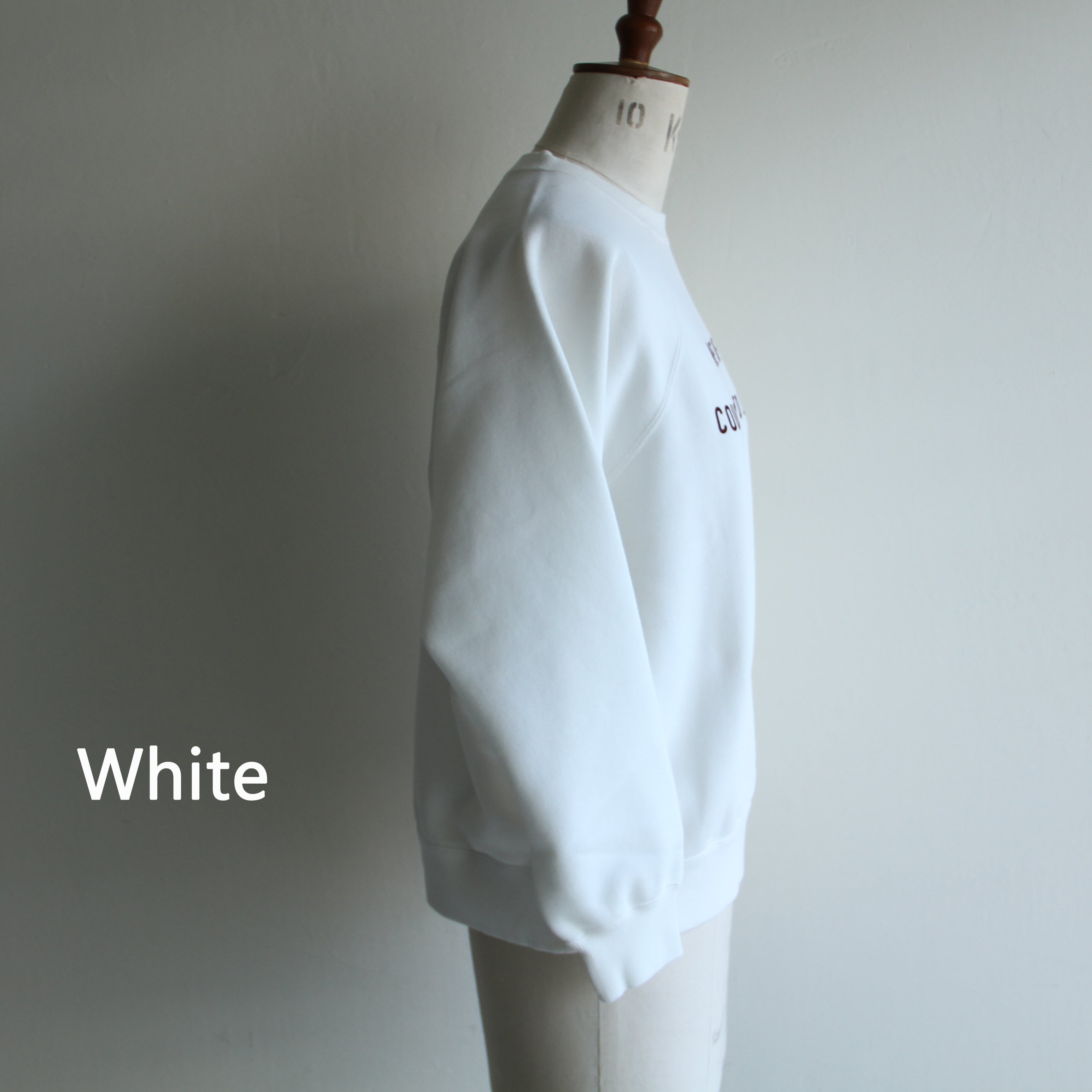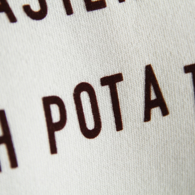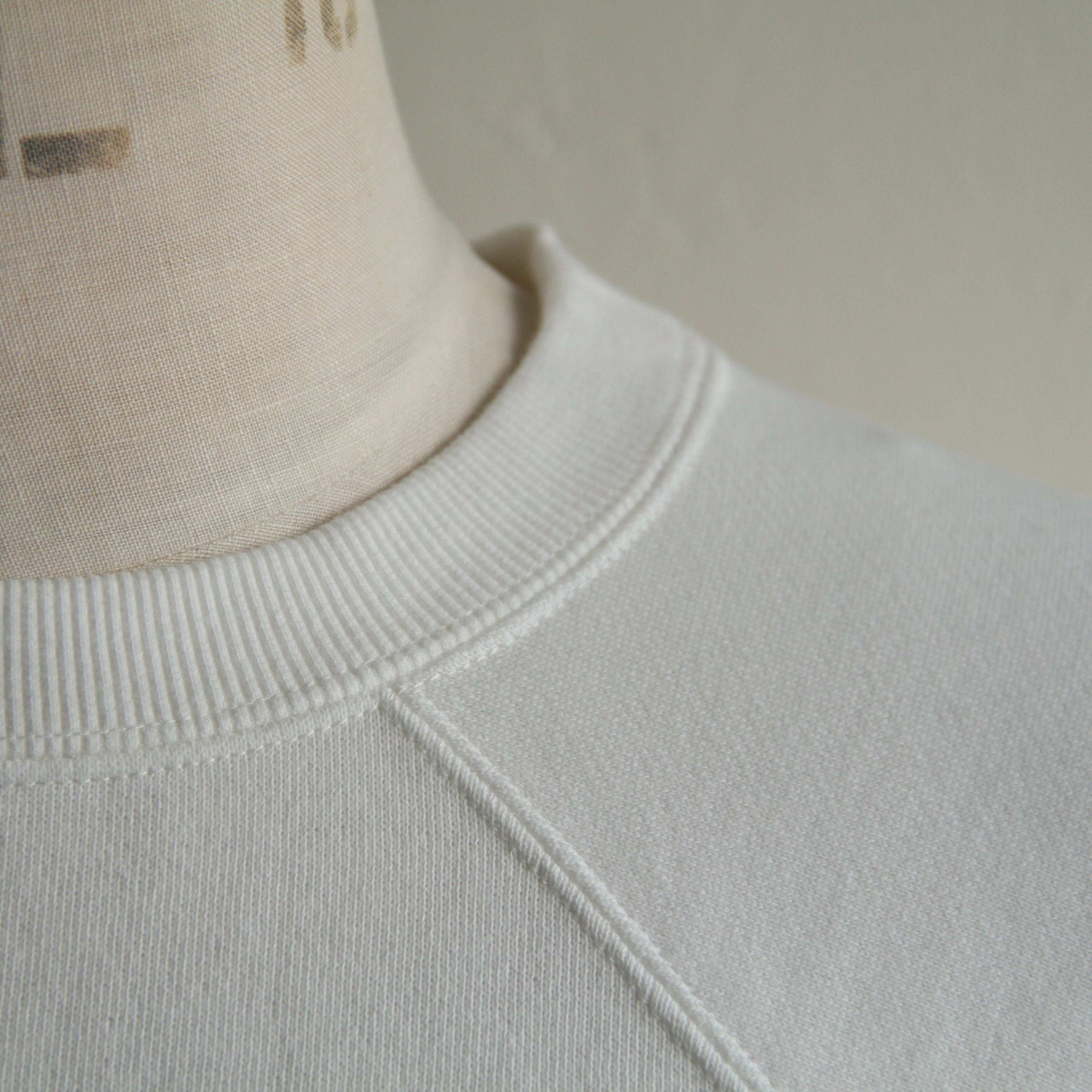 ラグランスリーブのスウェットに、立体感のあるフロッキープリントをプラス。
