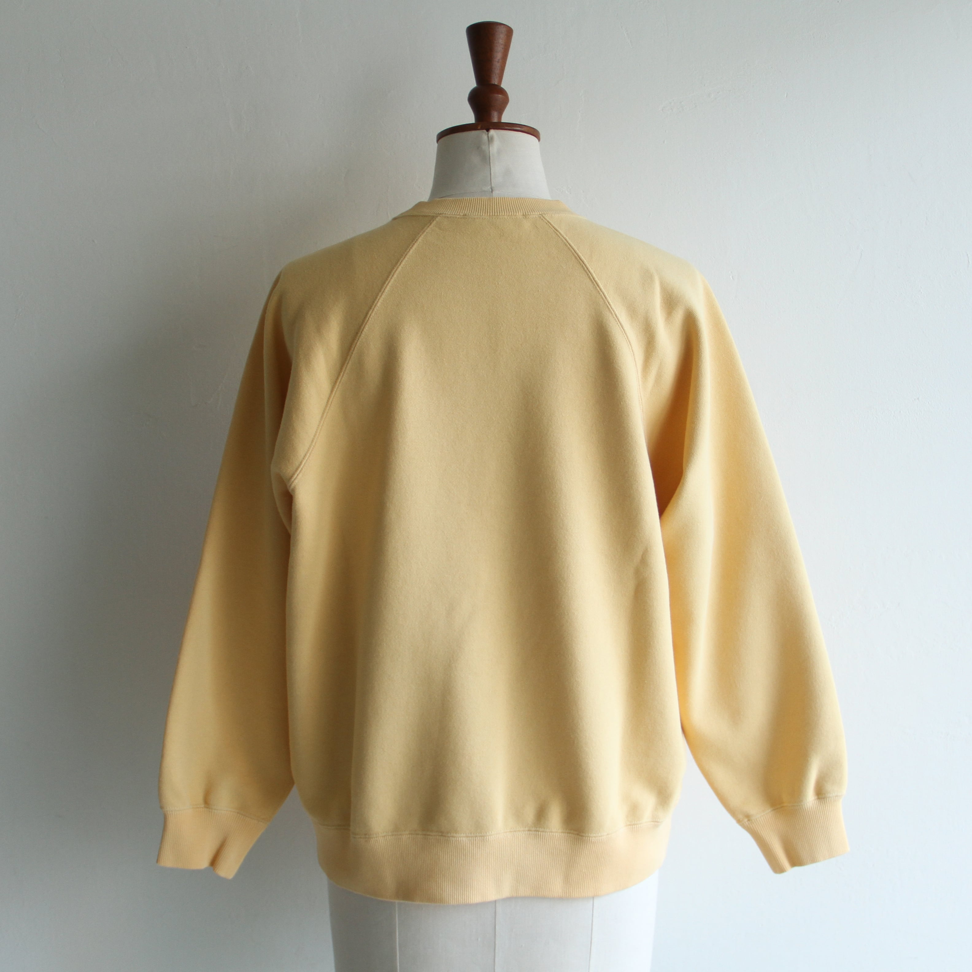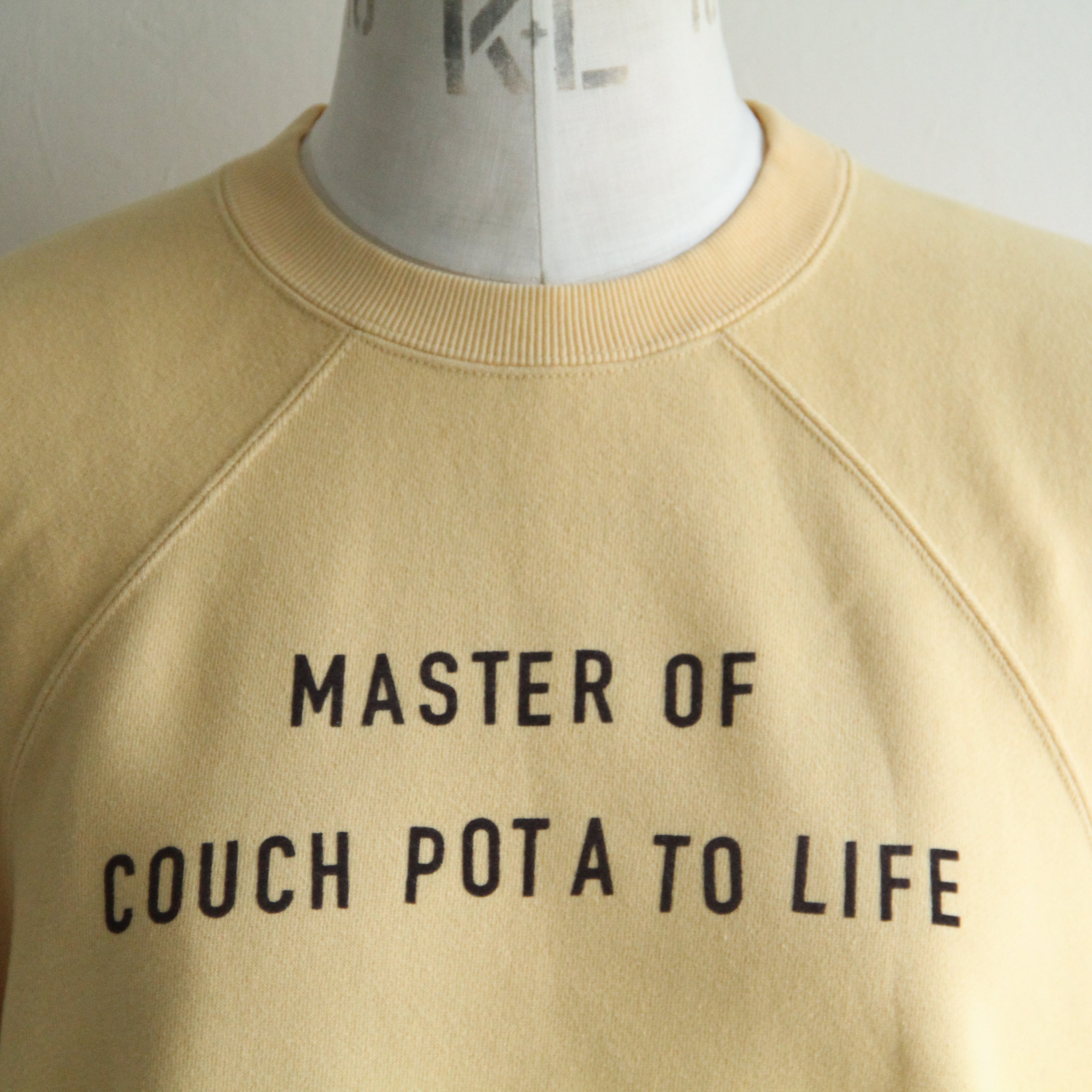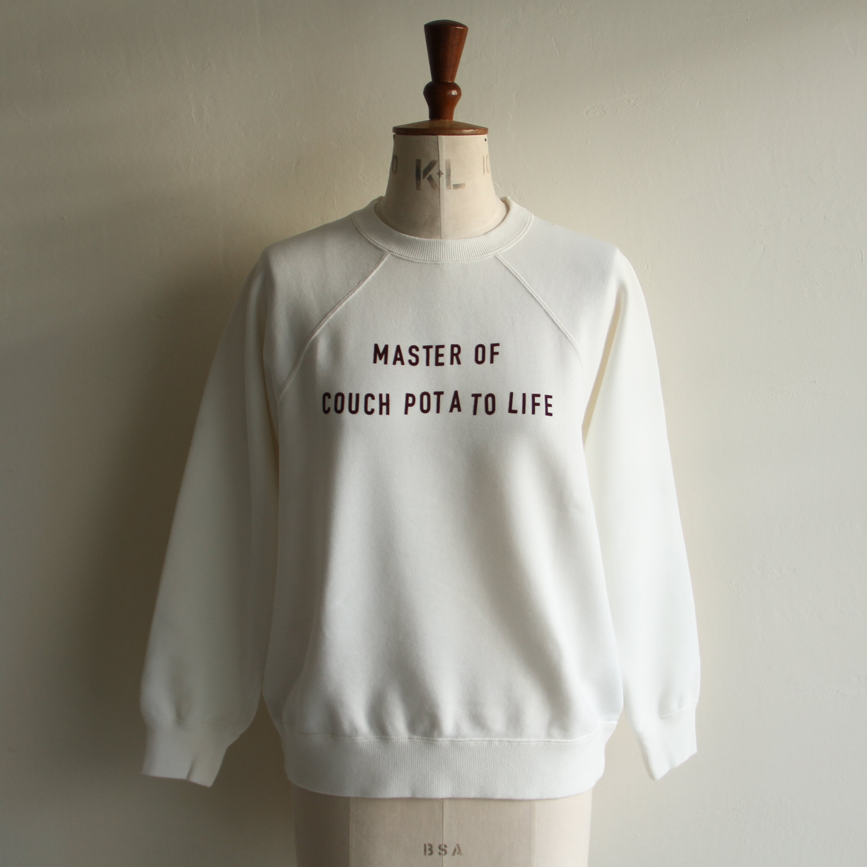 ラグランスリーブのスウェットに、立体感のあるフロッキープリントをプラス。