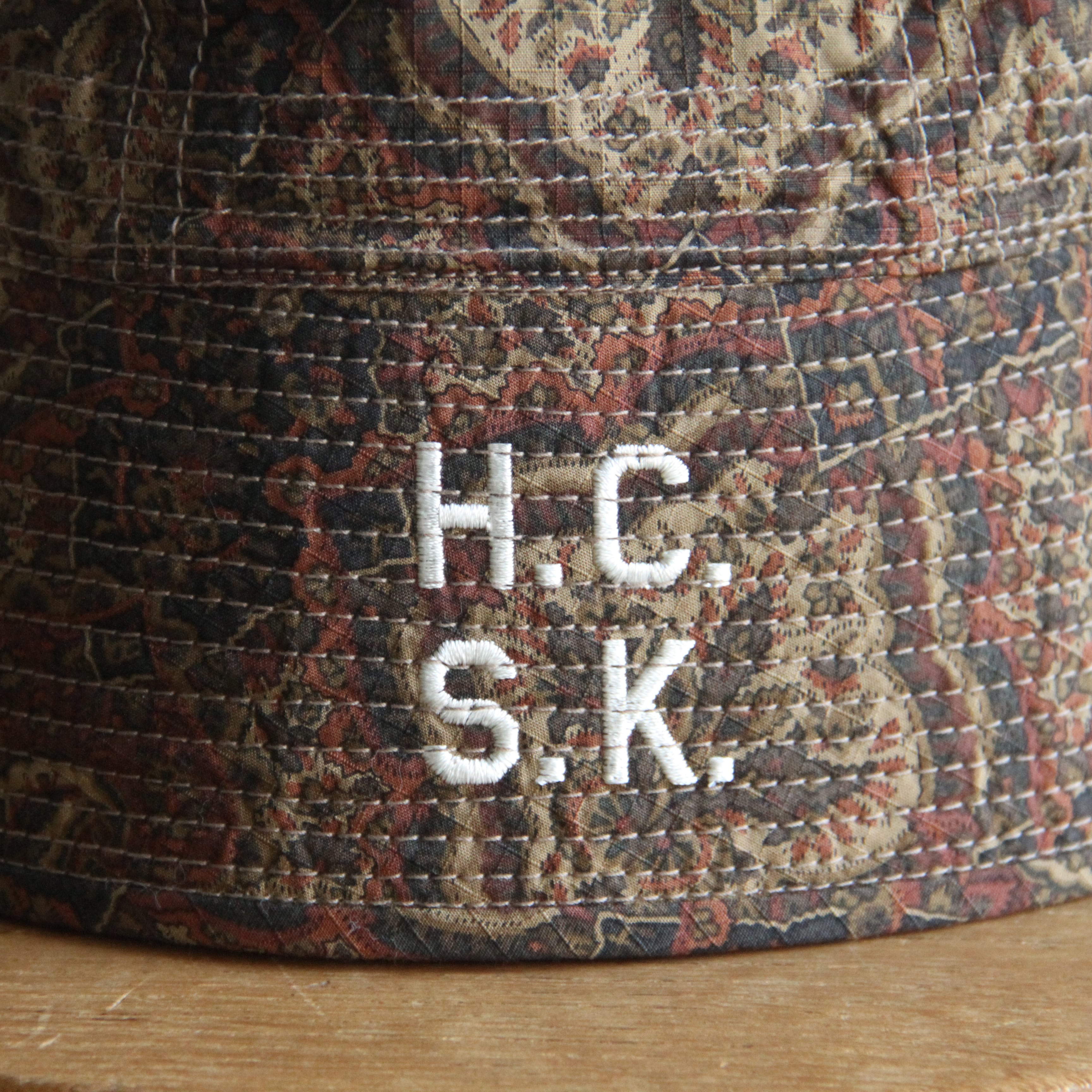 ペイズリー柄のリップストップ生地を使用したセーラーハット。