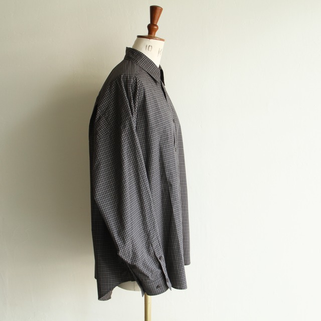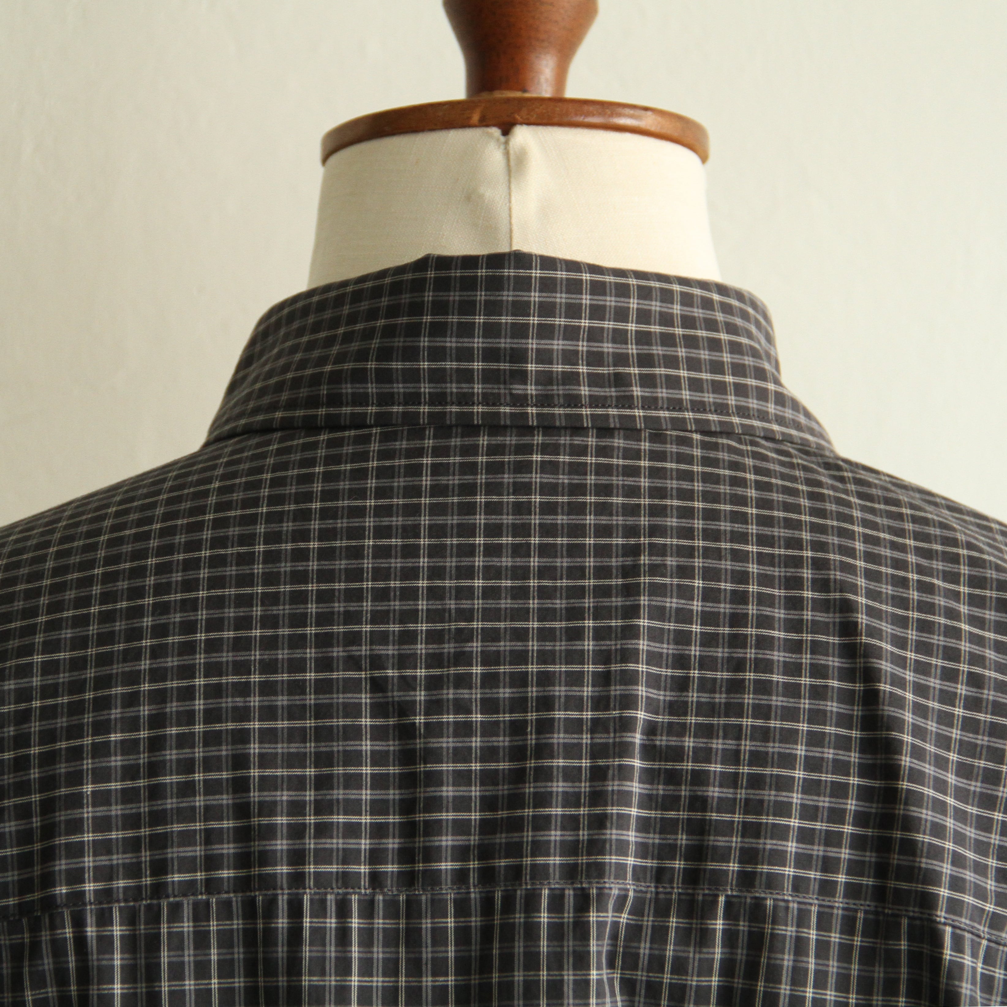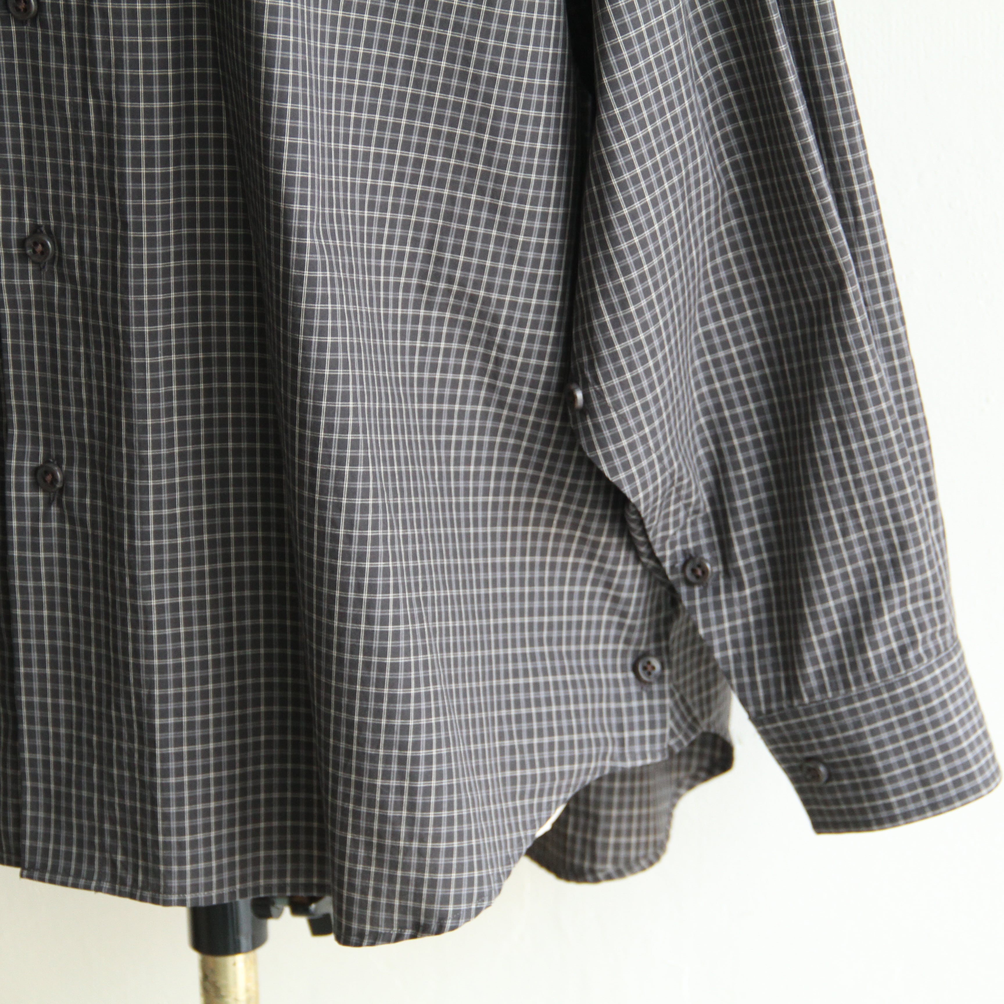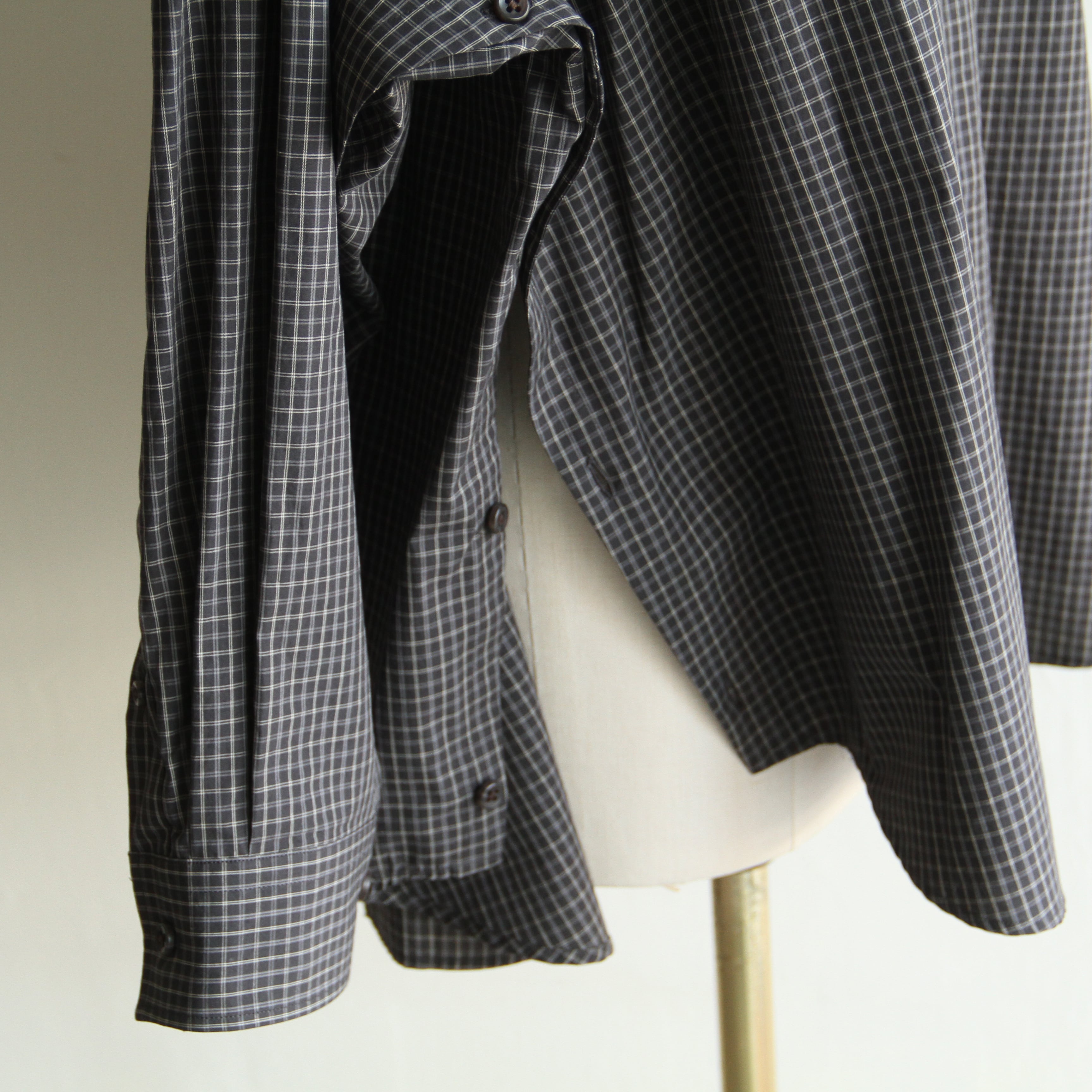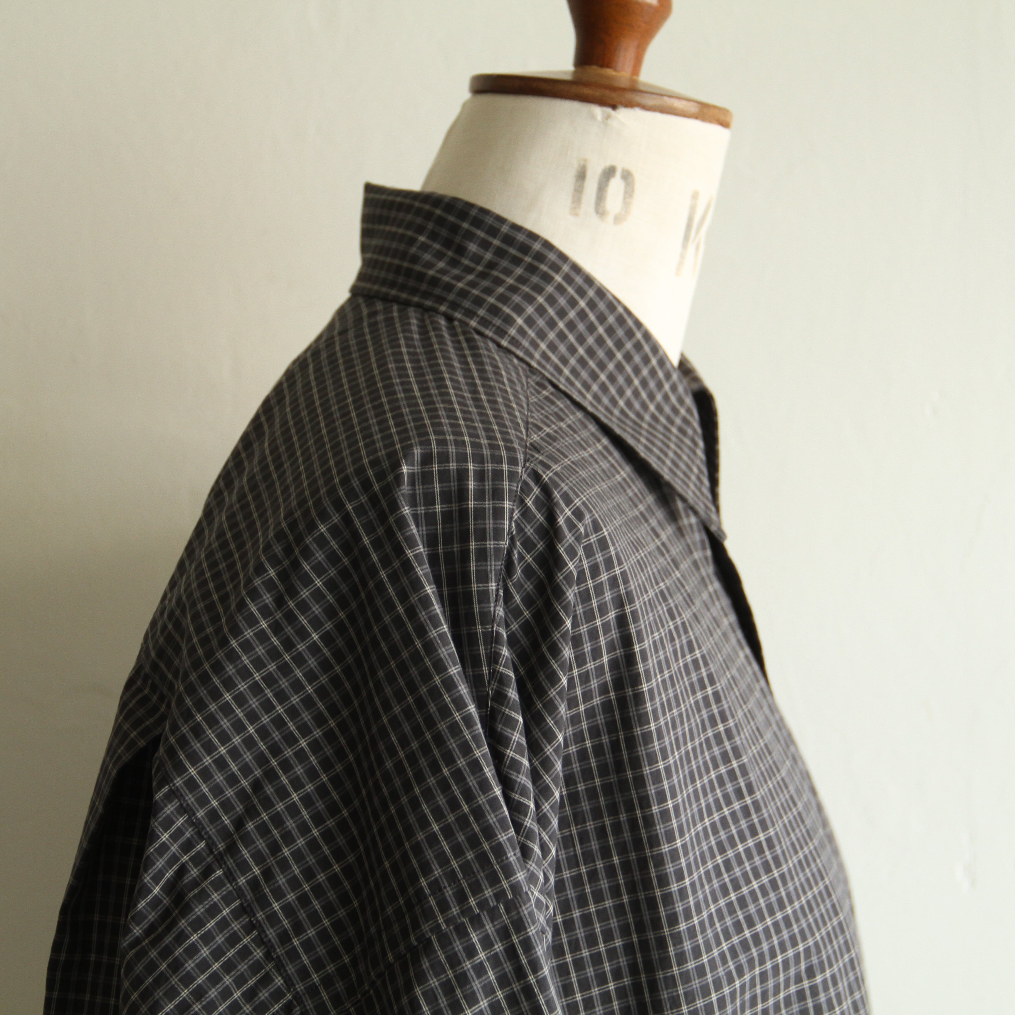 シンプルなオーバーサイズシャツながら、袖下から脇にかけてボタン開きになっており、開け方次第でシルエットを自由にアレンジできる遊び心のあるデザインです。