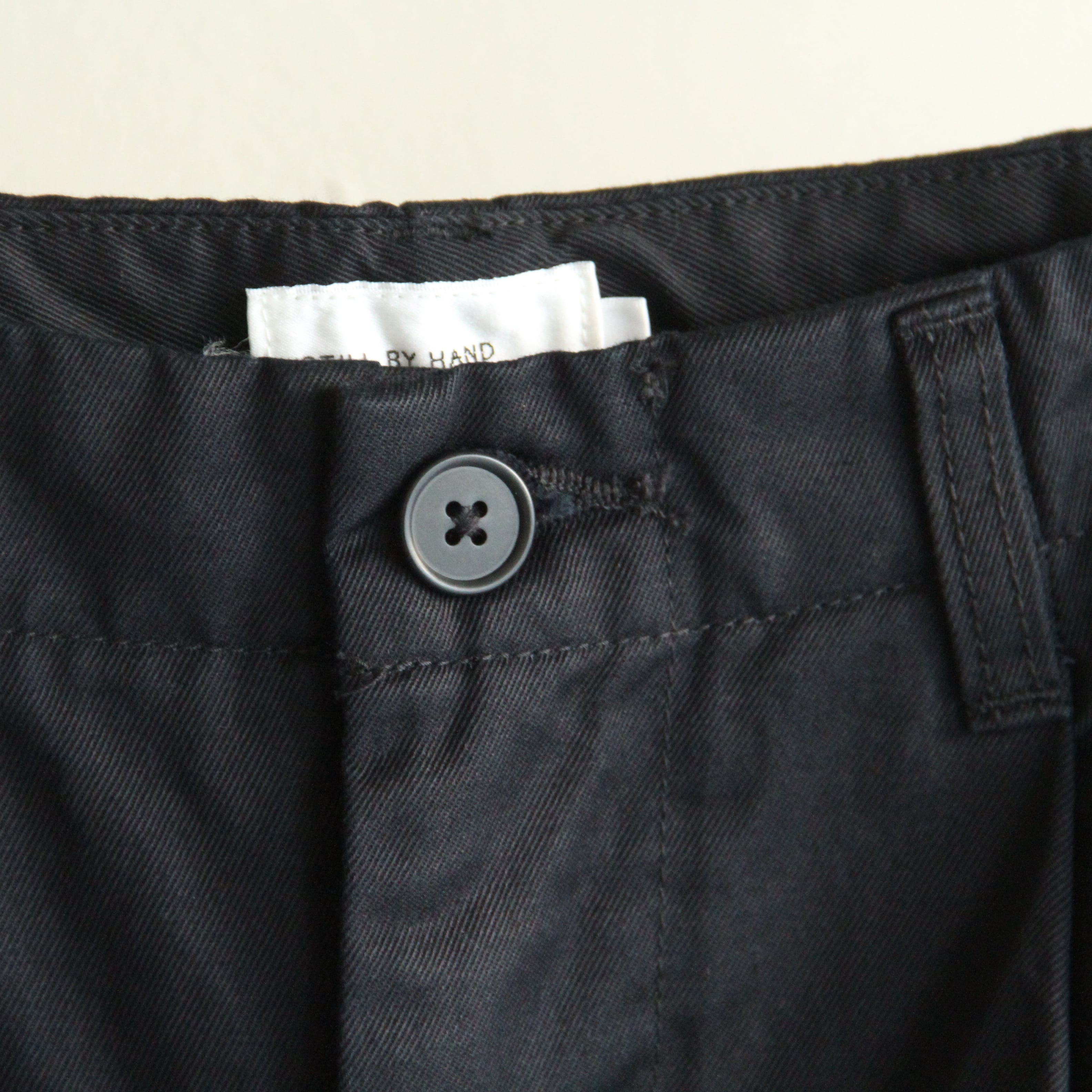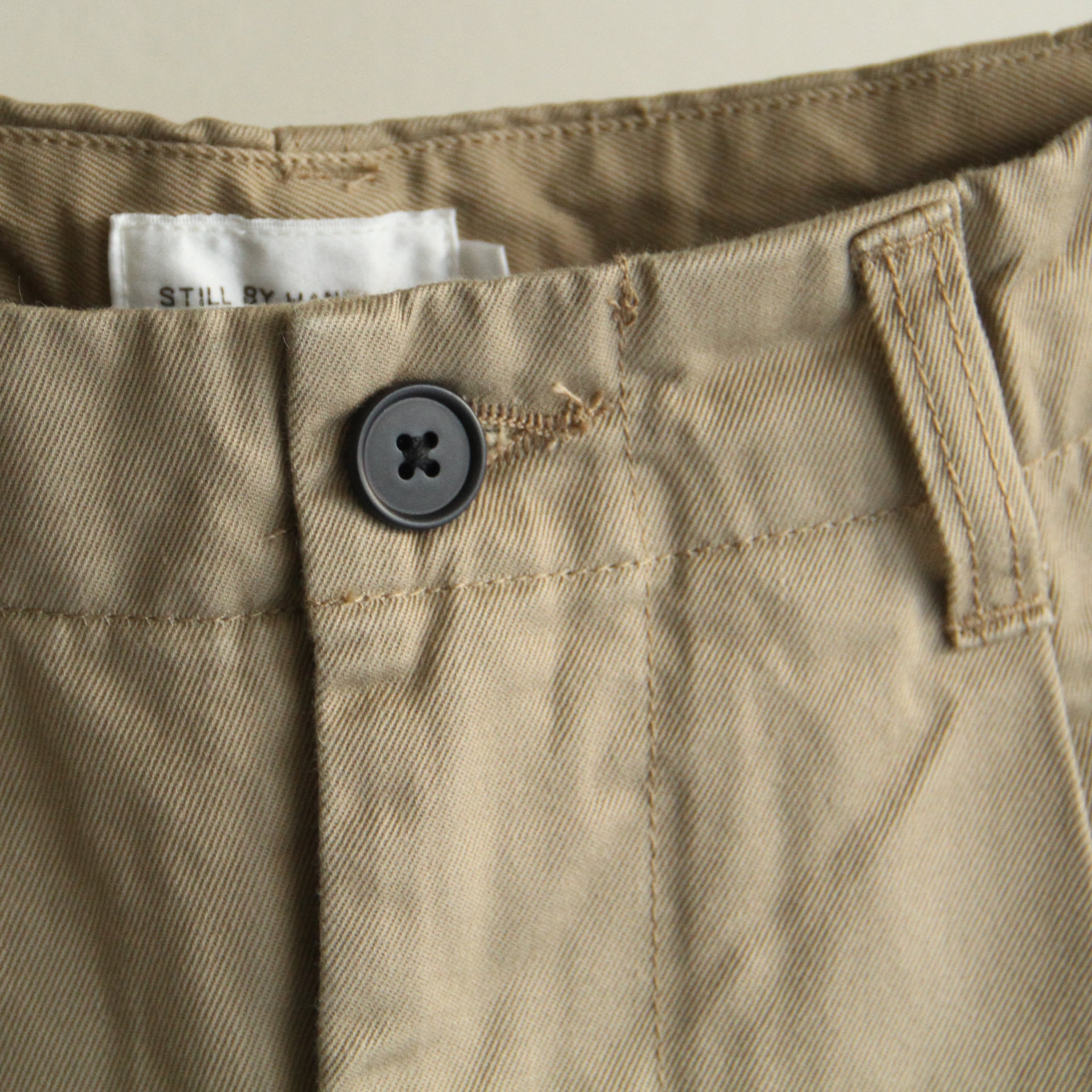 STILLBYHANDらしくあえて綺麗な糸を使用したセルビッチファブリックを使用。