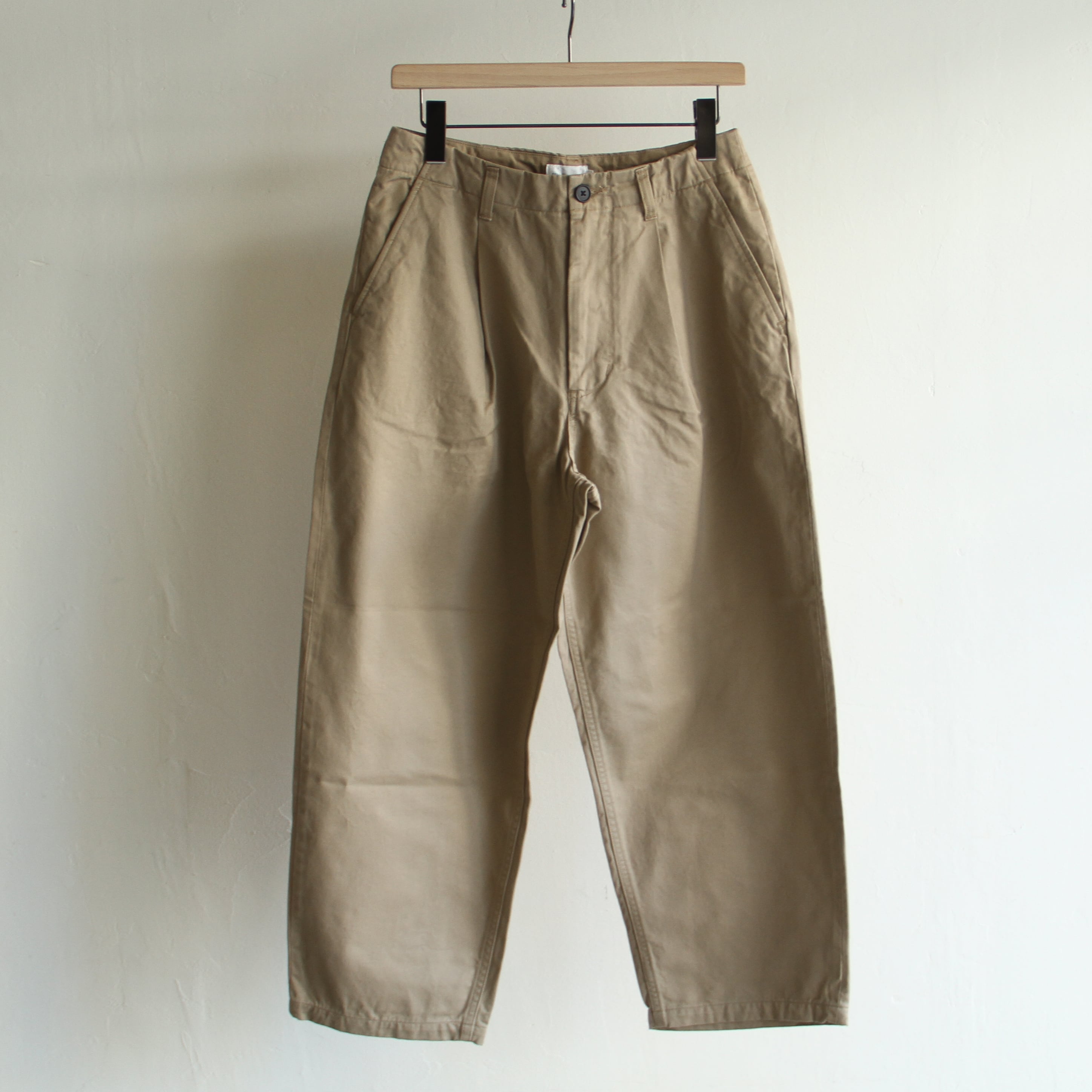 別注セルビッチチノ素材のテーパードタックパンツ。