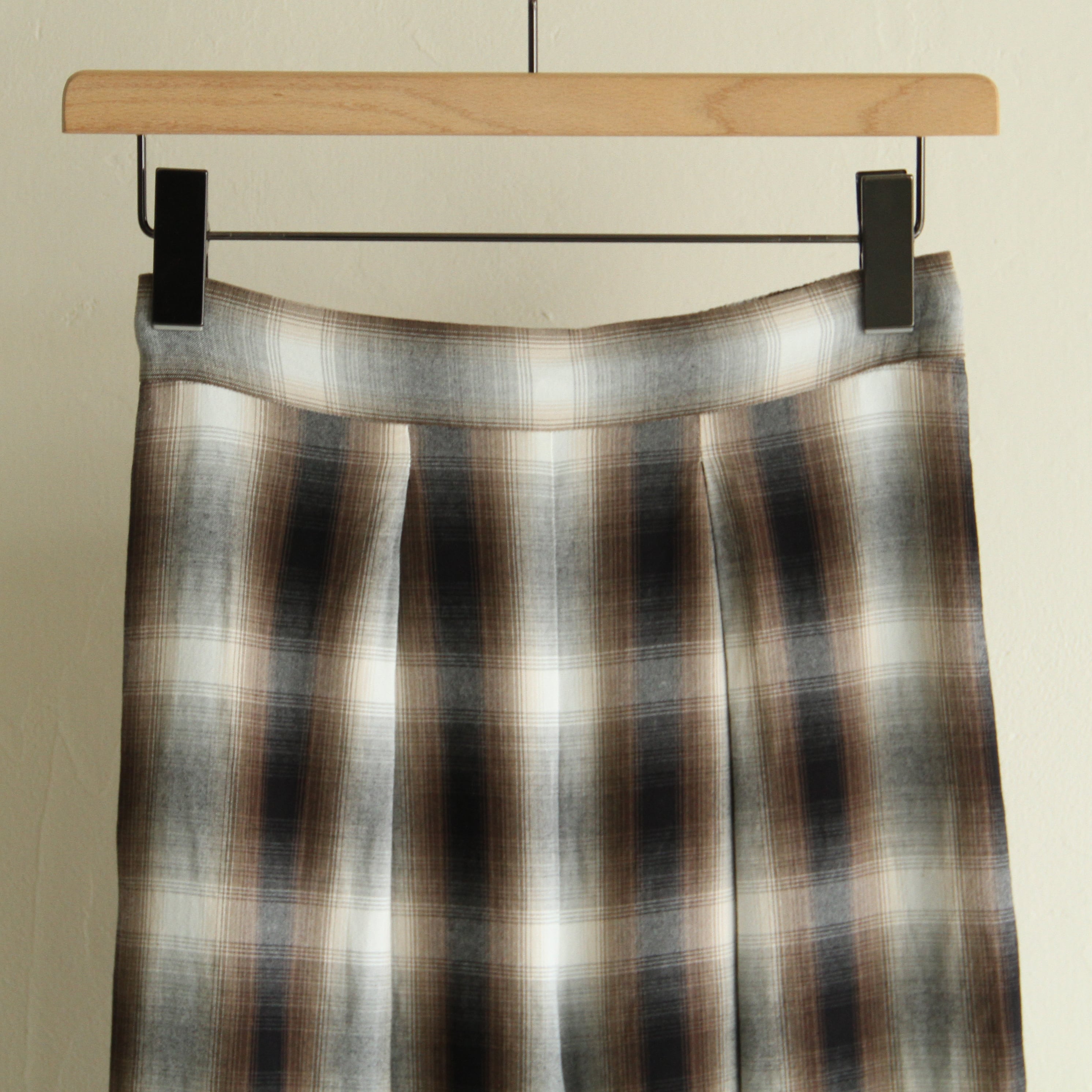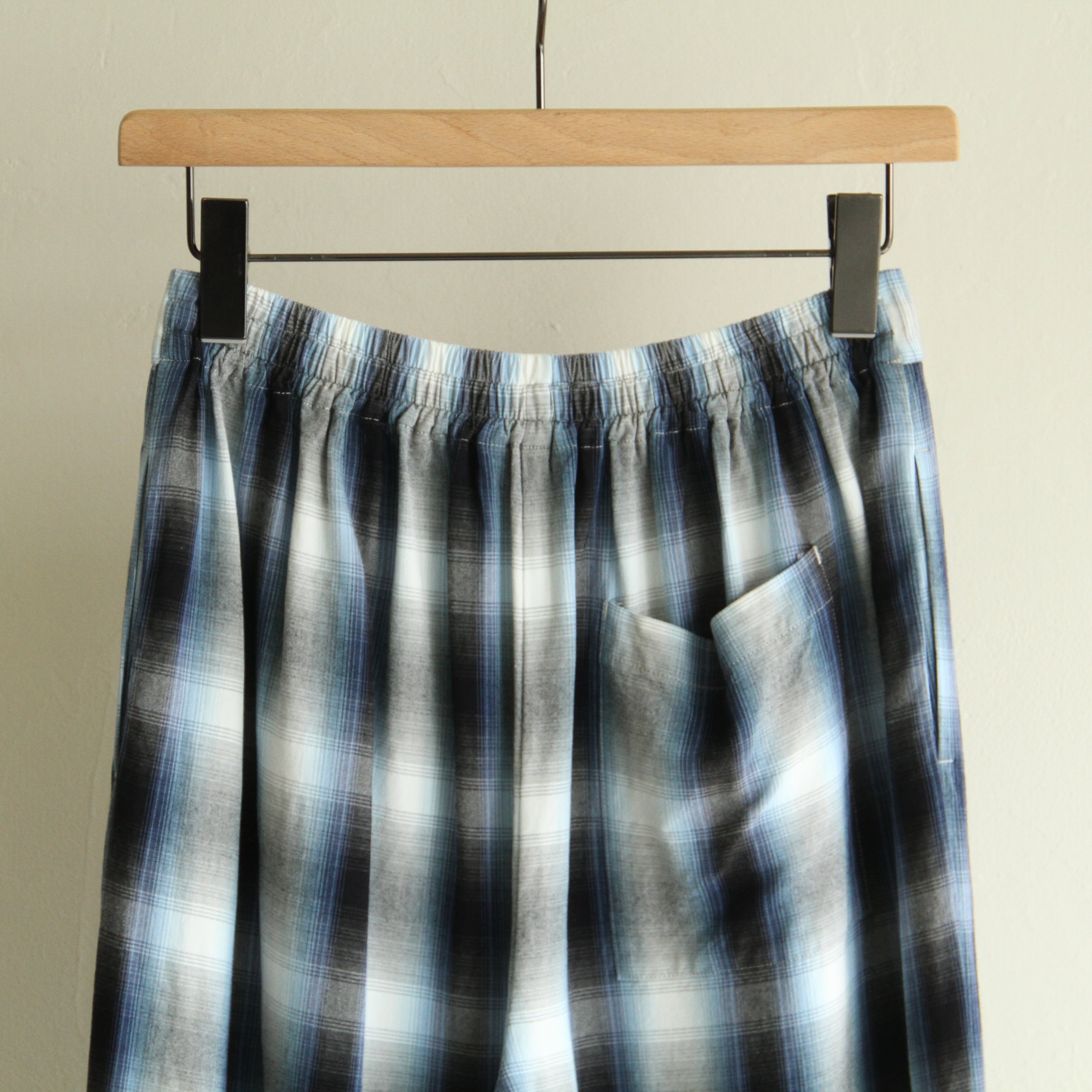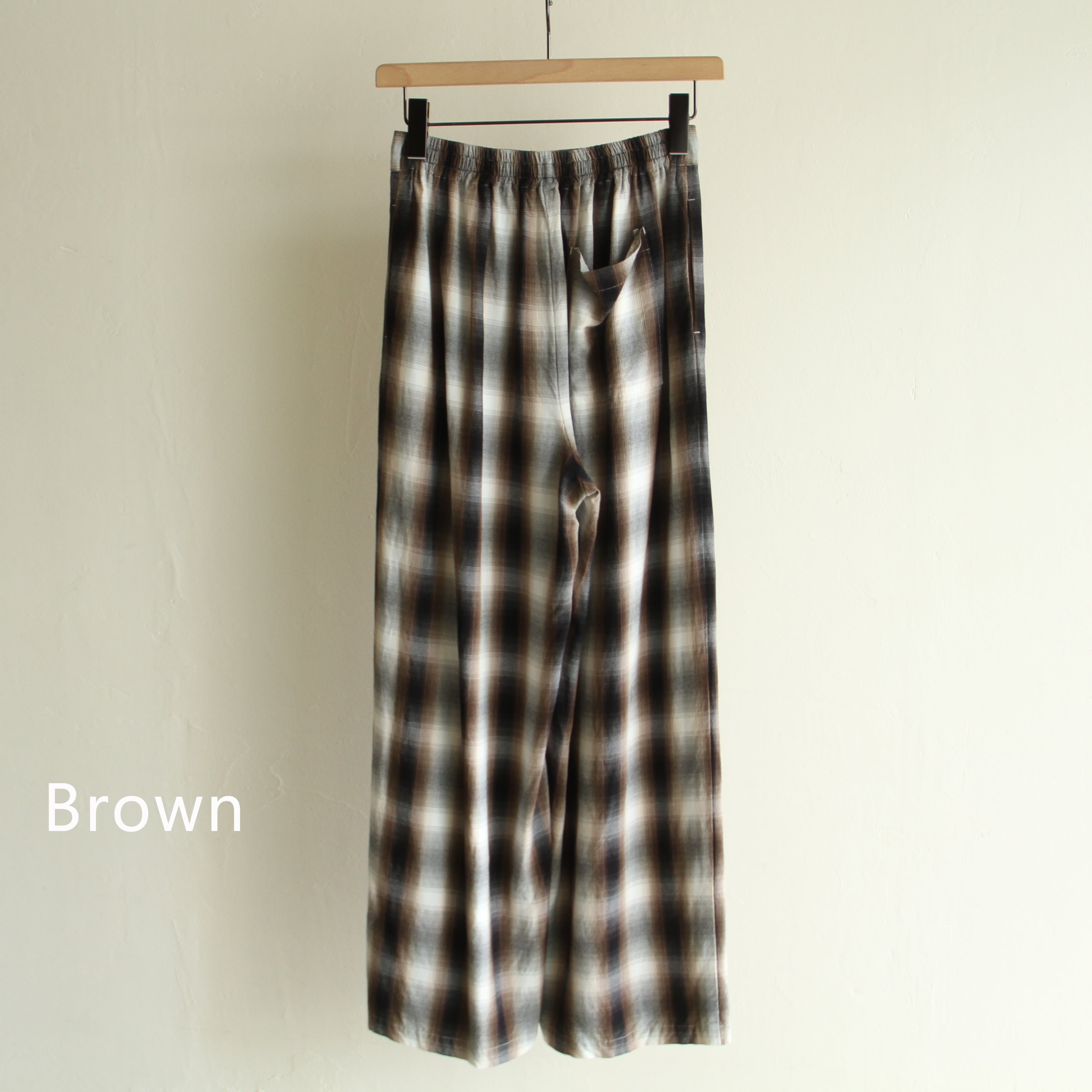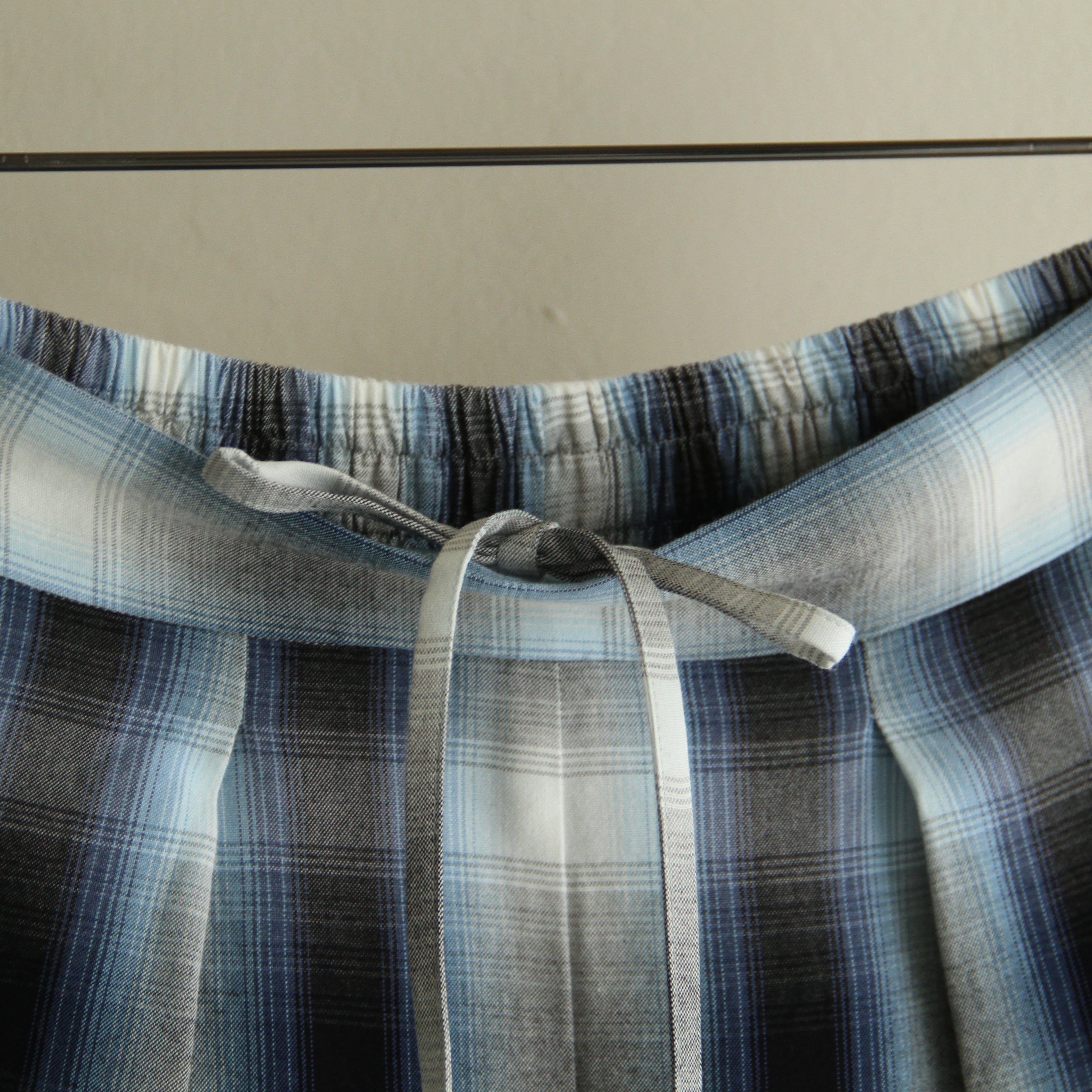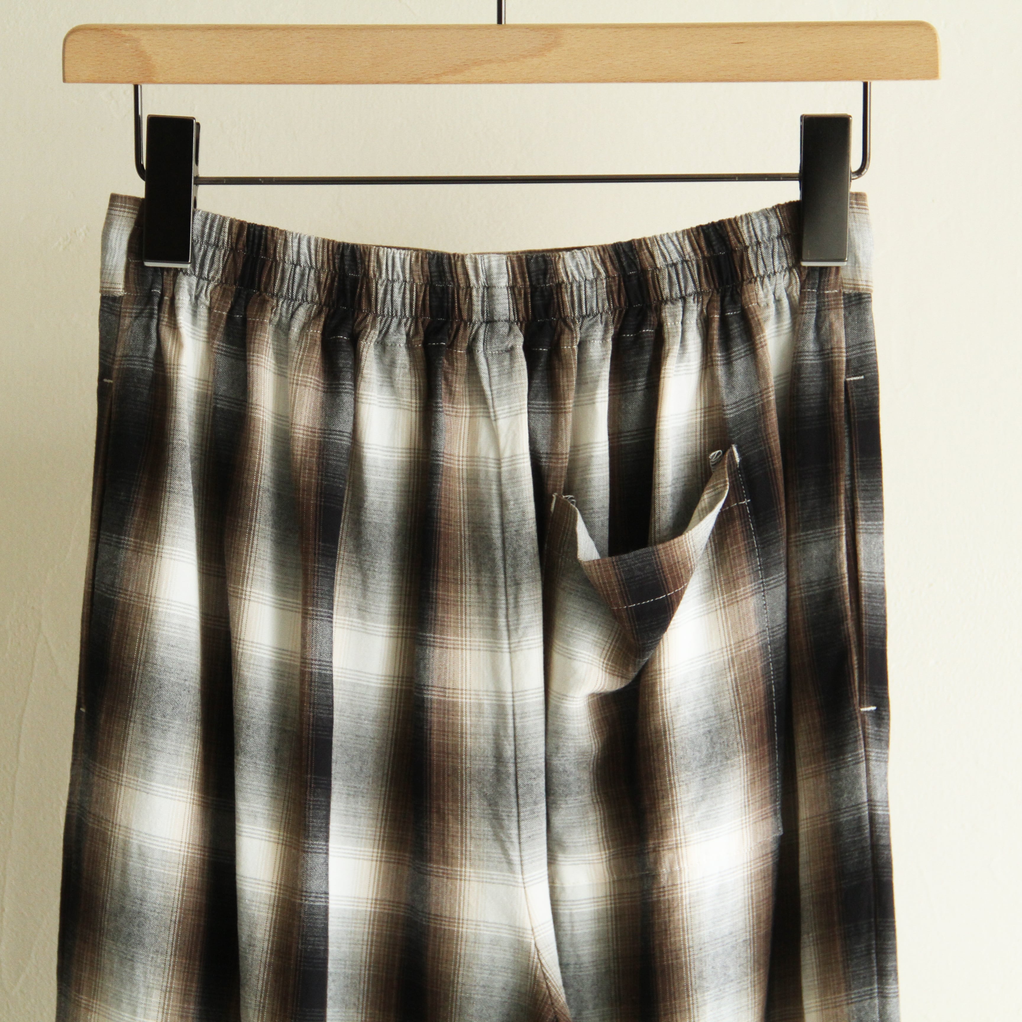 PHEENY定番のオリジナルレーヨンチェックを使用したパンツ。
