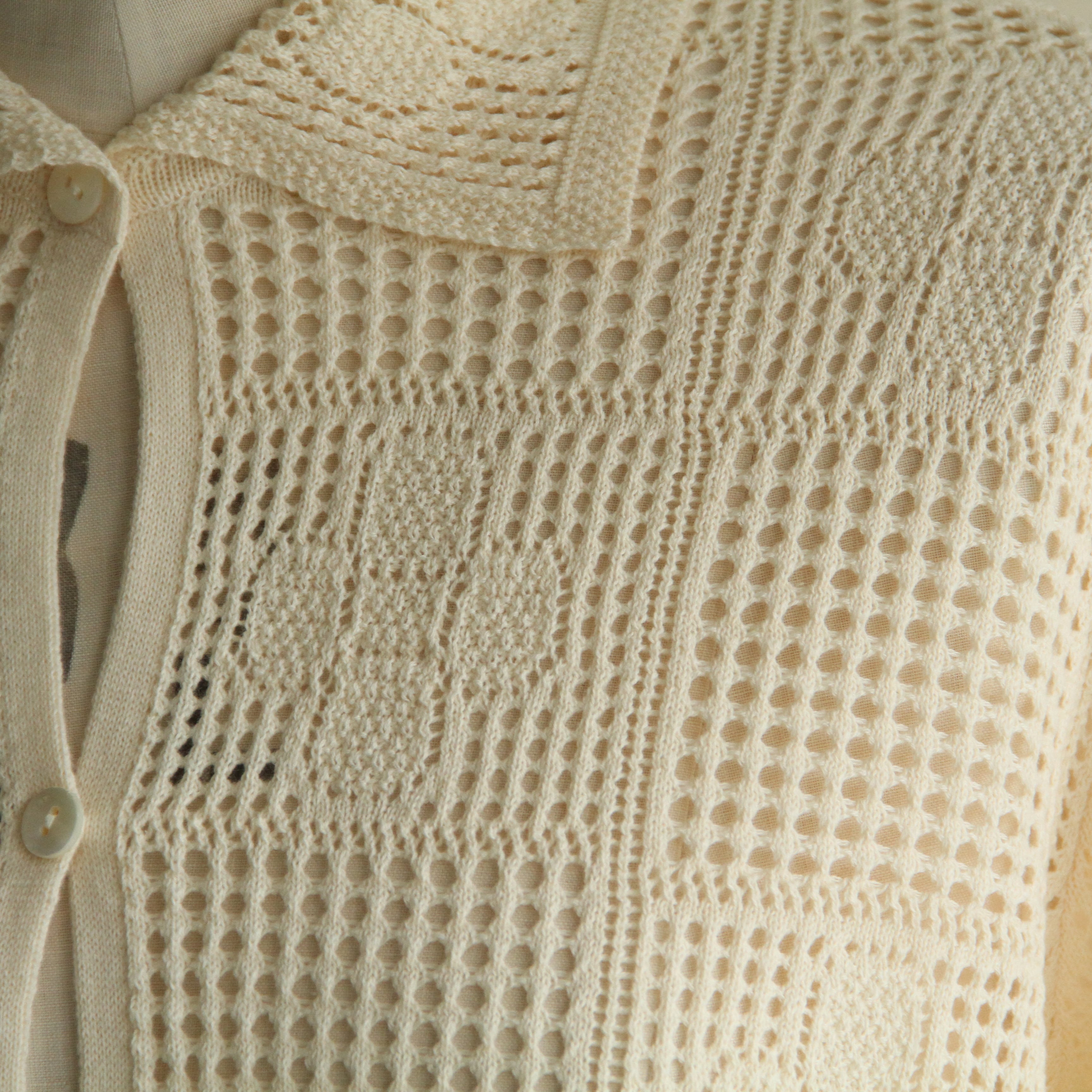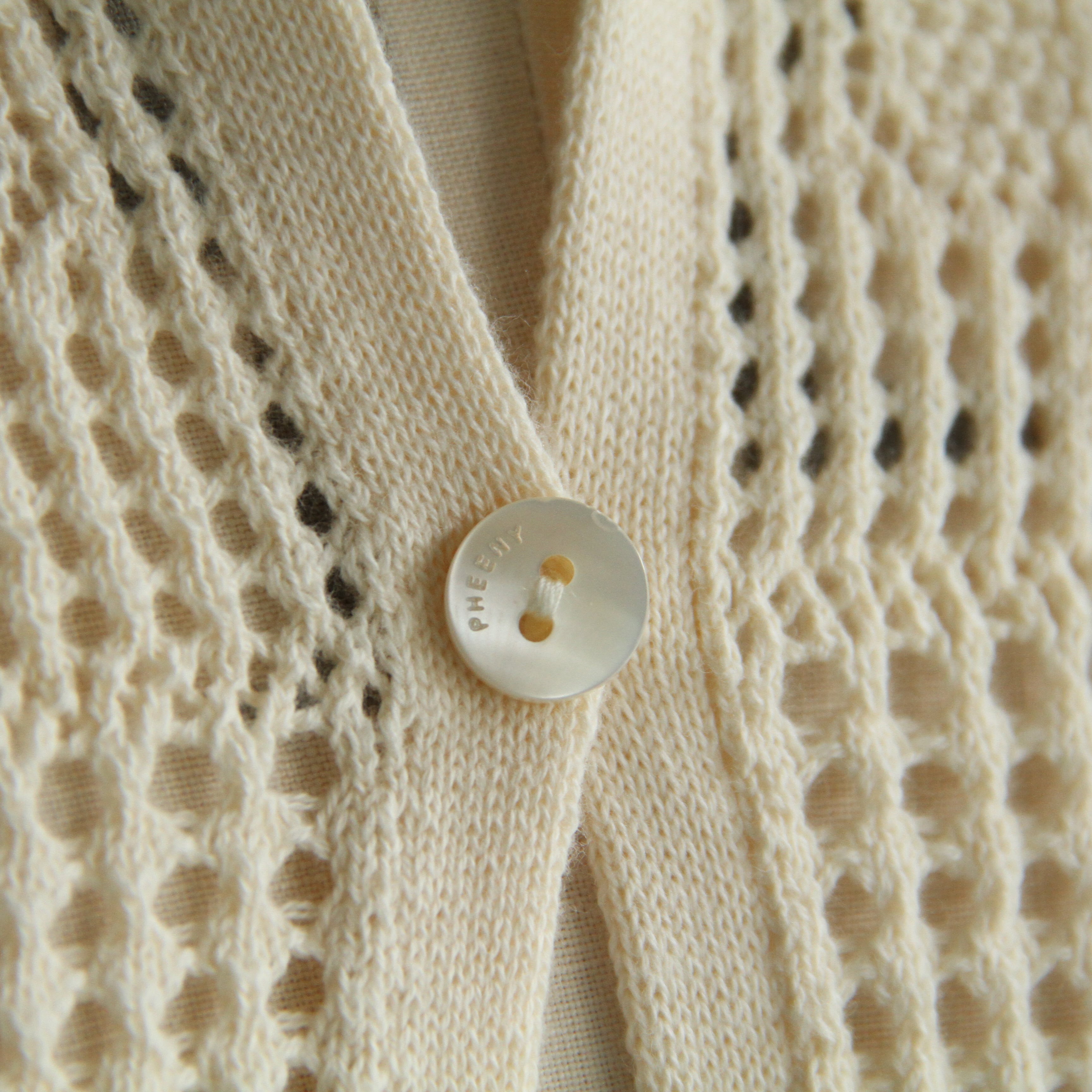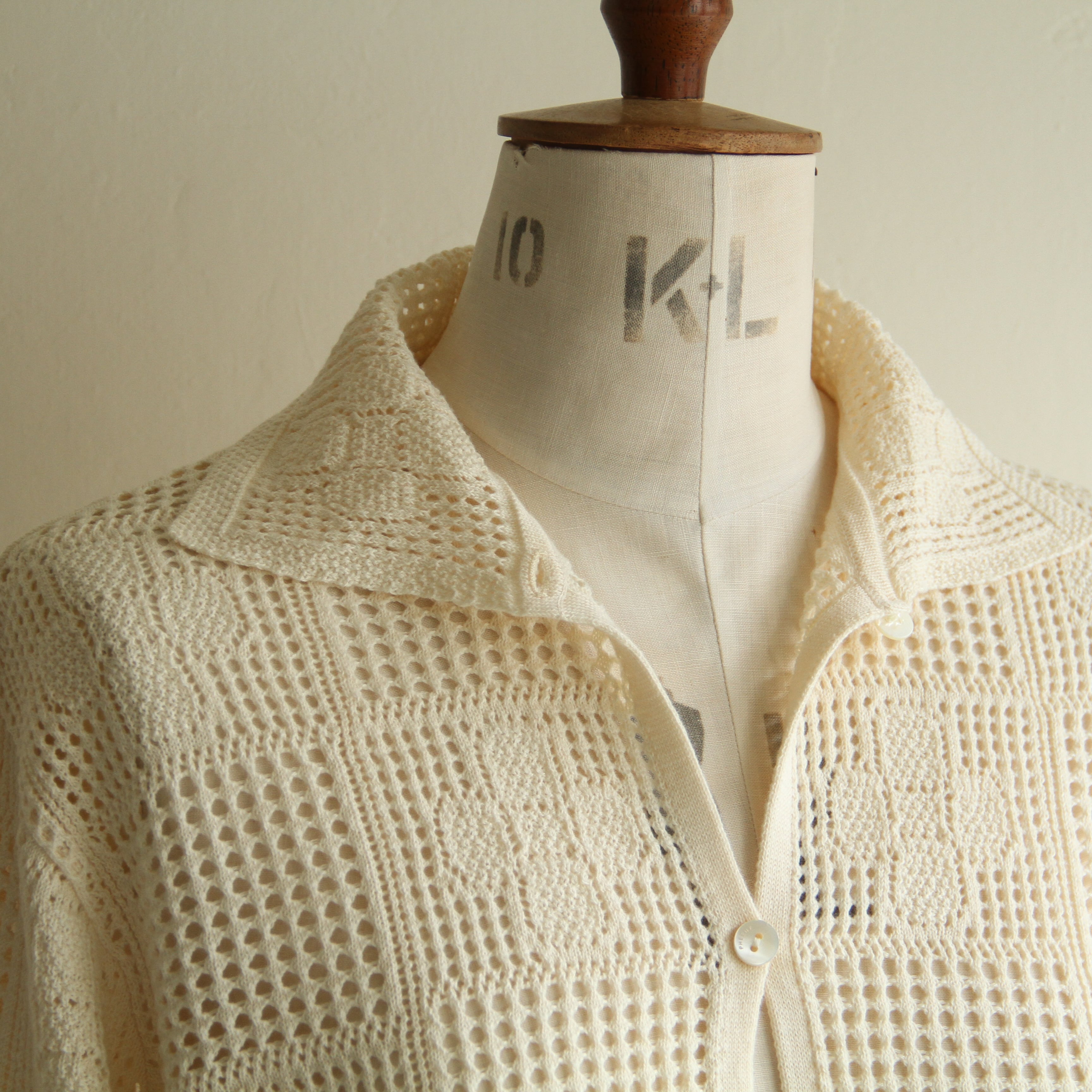 ヴィンテージ感とシアーな素材感が魅力のニットカーディガン。