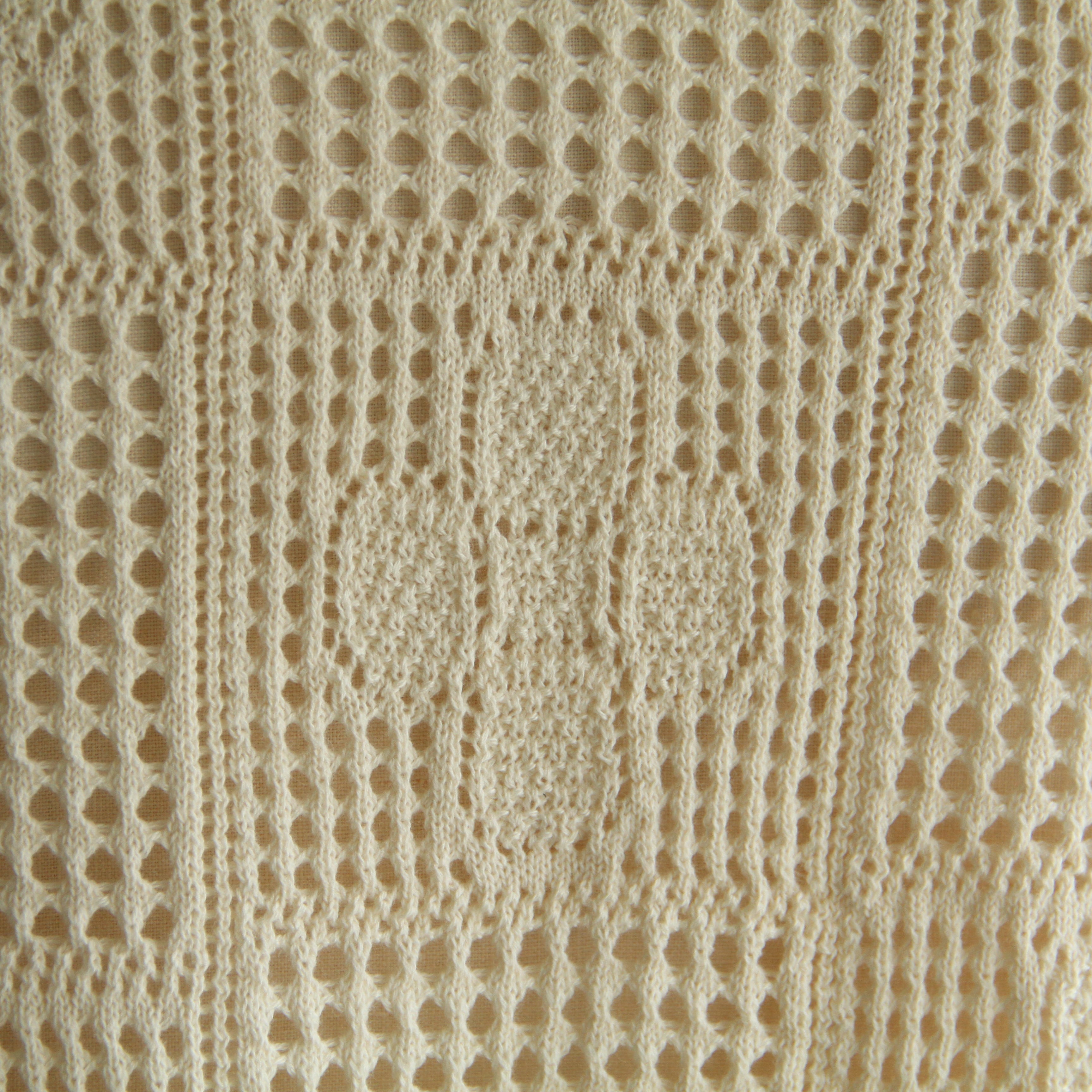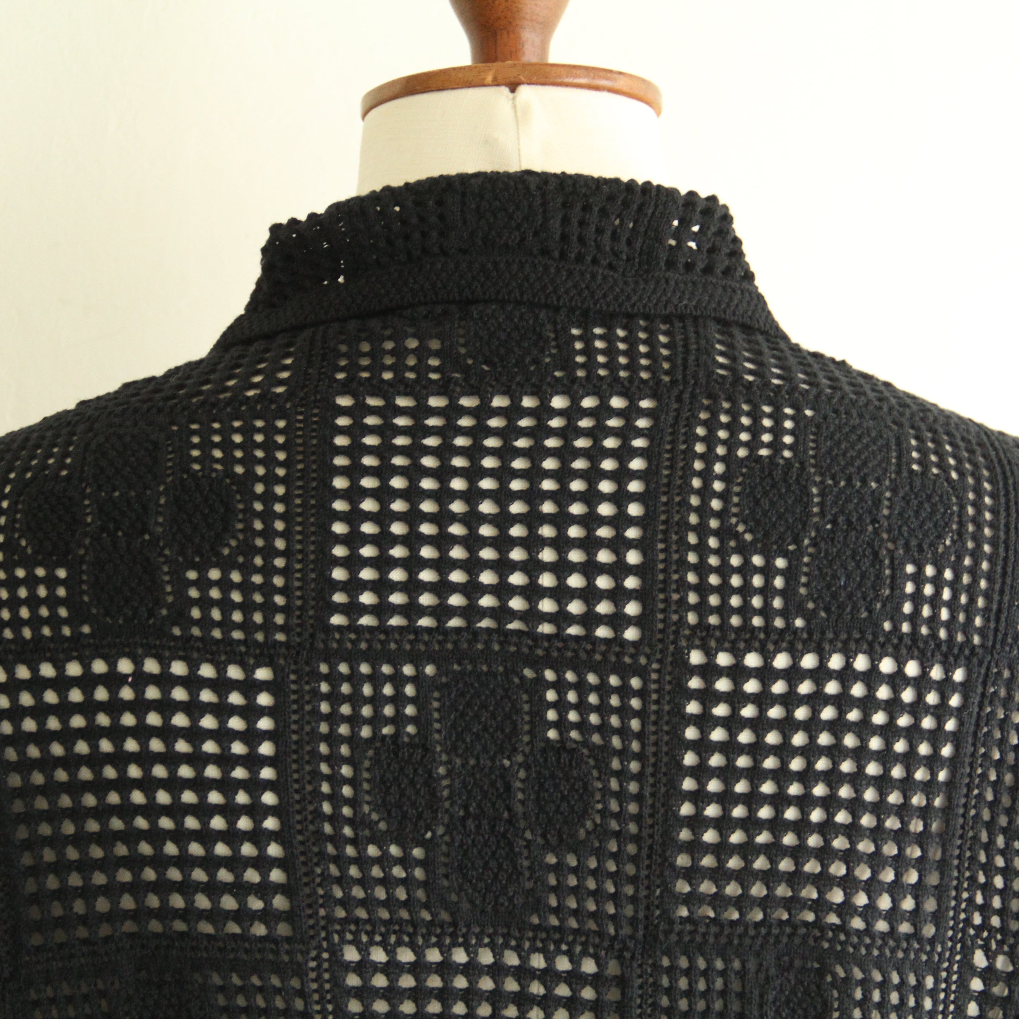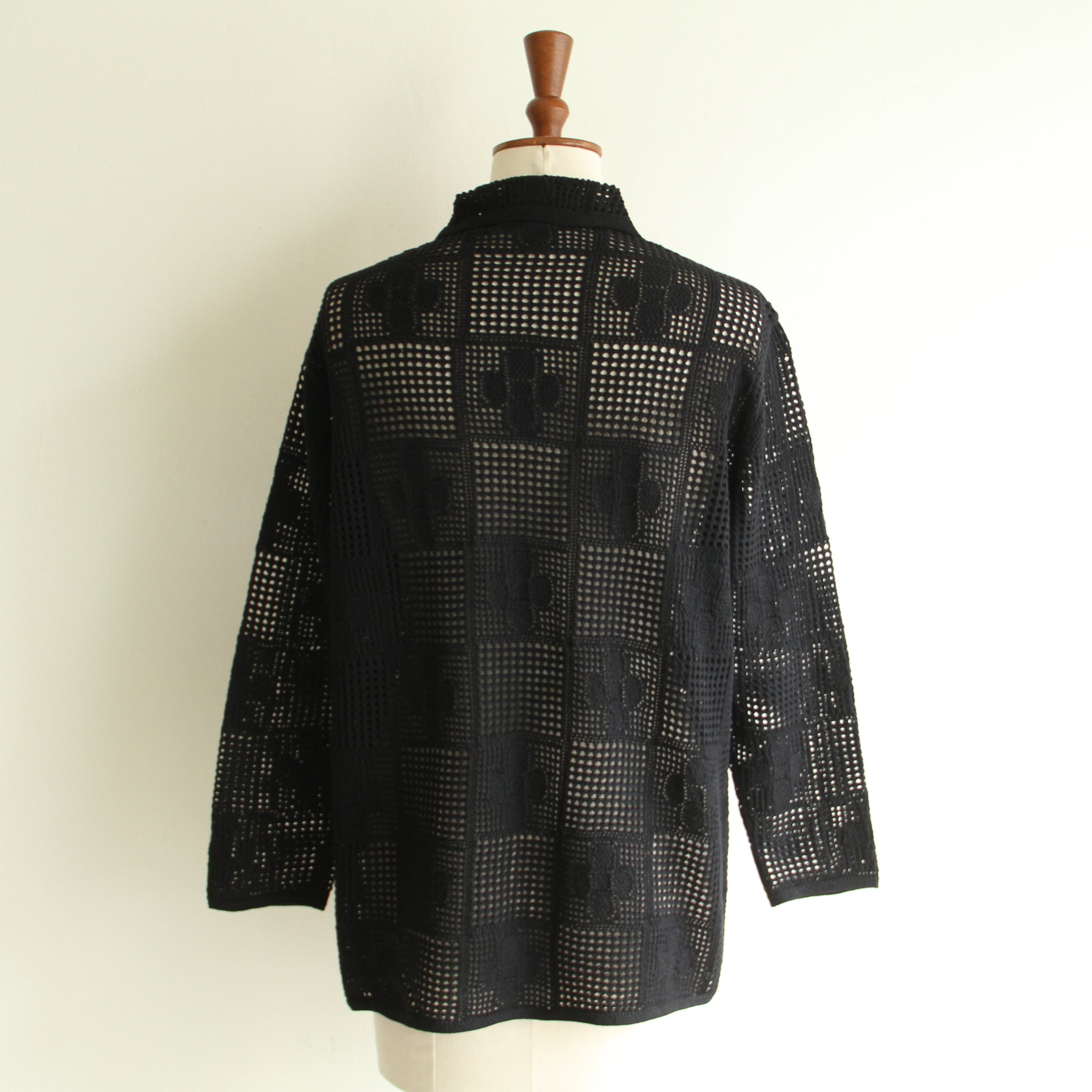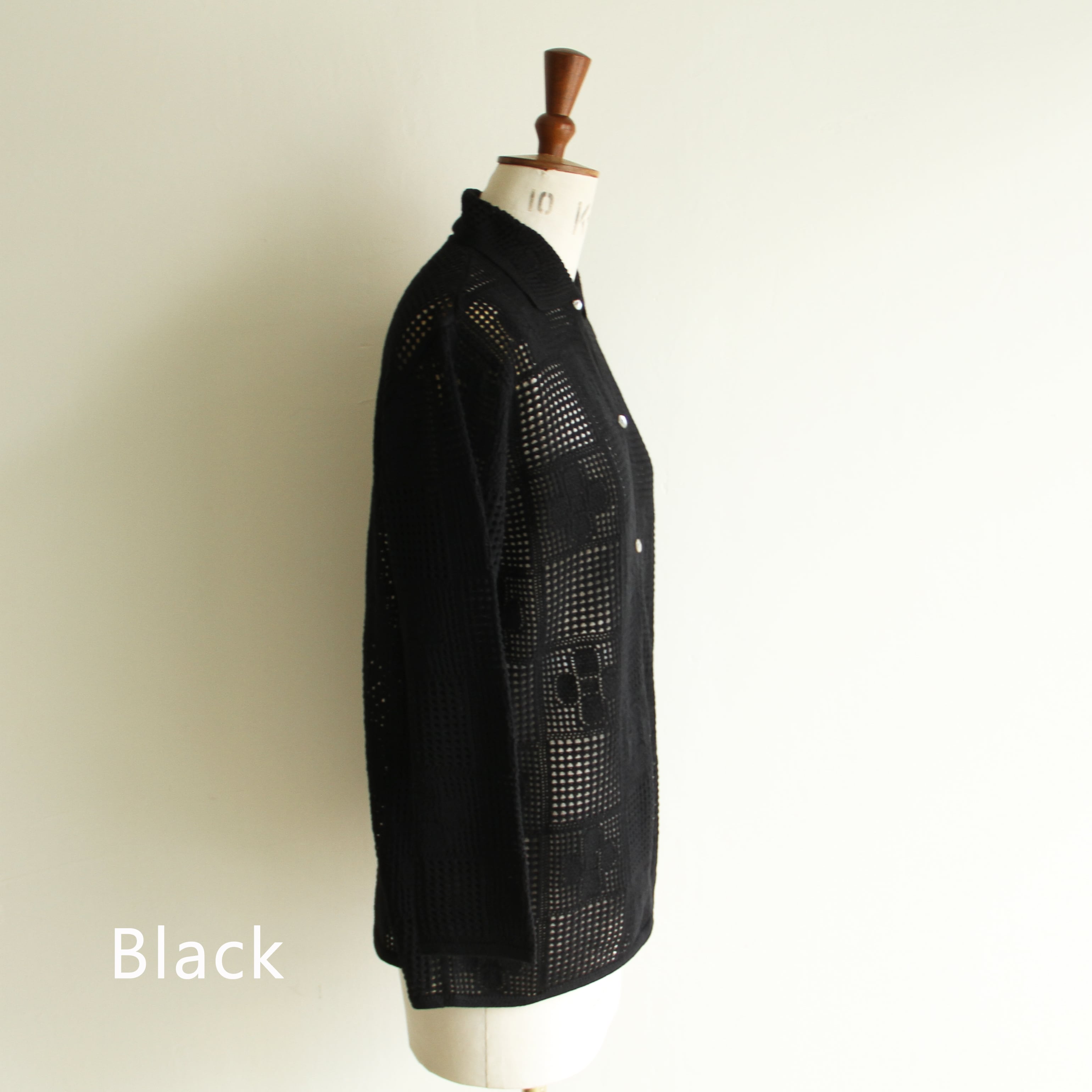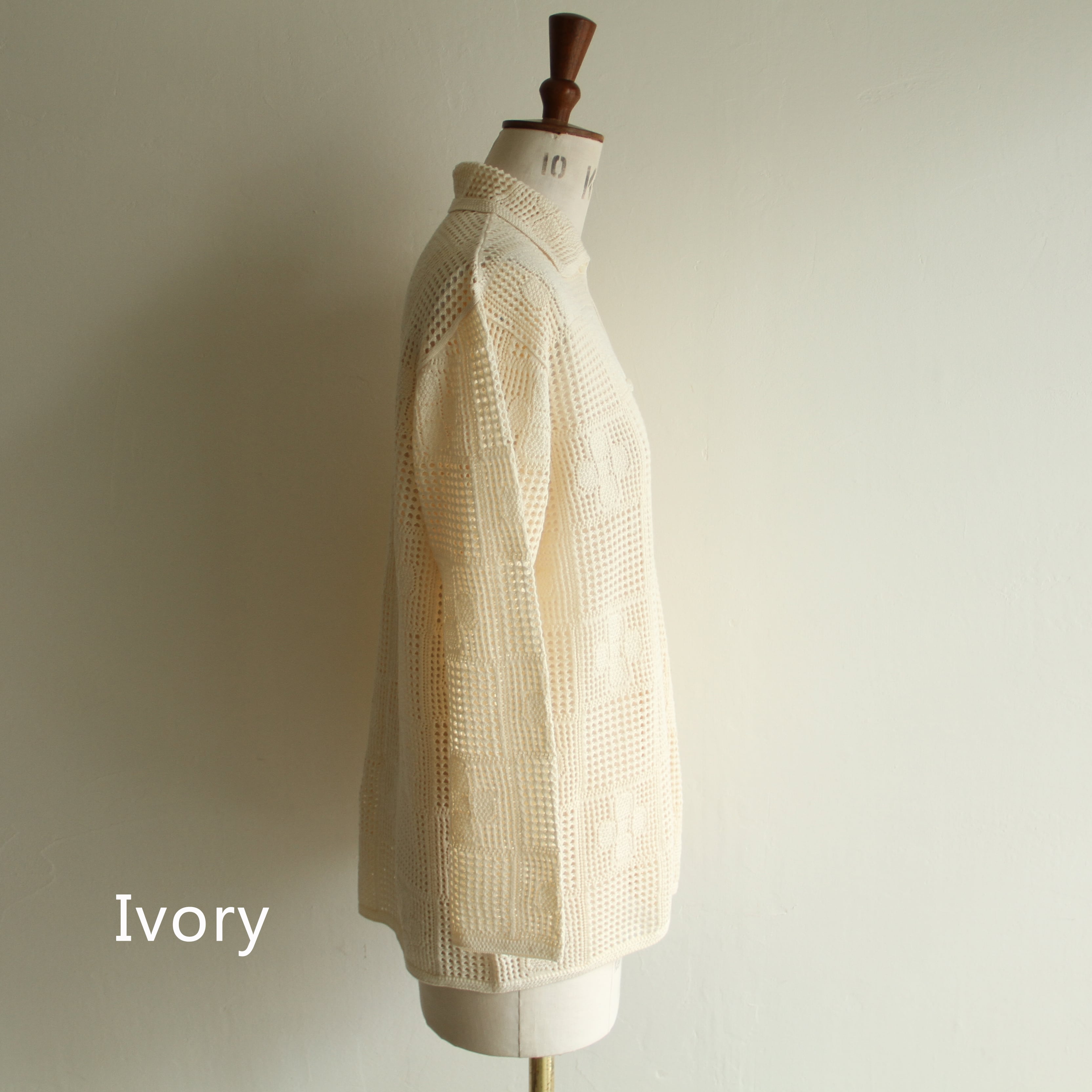 かぎ編み風の花模様と透かし柄で、ヴィンテージライクな表情に仕上げられています。