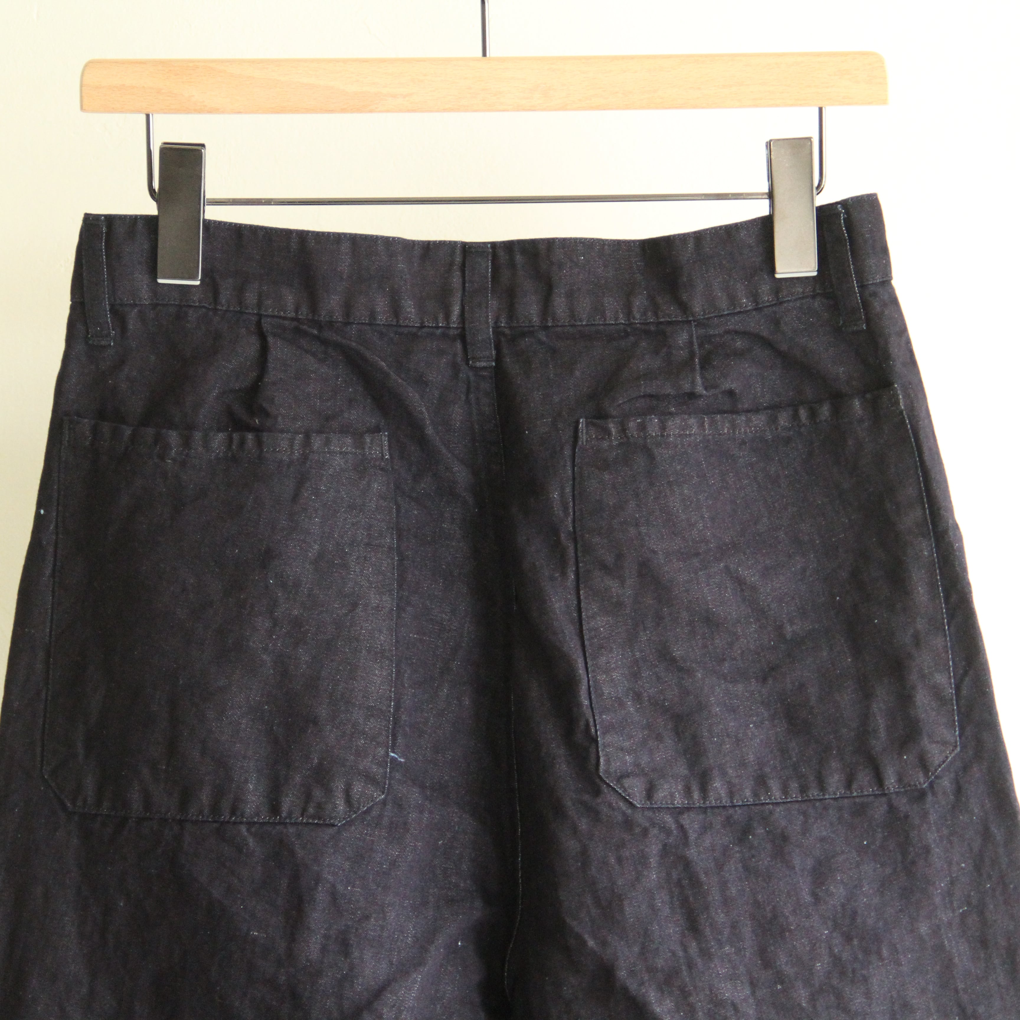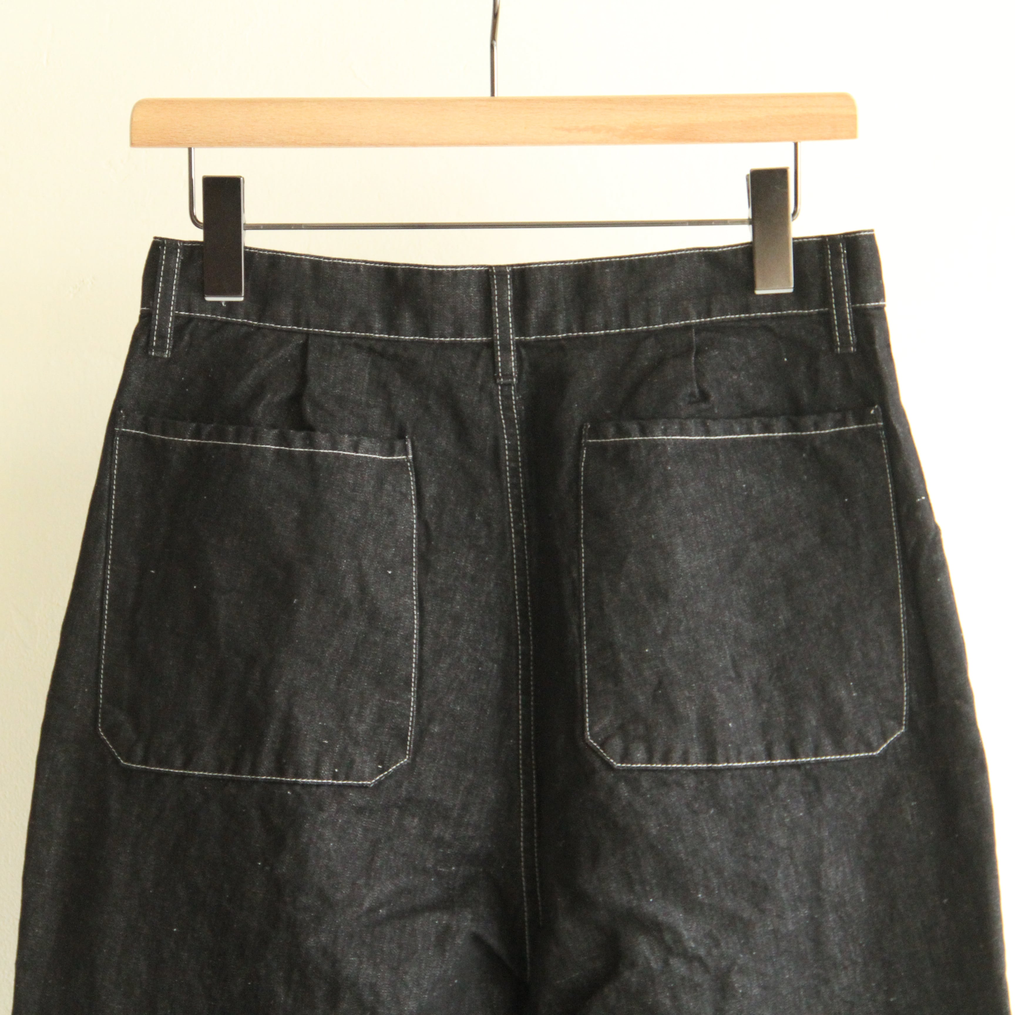 小さなインタック入りの中太テーパードシルエットです。