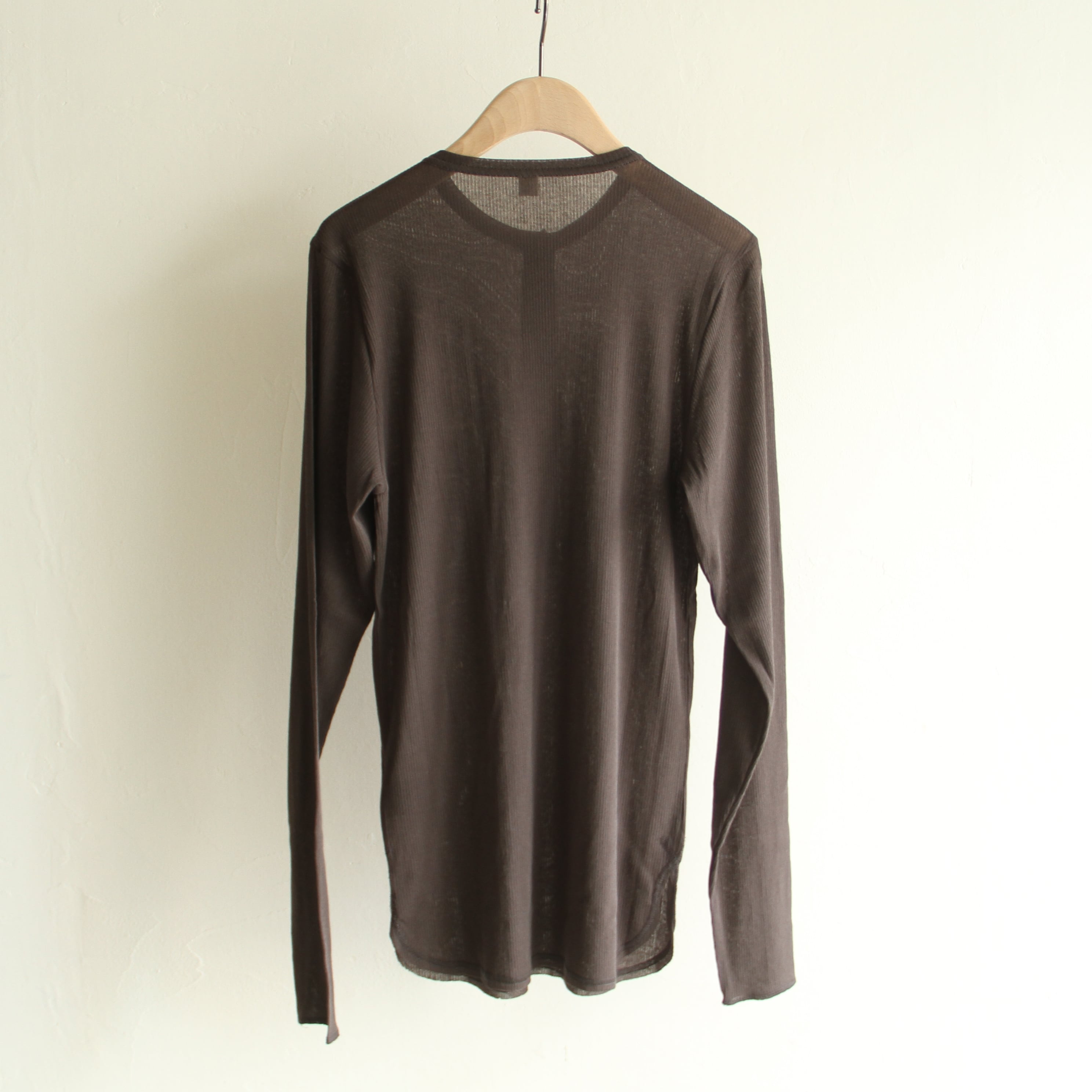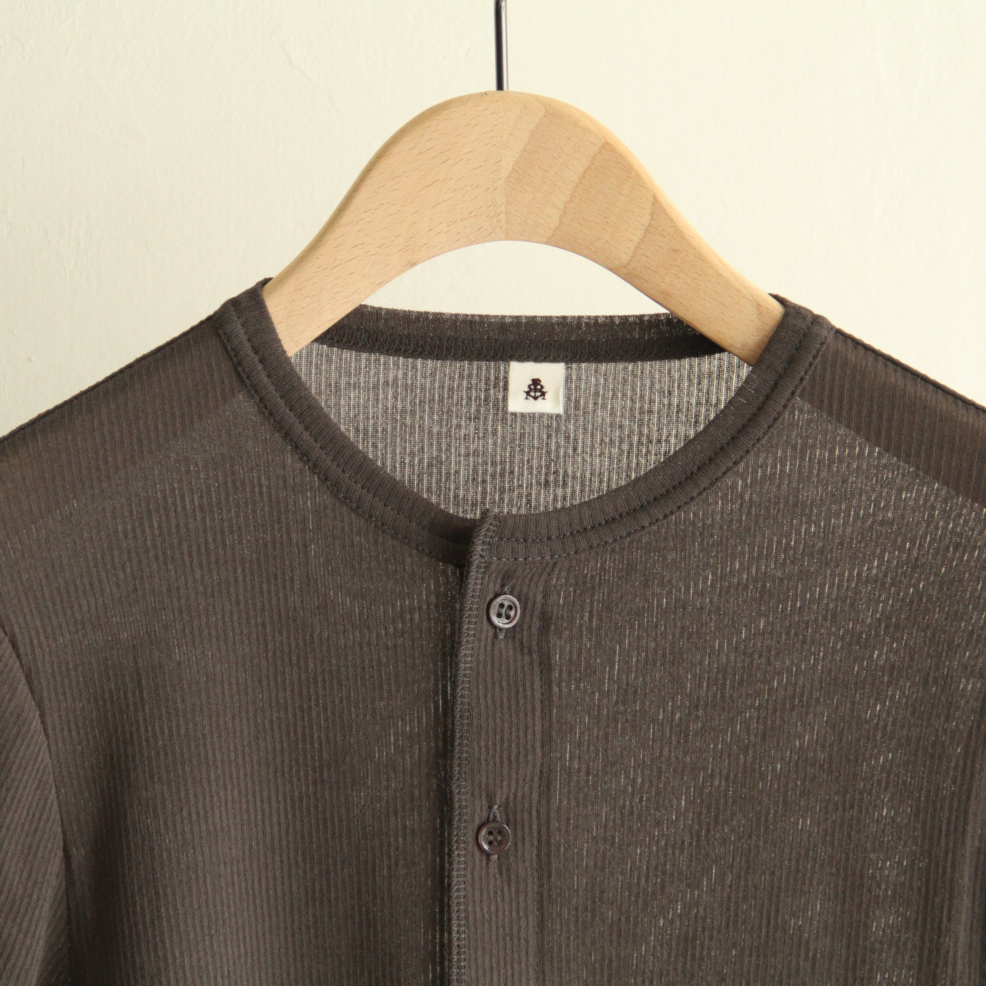 コットンの強撚糸を使用したヘンリーネックカットソー。