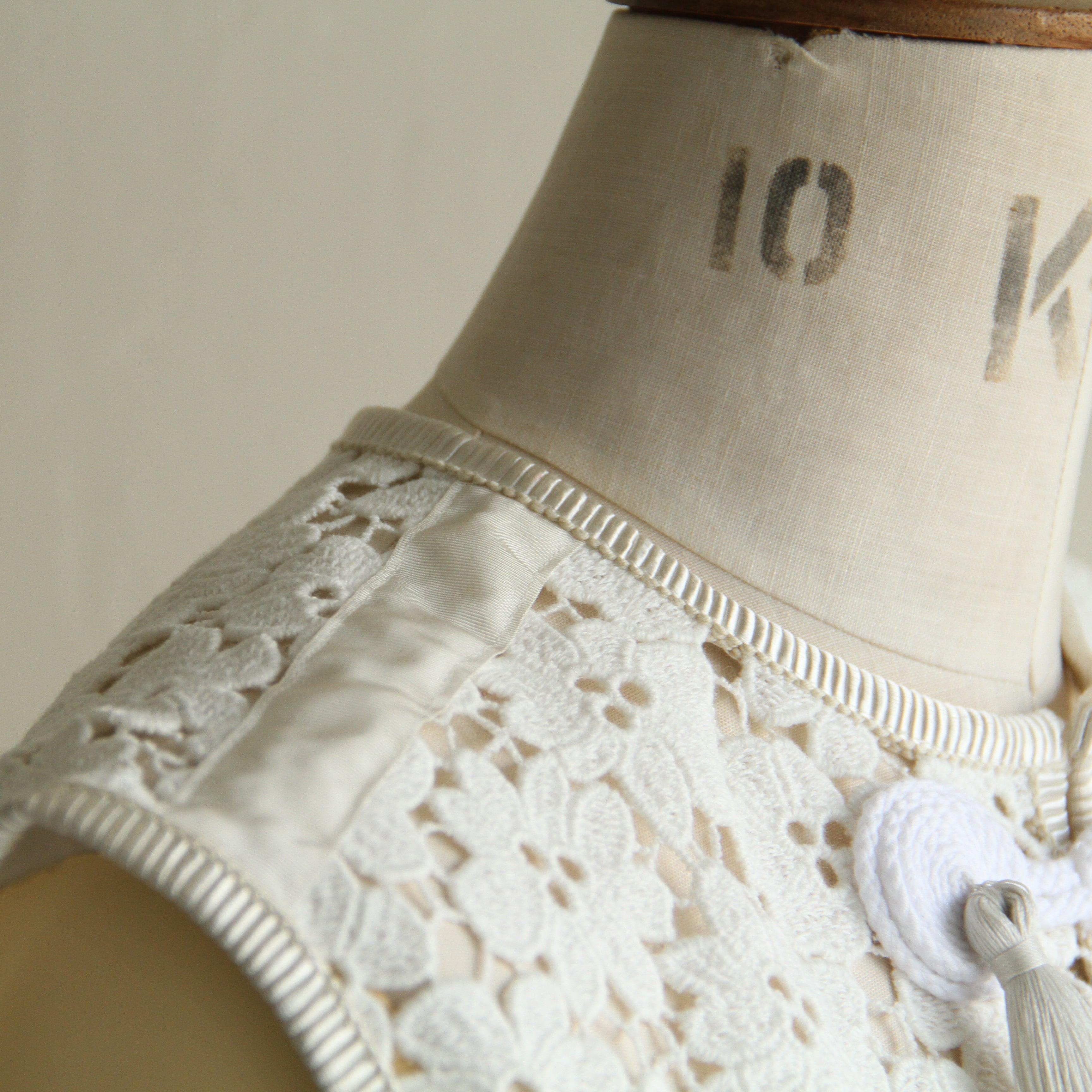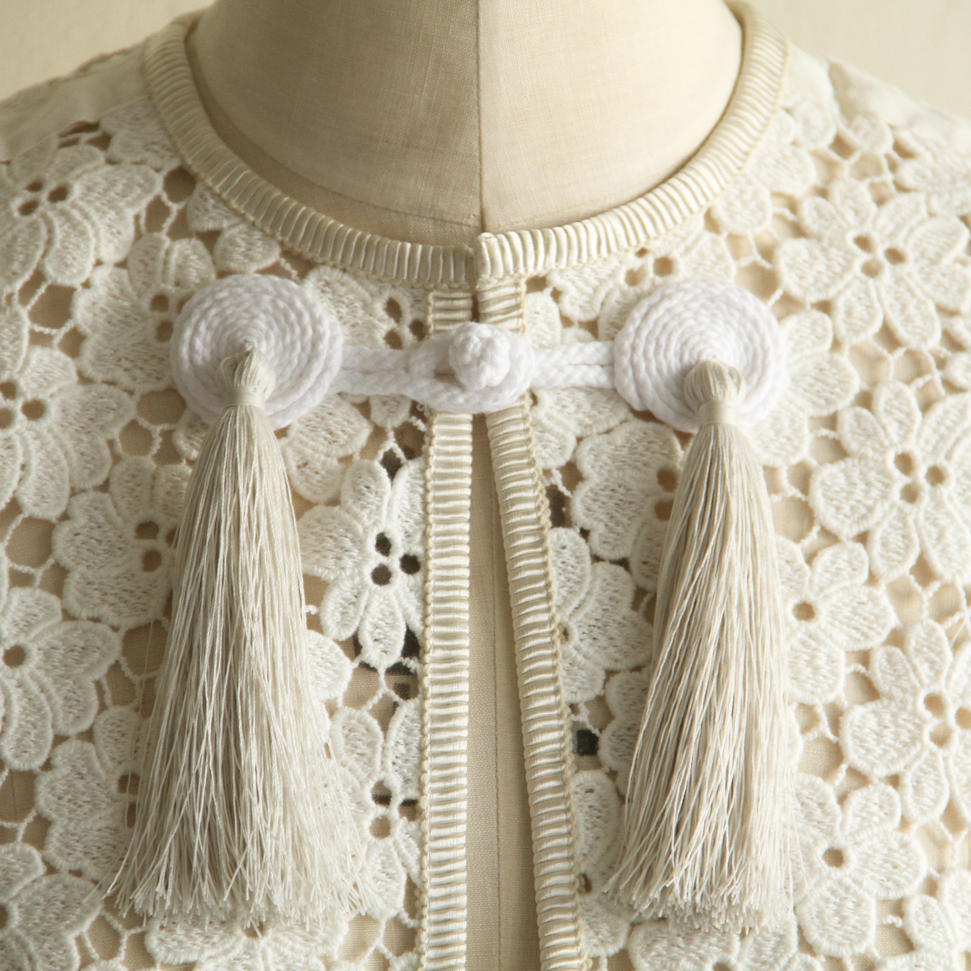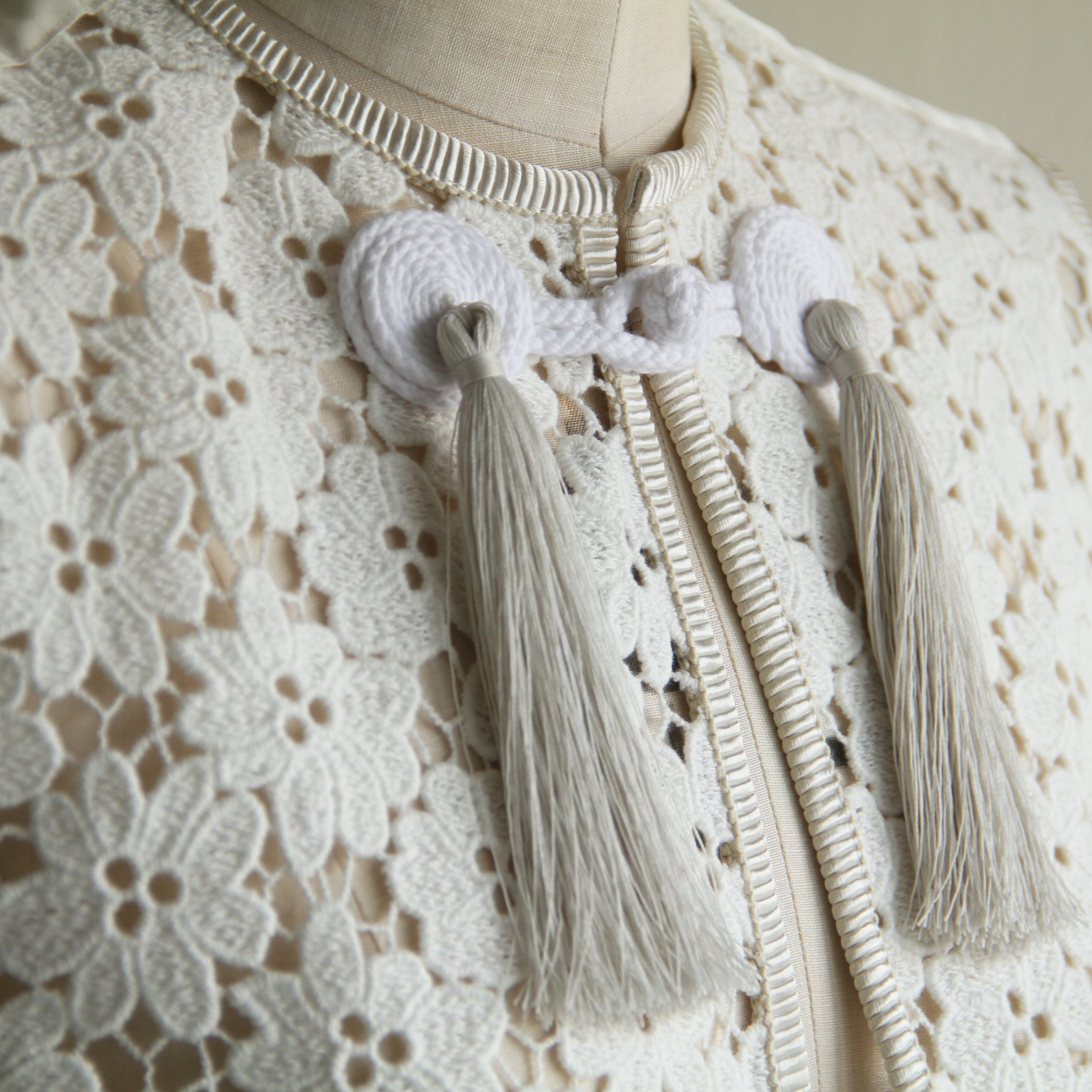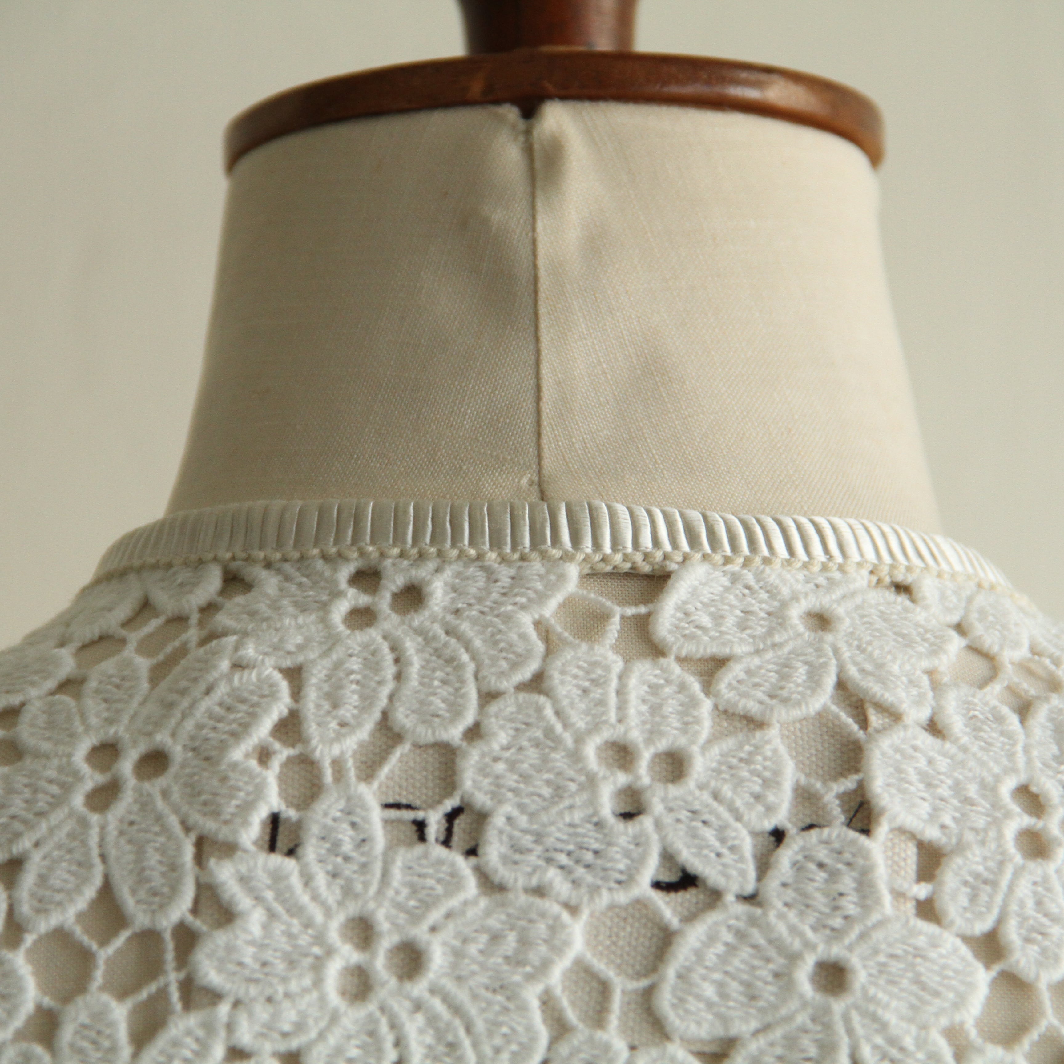 国内の老舗レース工場にて作成されたオリジナルのコットンのケミカルレースを使用したベスト。