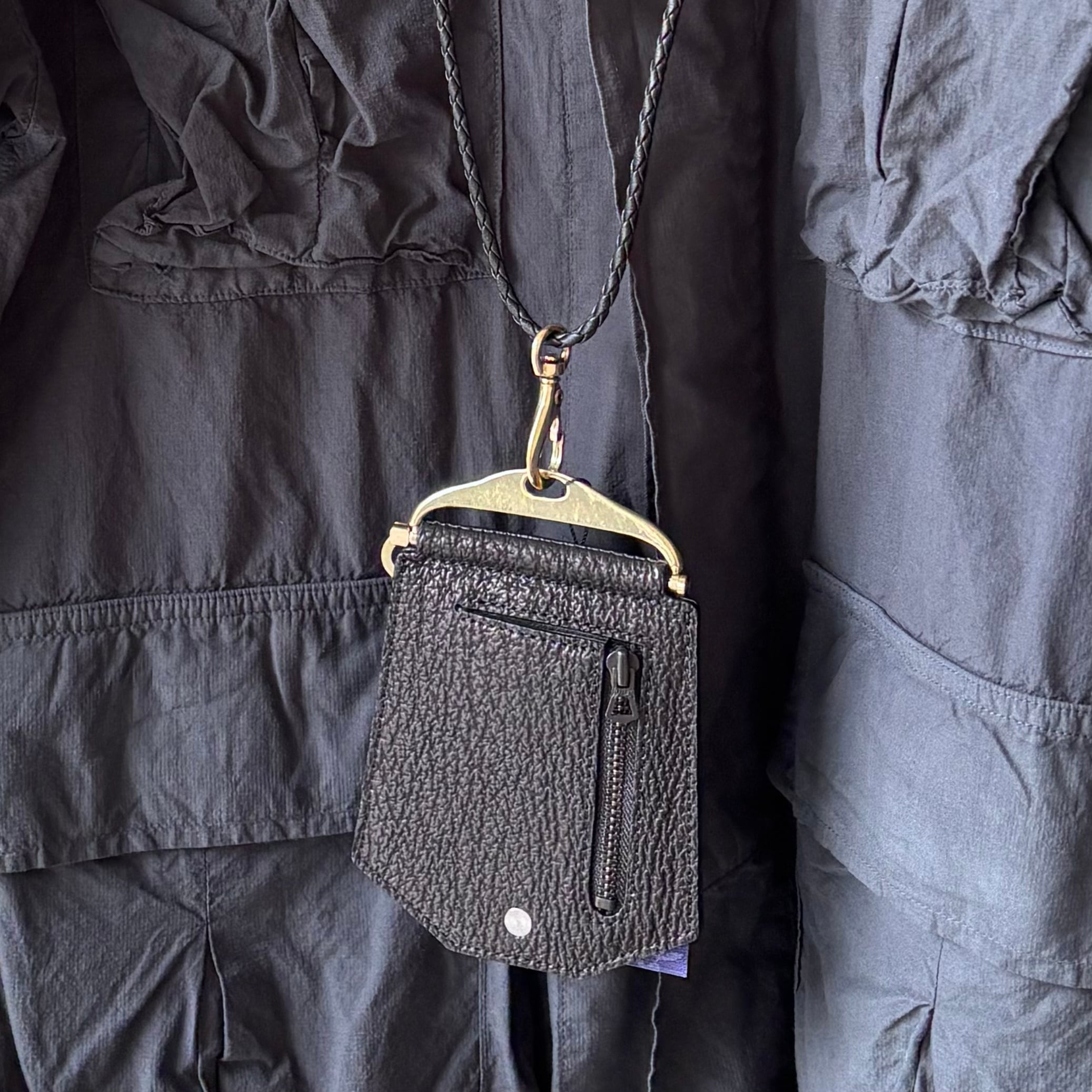 牛革×鮫革を贅沢に使用した、クロシェット型ネックレス。