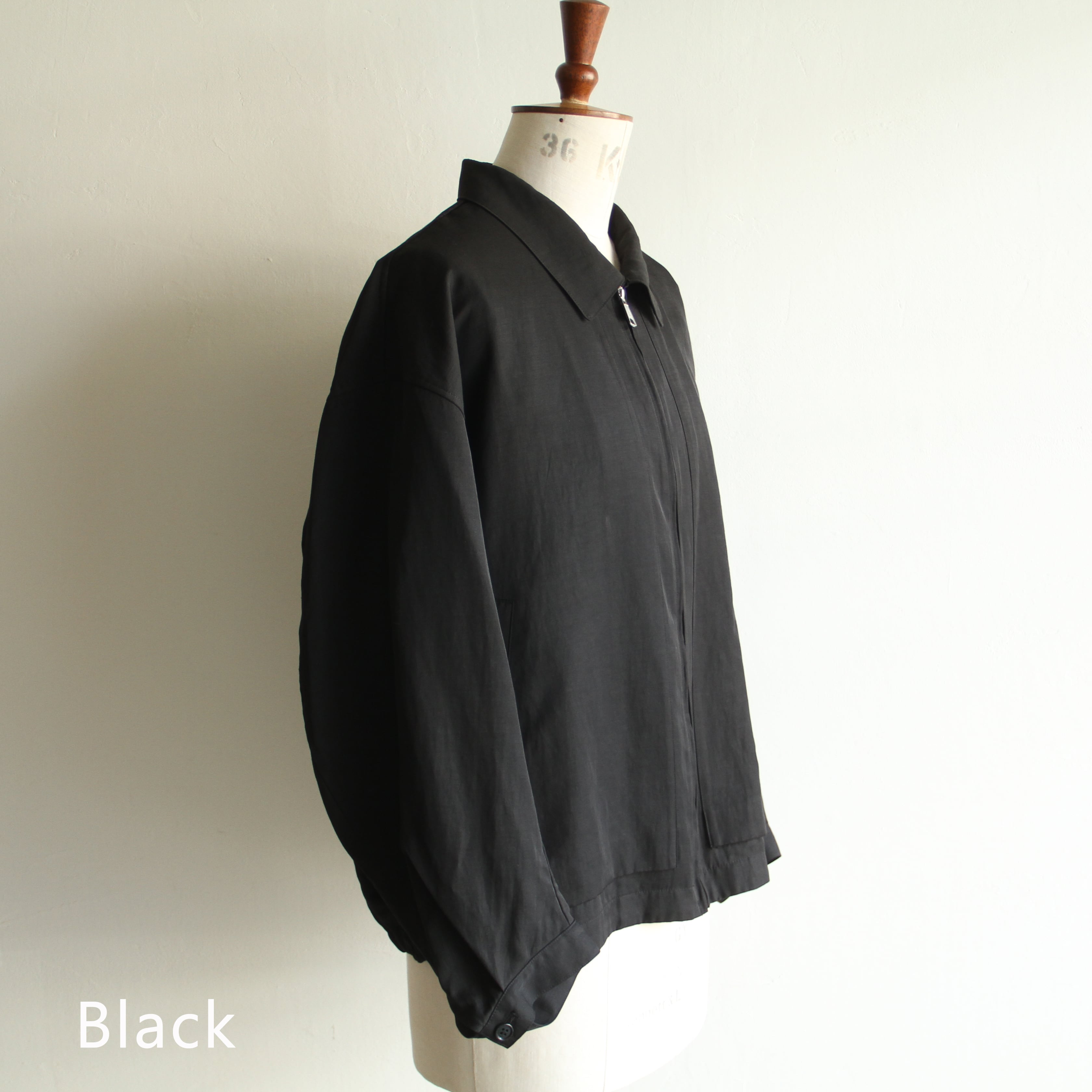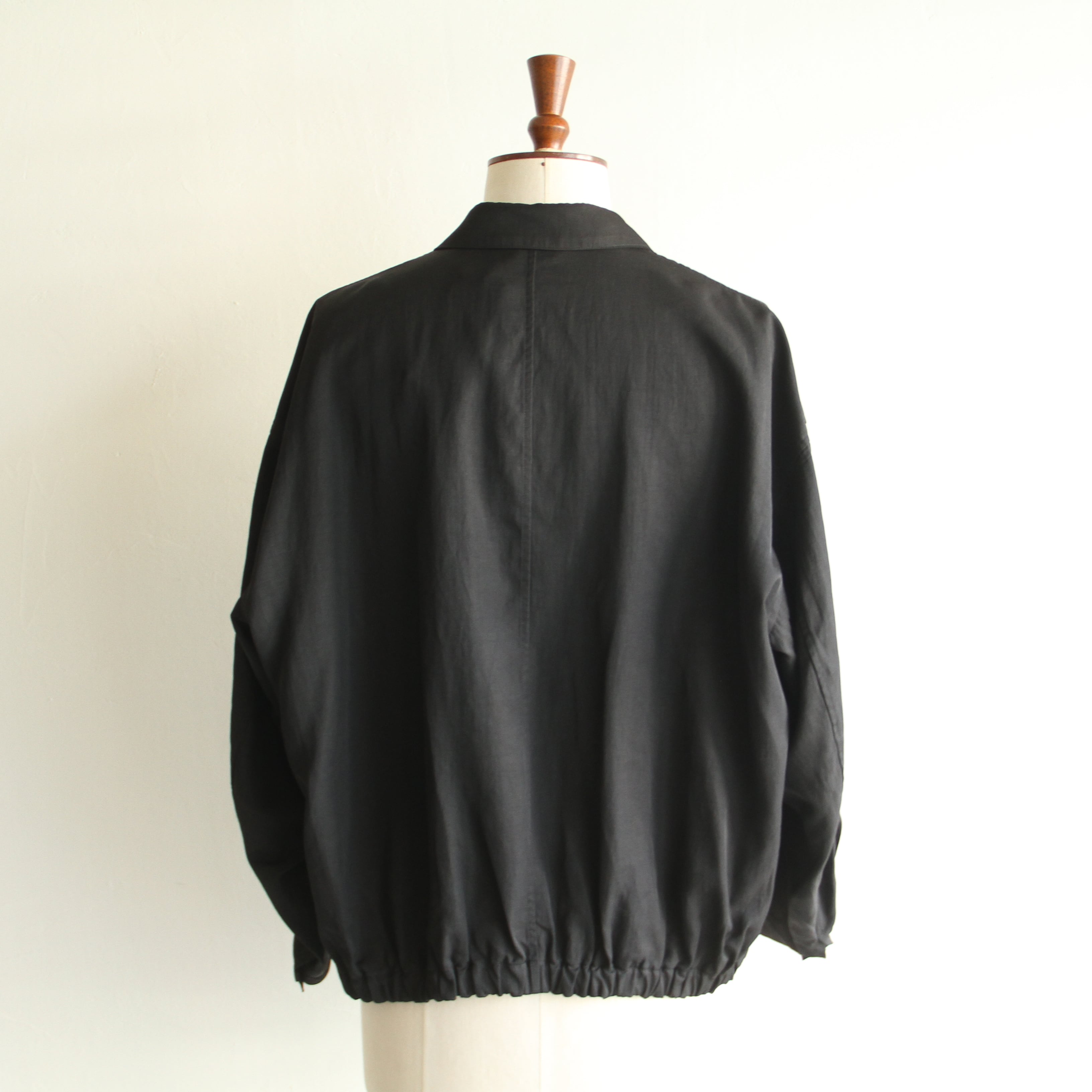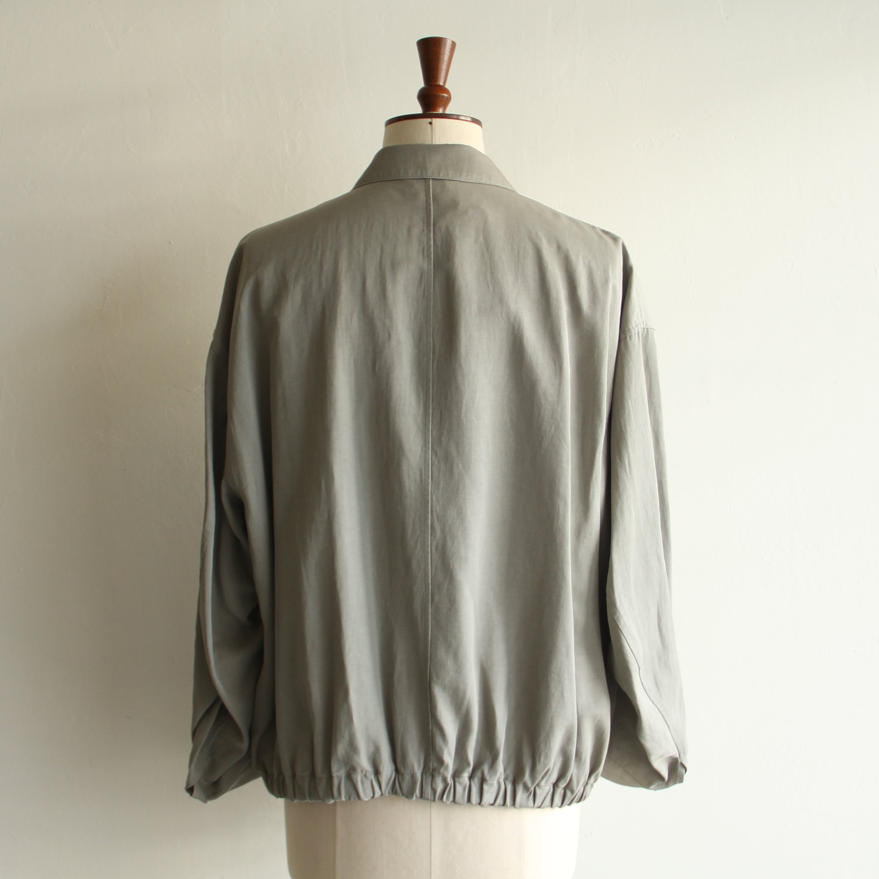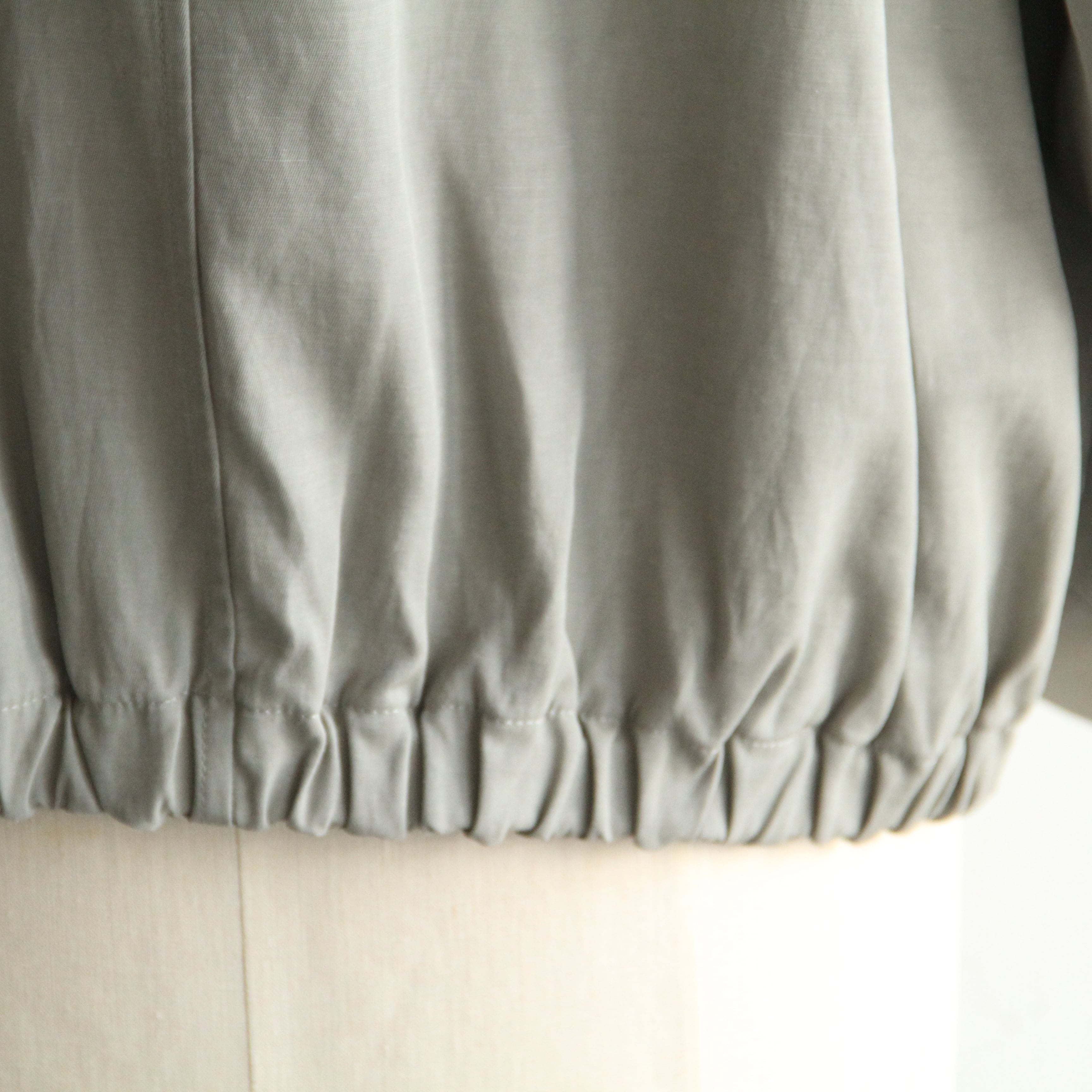 後身頃裾のゴムでドレープ感のあるシルエットを作っていて後ろ姿が綺麗なブルゾンです。