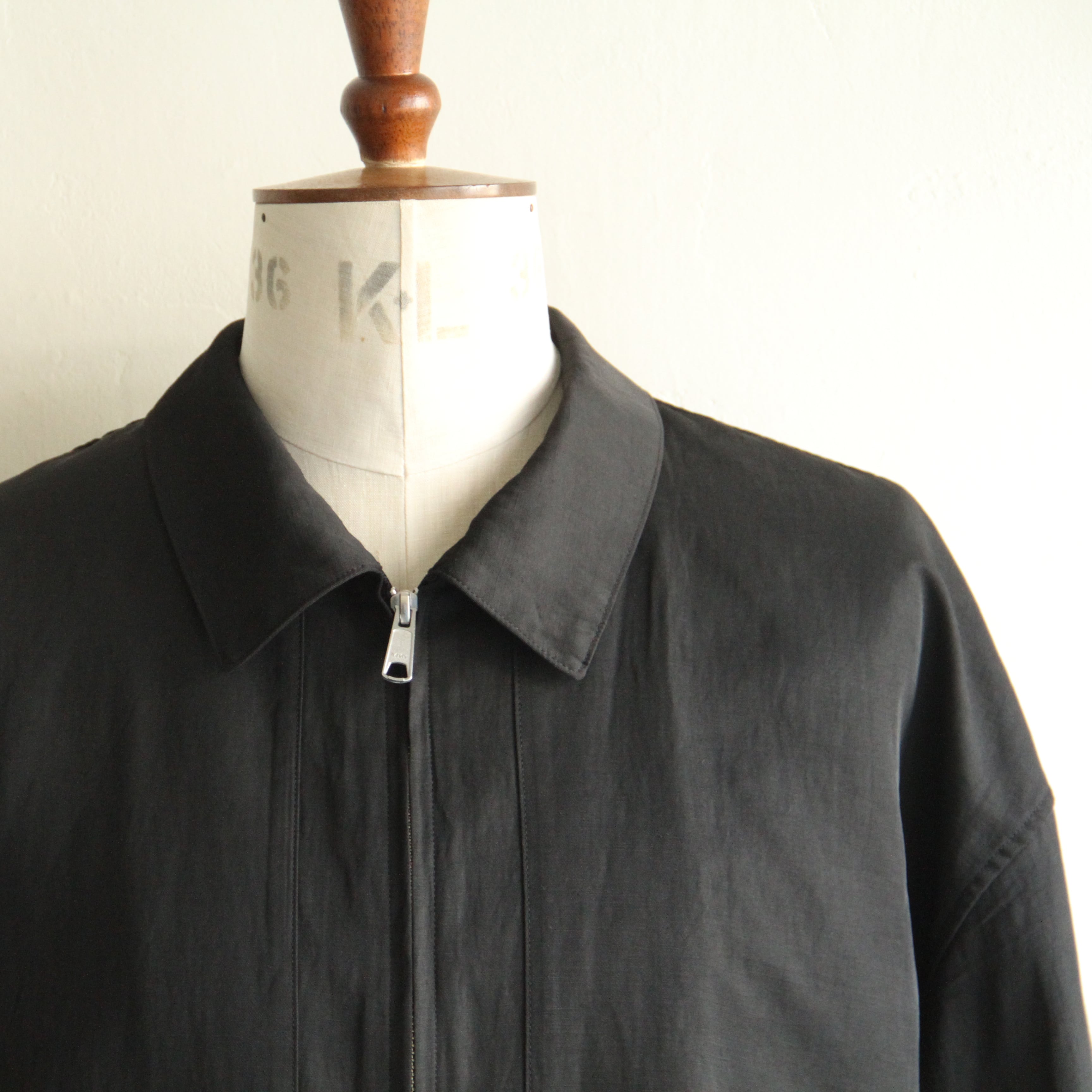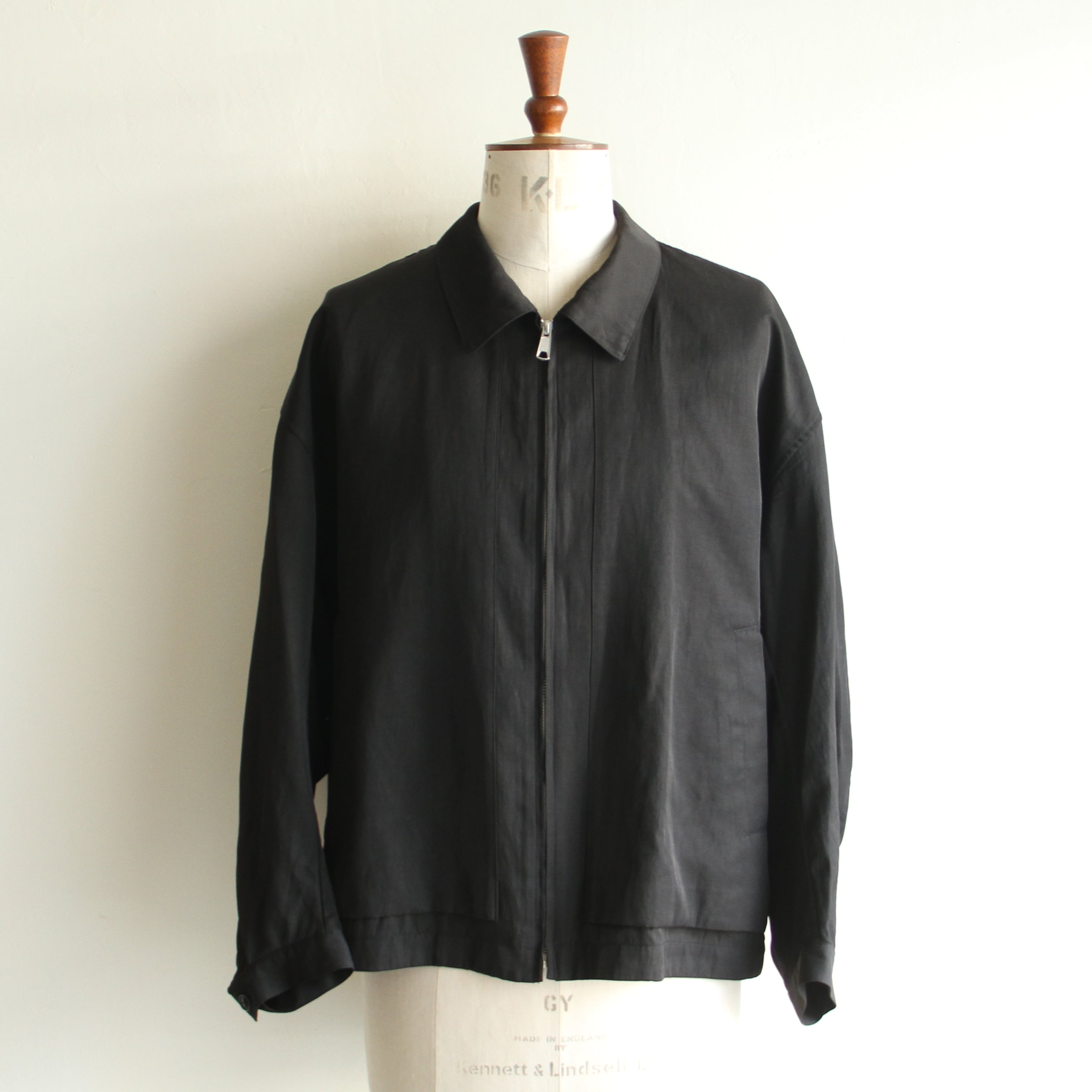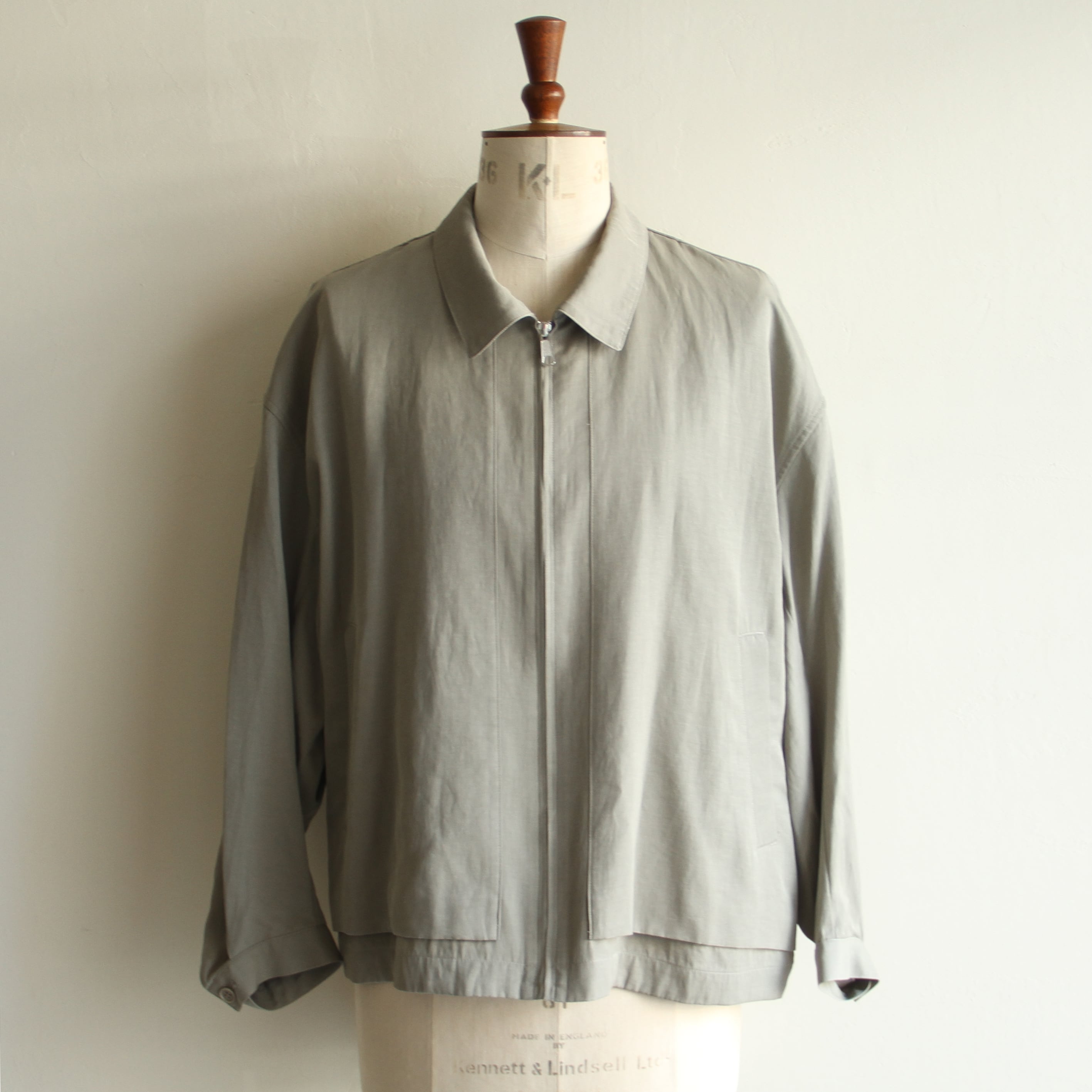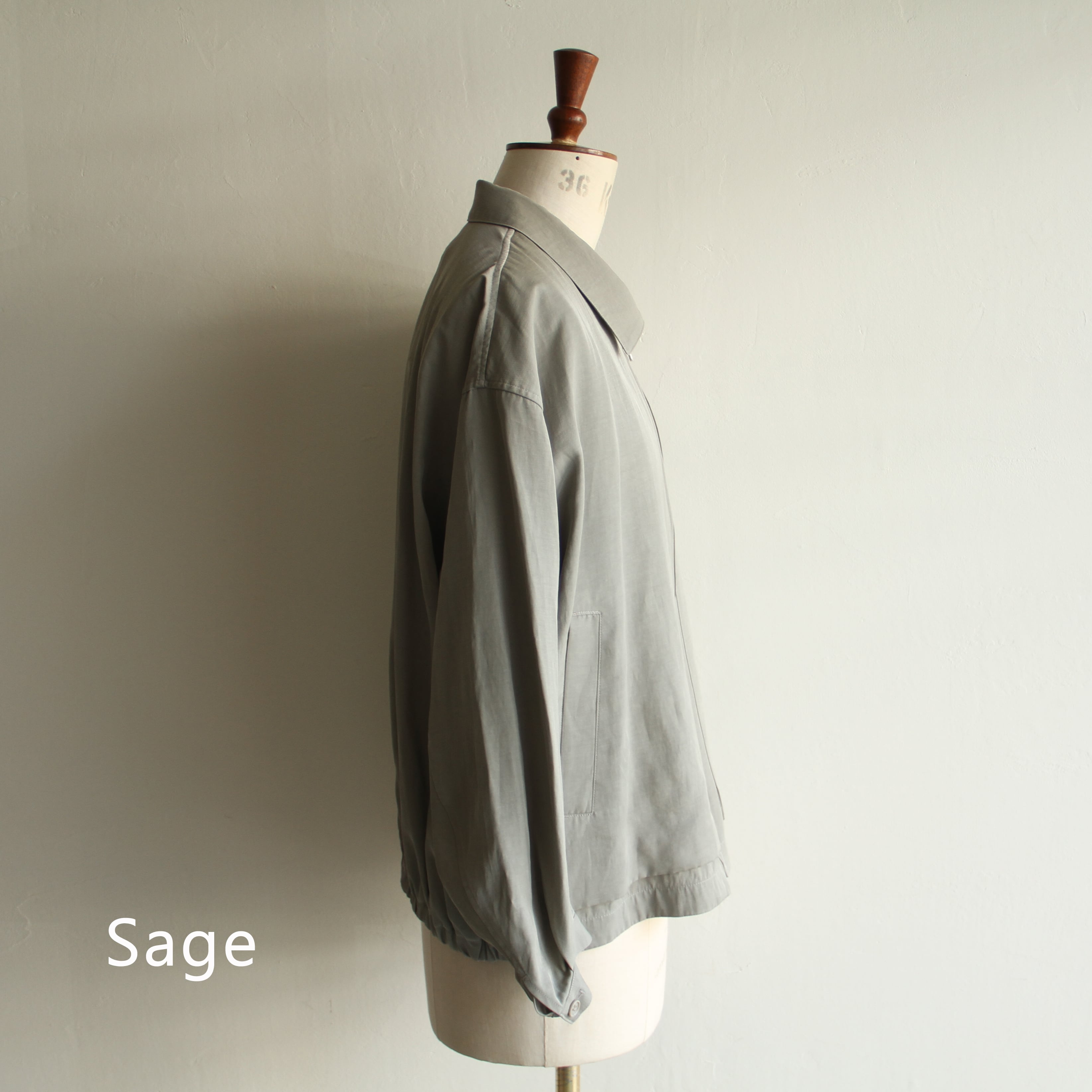 後身頃裾のゴムでドレープ感のあるシルエットを作っていて後ろ姿が綺麗なブルゾンです。