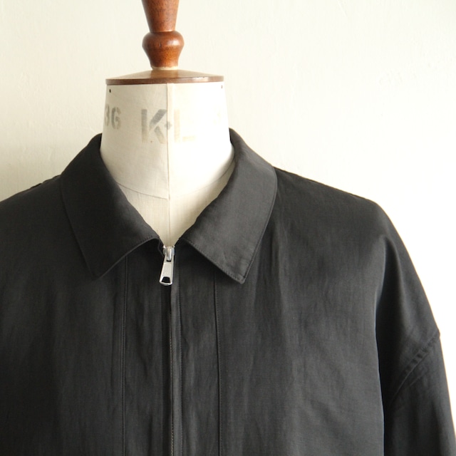 縫製後に洗い加工でプリントを落とし、ムラ感ある表情で作ったジップブルゾン。