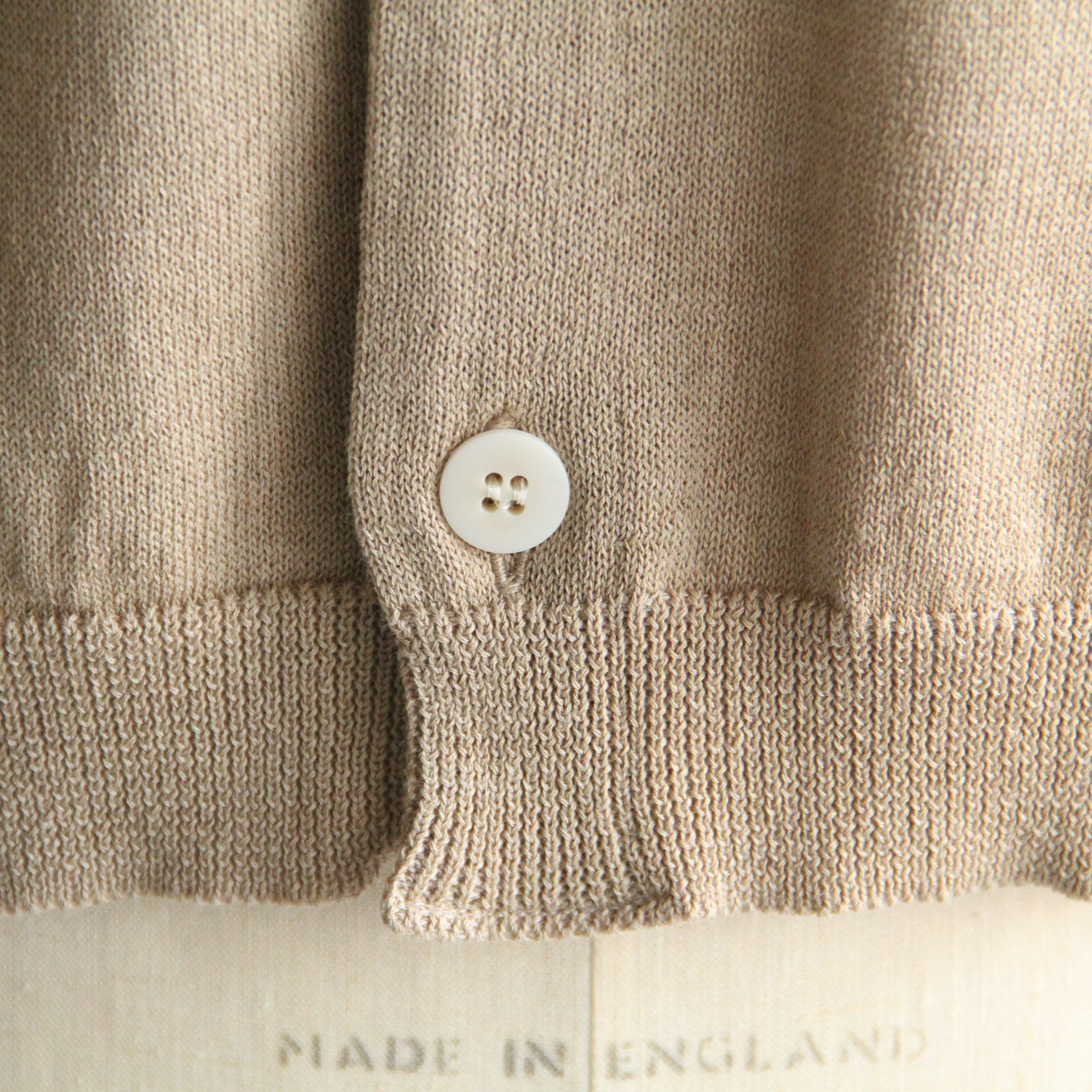 コットン/ポリエステル/リネンの糸を表面にコットンを裏面に使用した12Gニット。