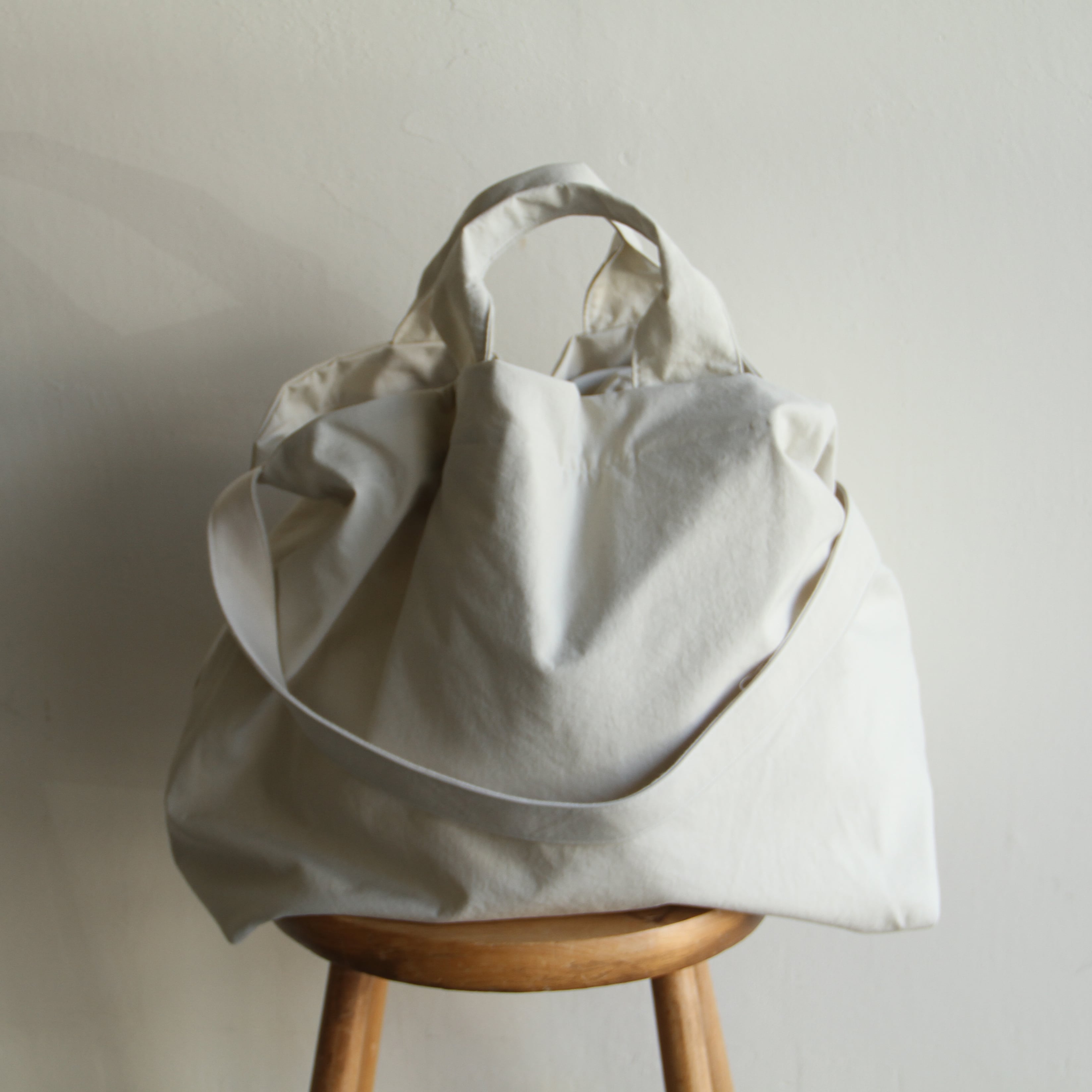 長いストラップを使用して肩掛けと、ショートハンドルでトートバッグとしても使用出来ます。