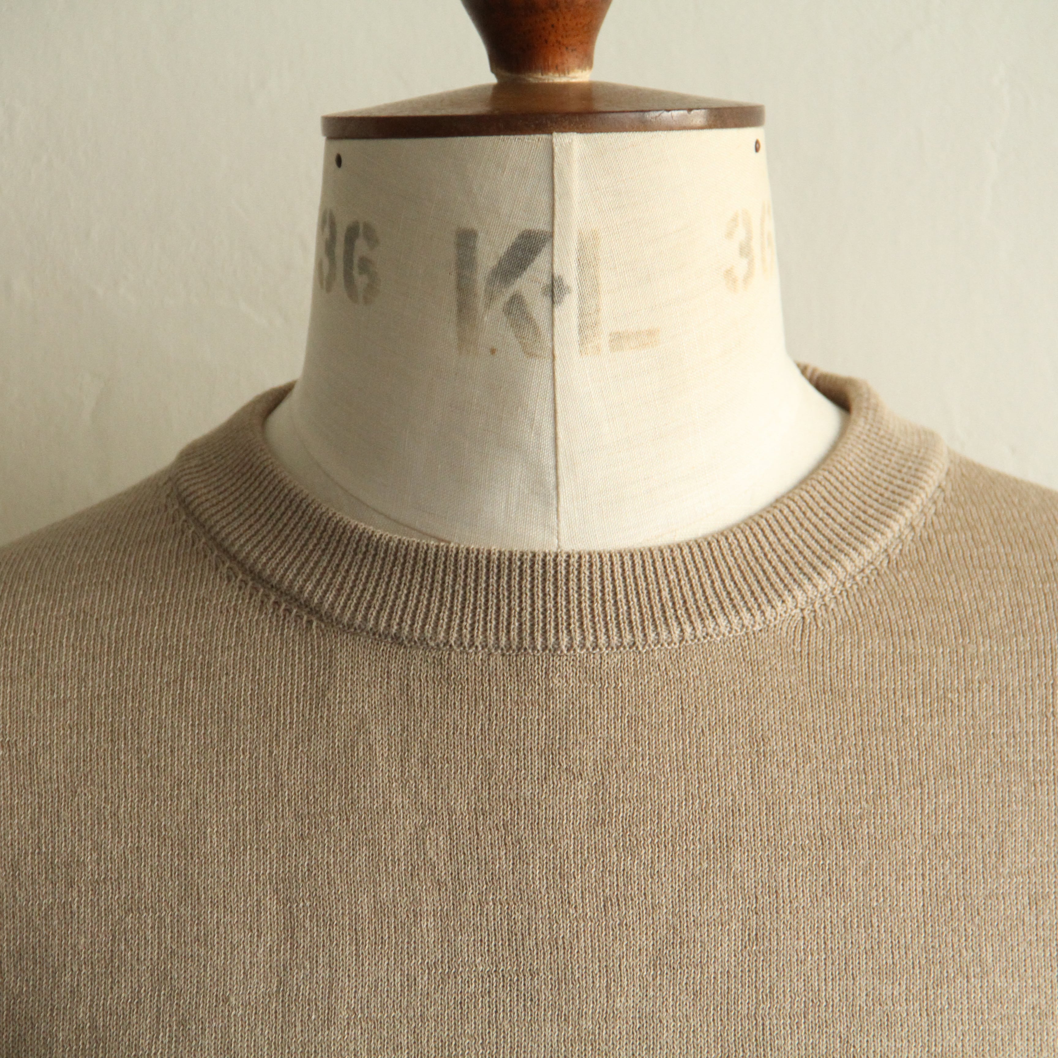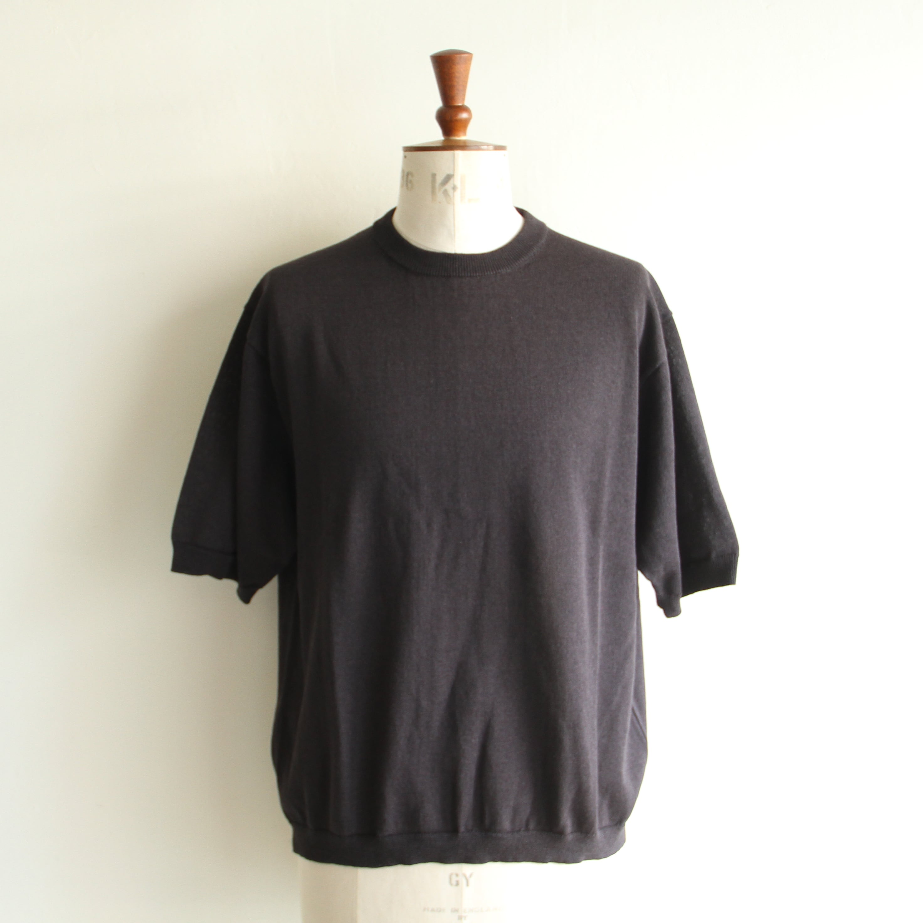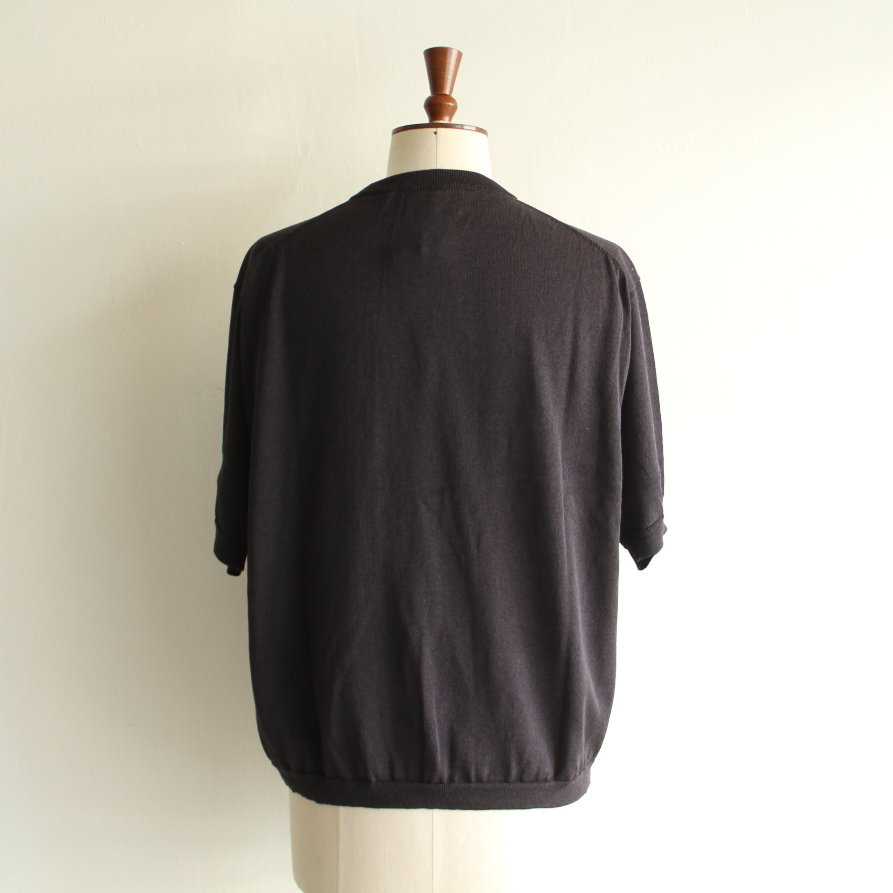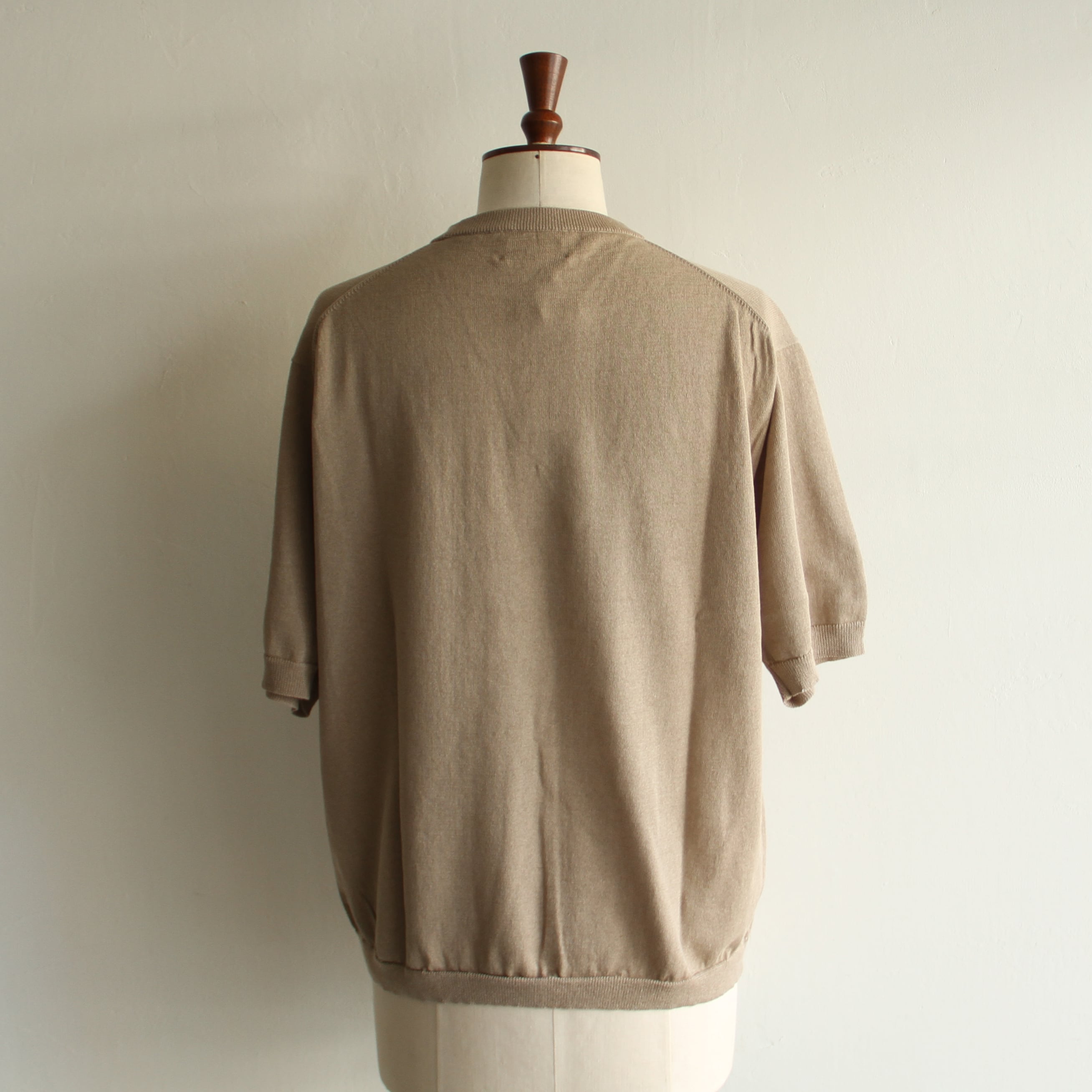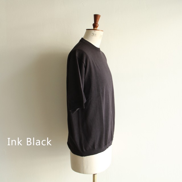 コットン/ポリエステル/リネンの糸を表面にコットンを裏面に使用した12Gニット Tシャツ。