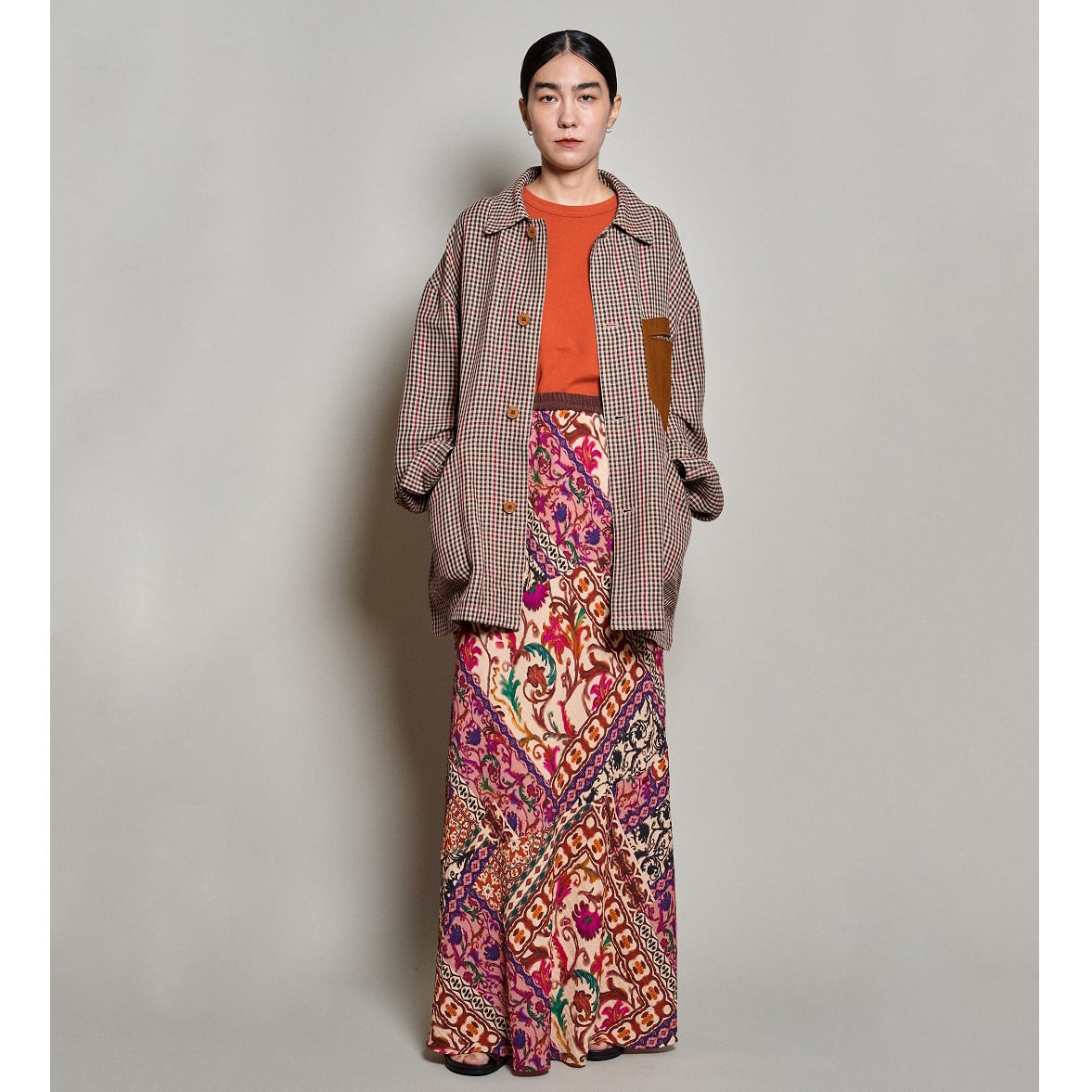 フランス DEVEAUX社に別注したプリント生地を使用したスカート。