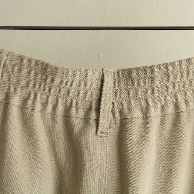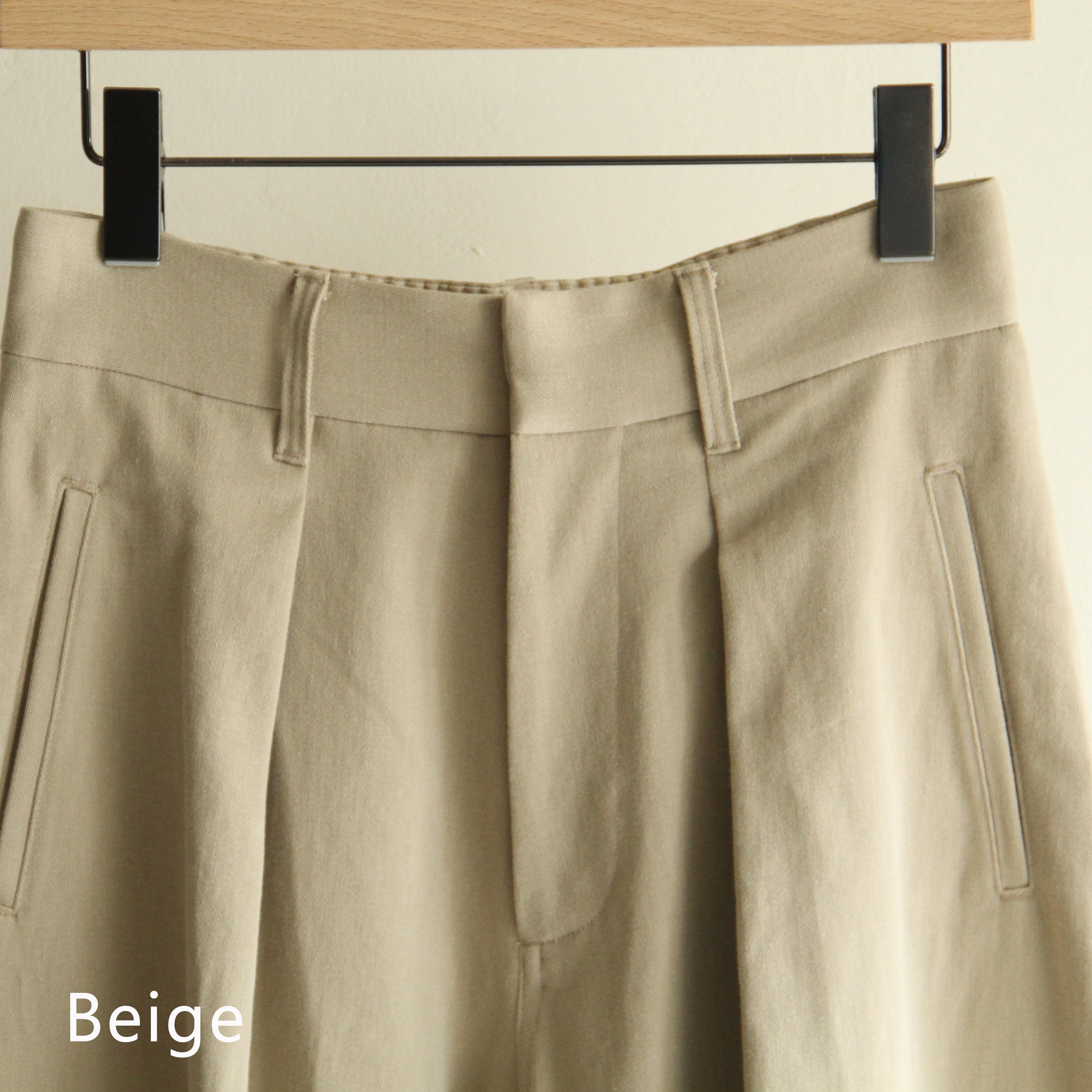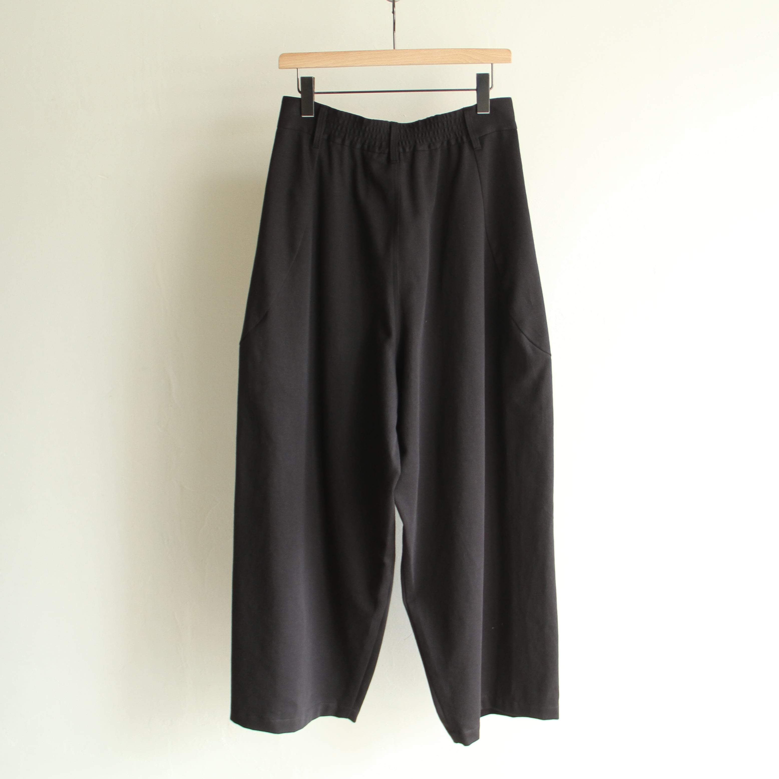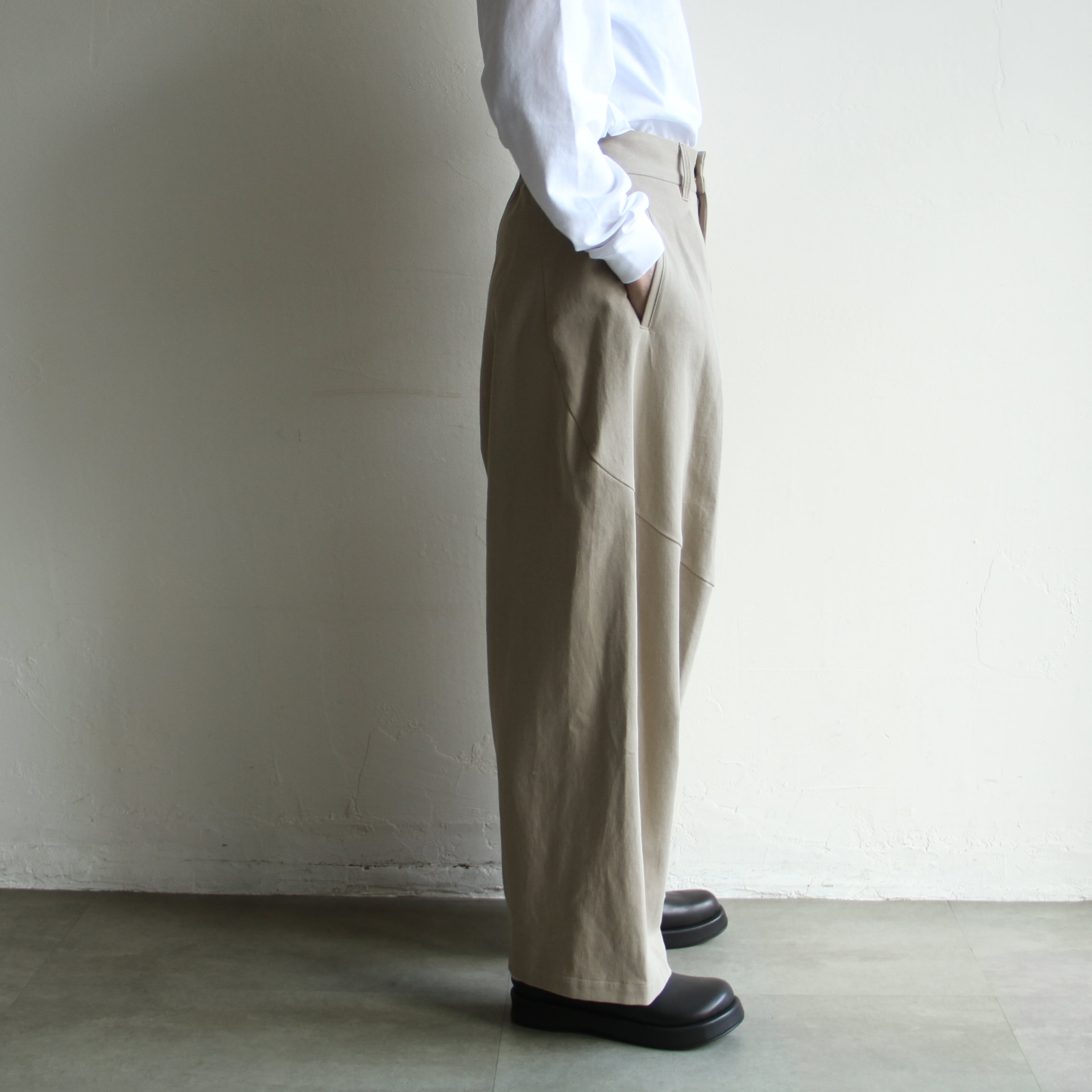 柔らかで落ち感のあるコットンバックサテン生地を使用したバレルパンツ。