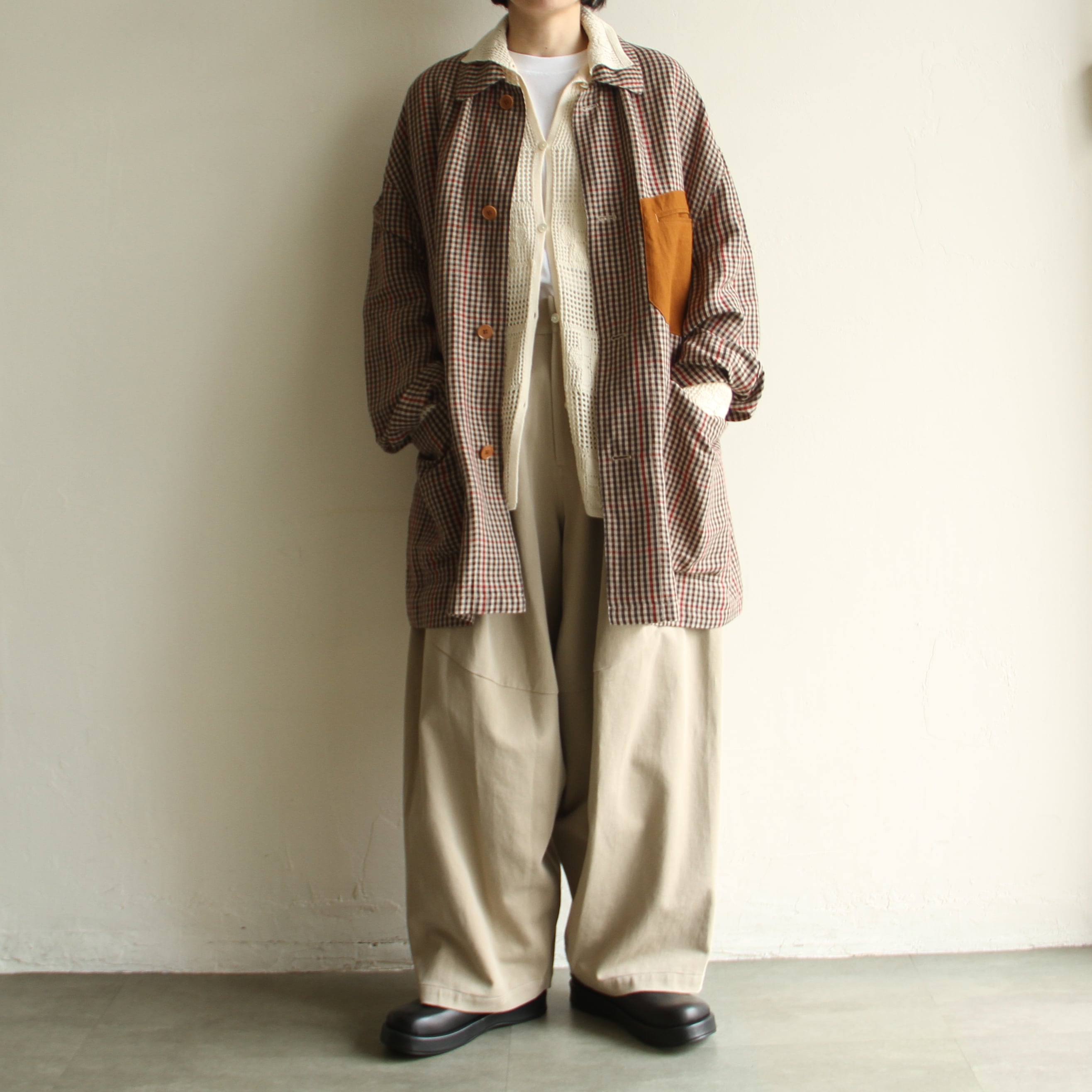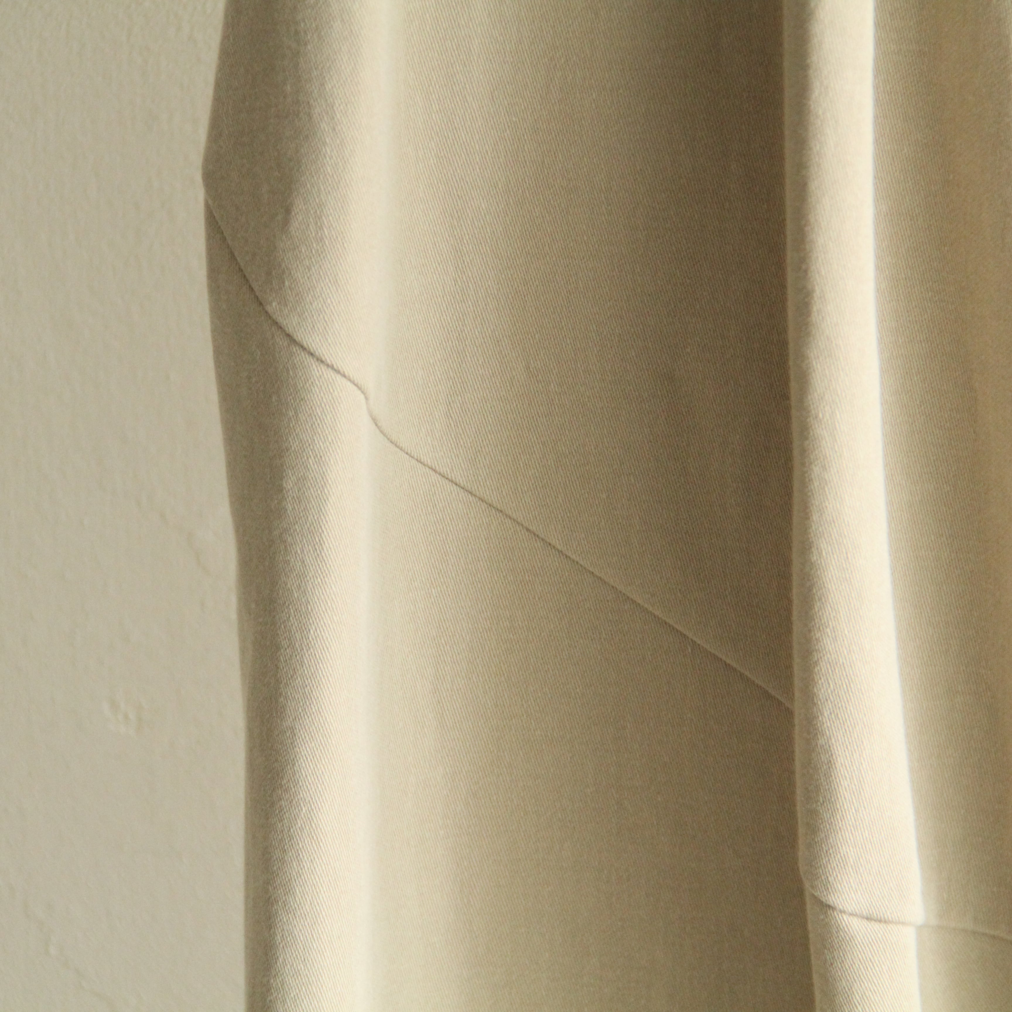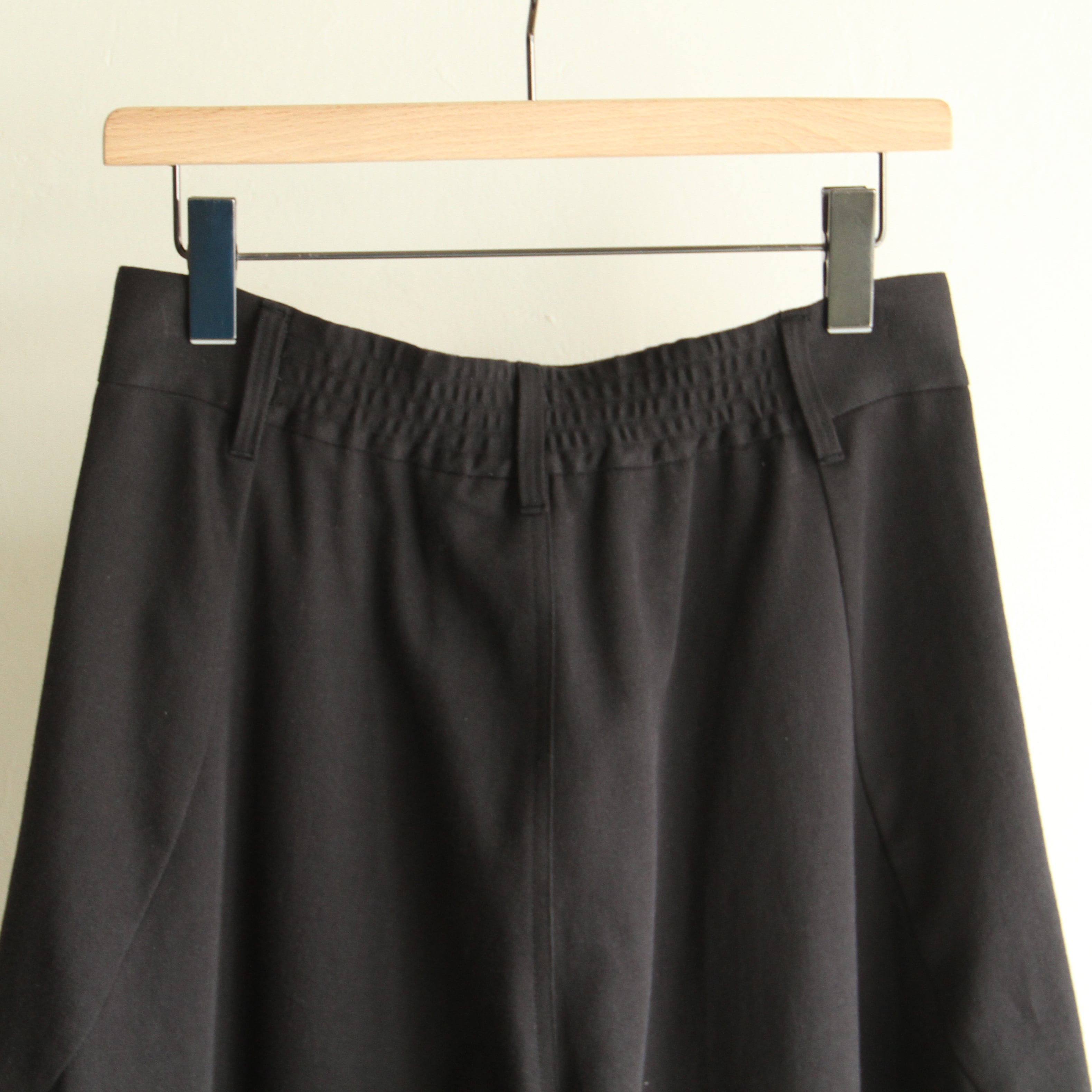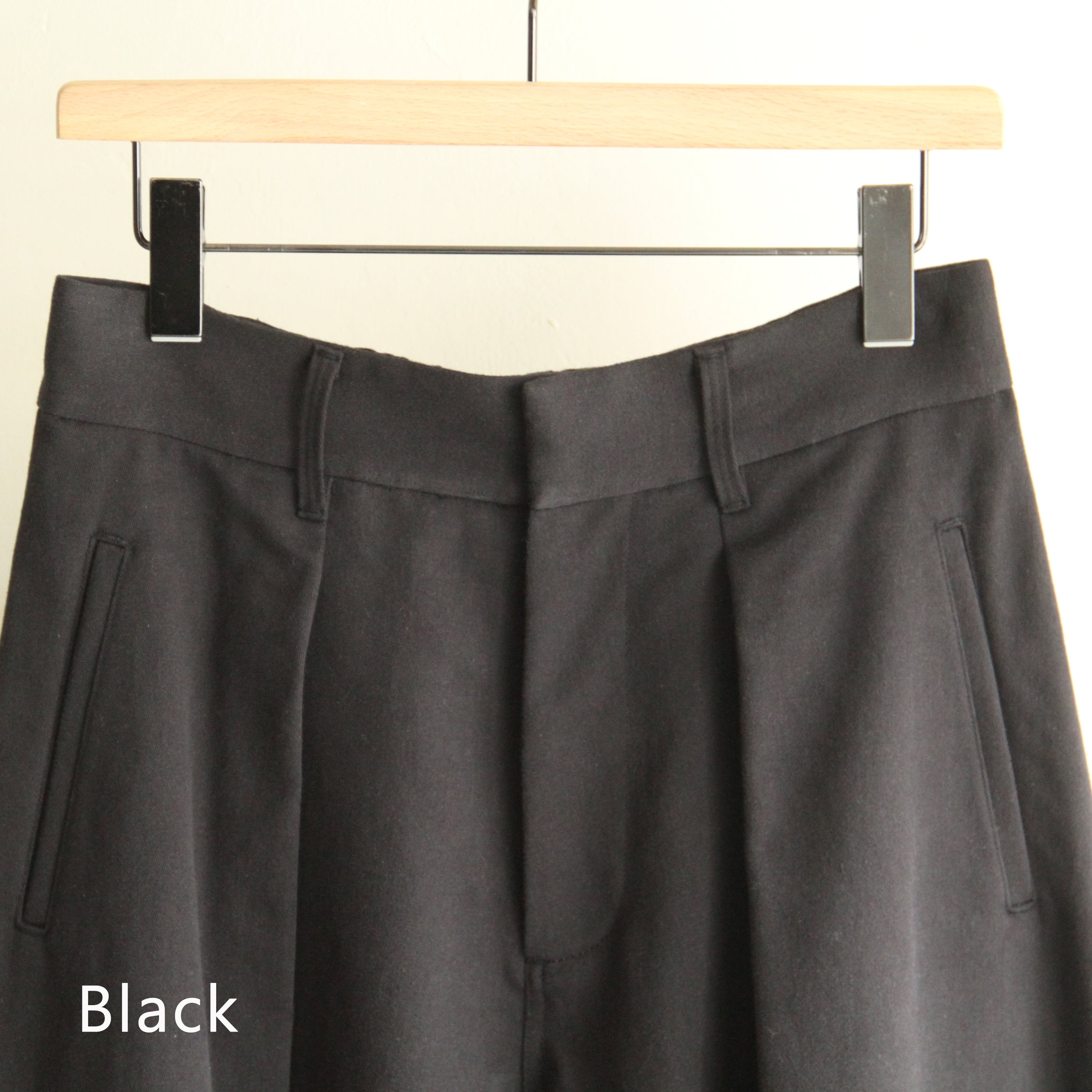 柔らかで落ち感のあるコットンバックサテン生地を使用したバレルパンツ。