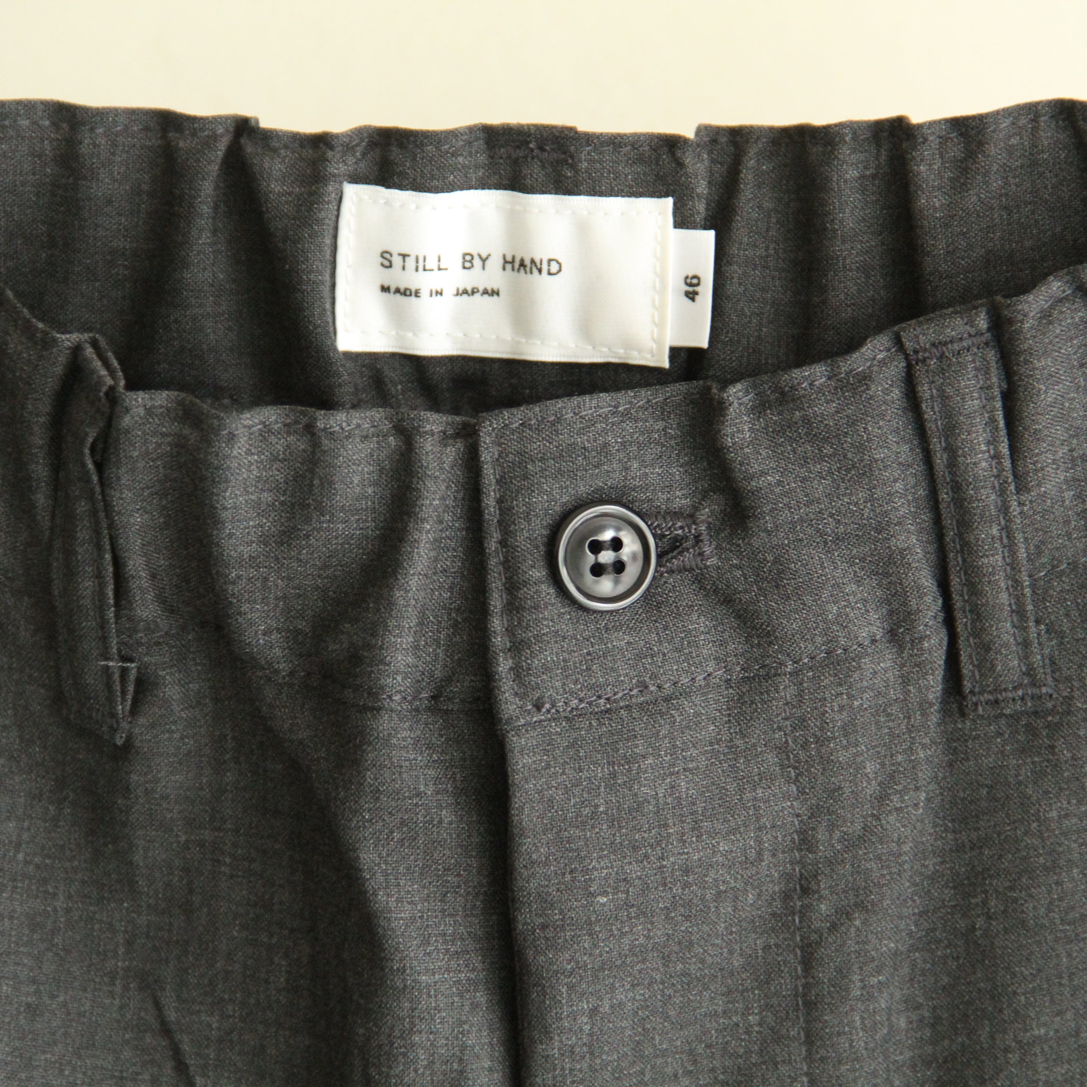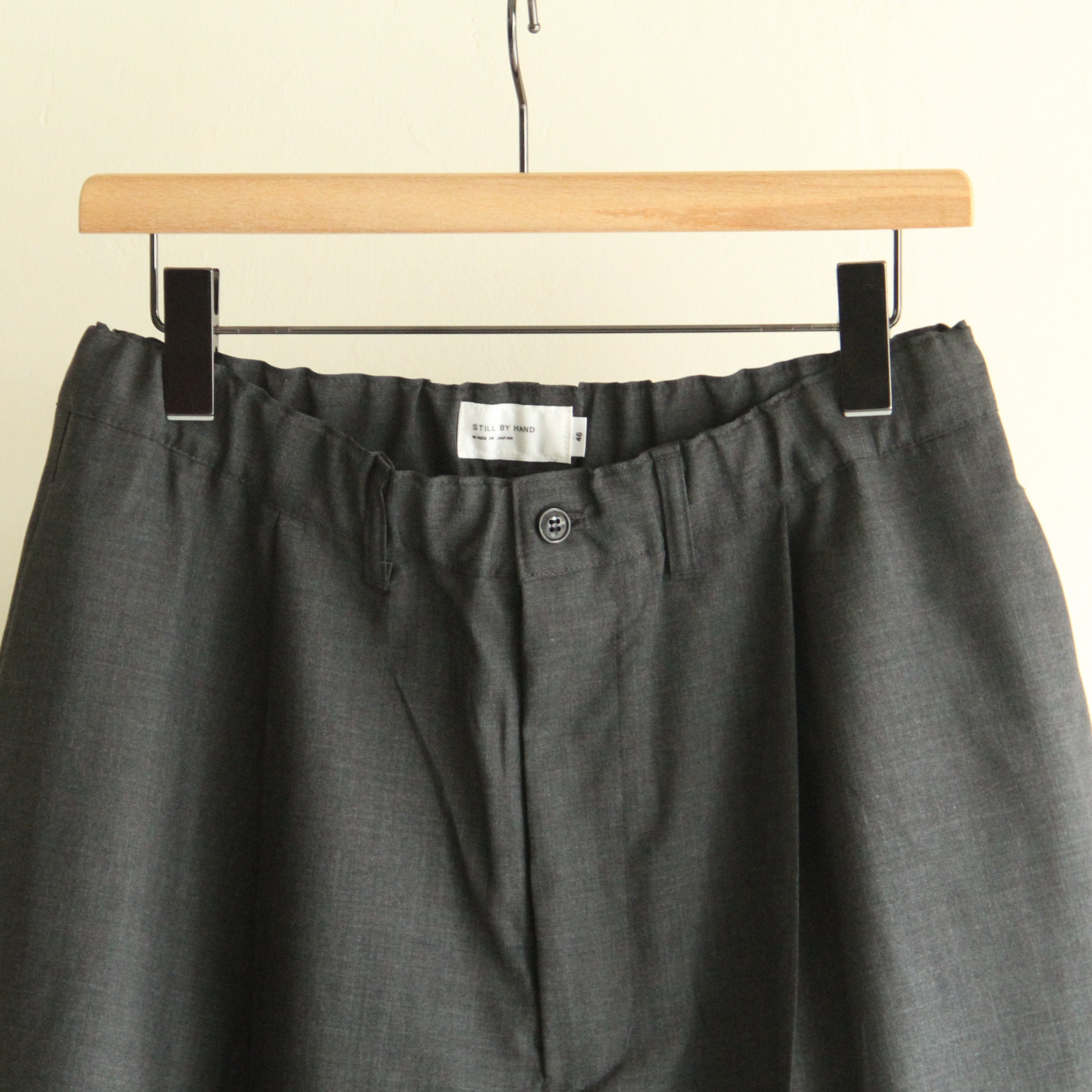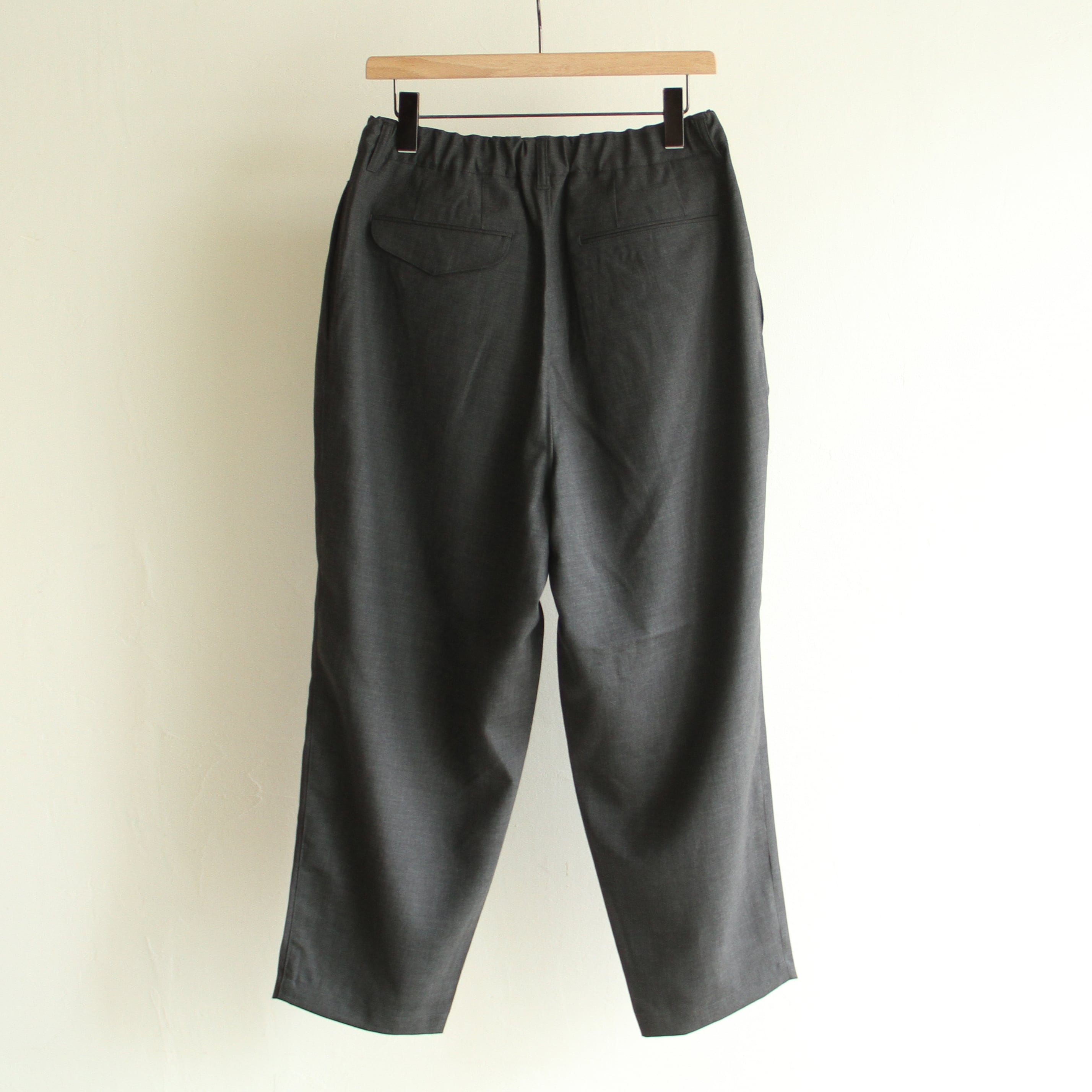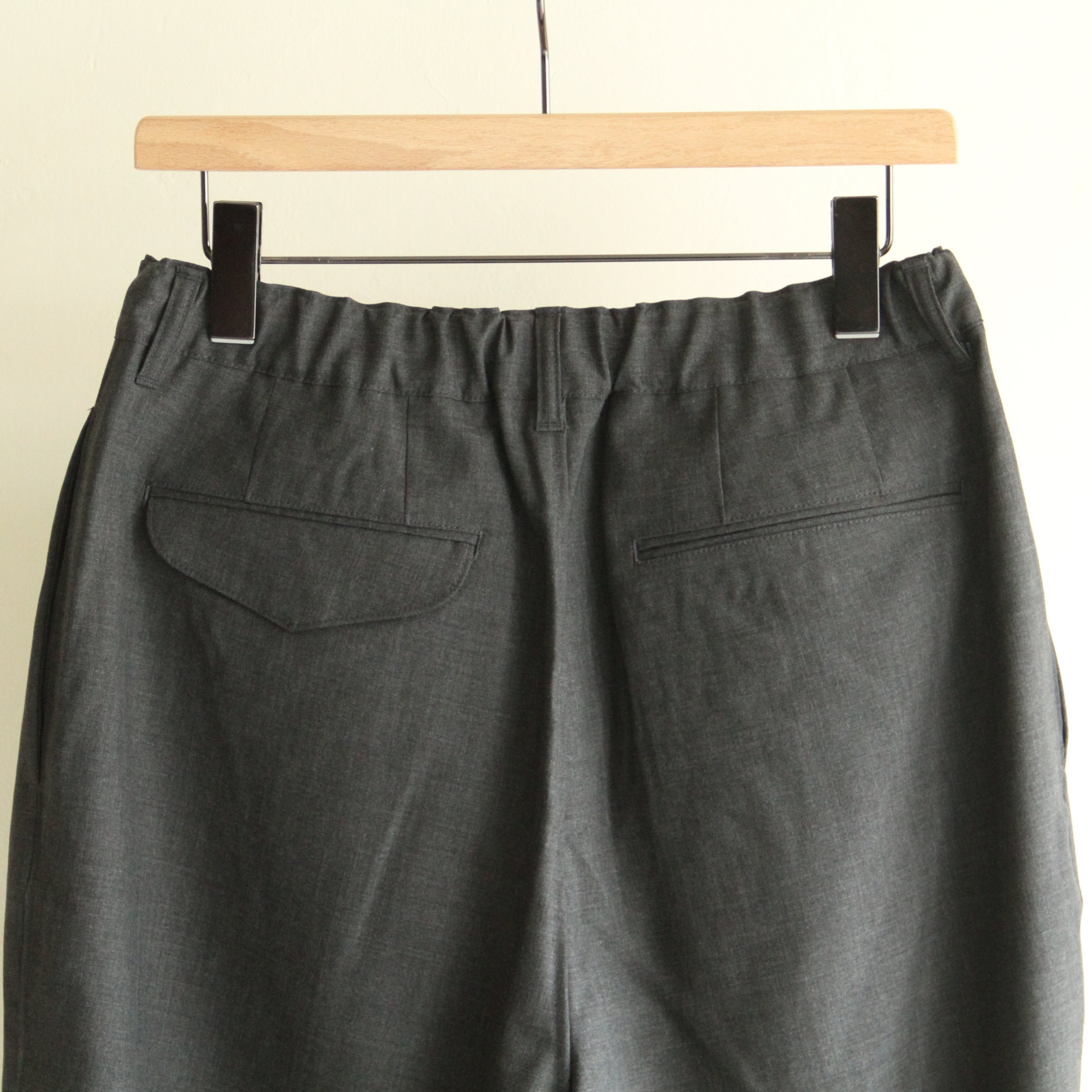 高級素材ですがあえて綺麗なスラックスにせずあえて遊びのある、きついテーパードシルエットに仕上げられています。