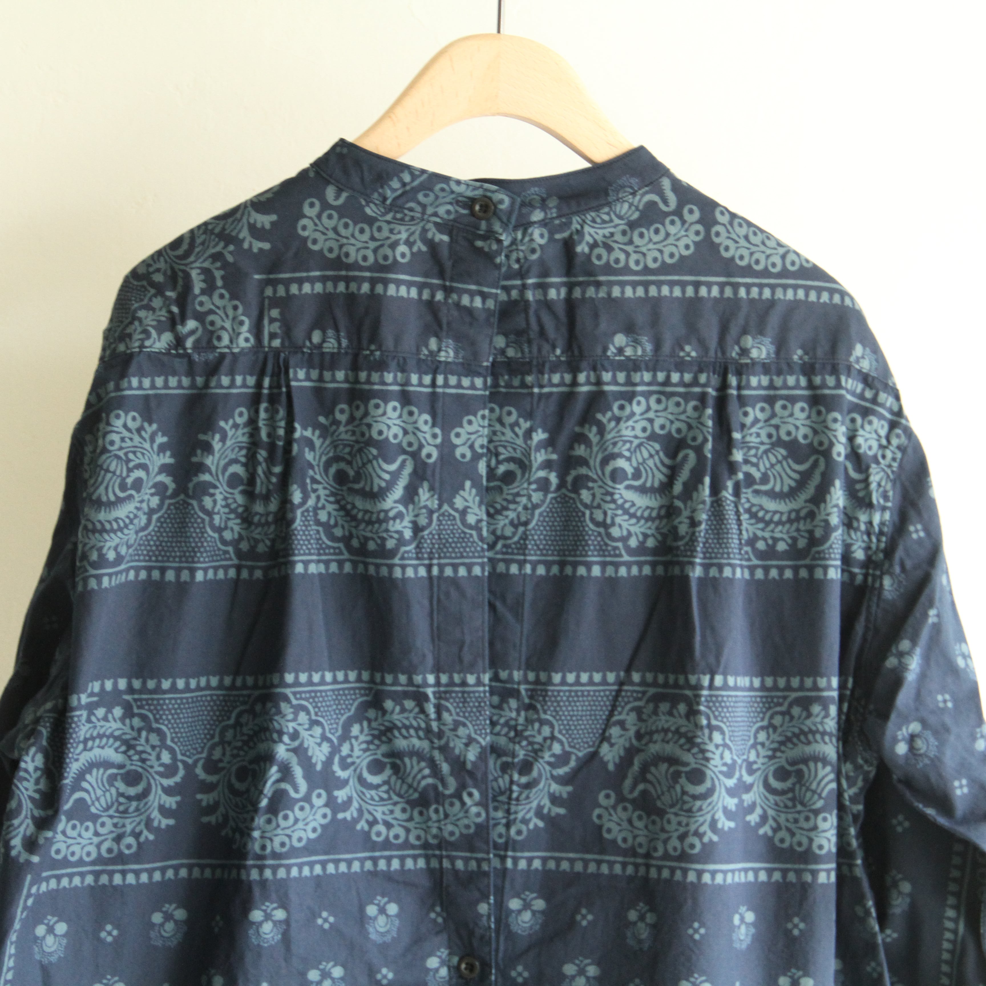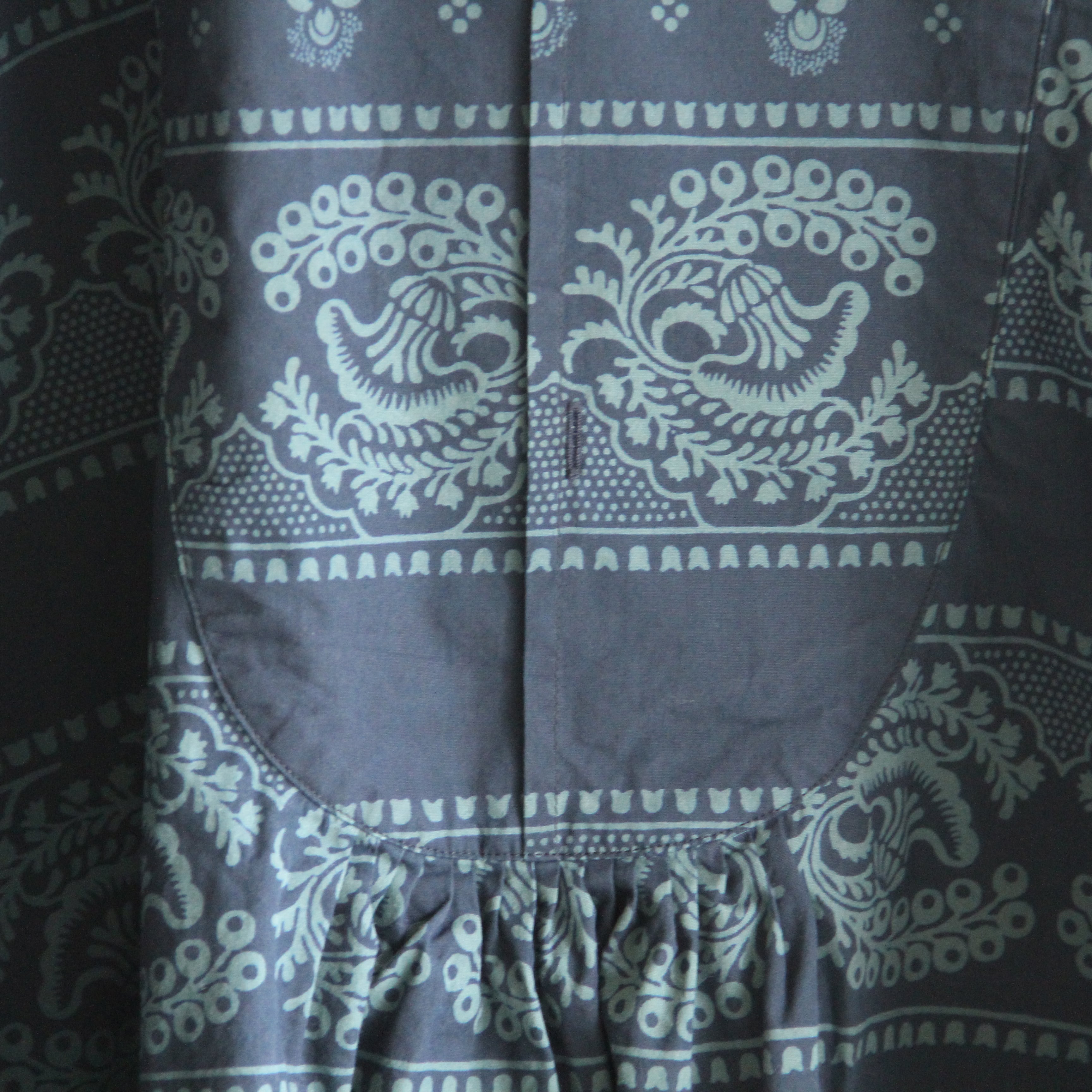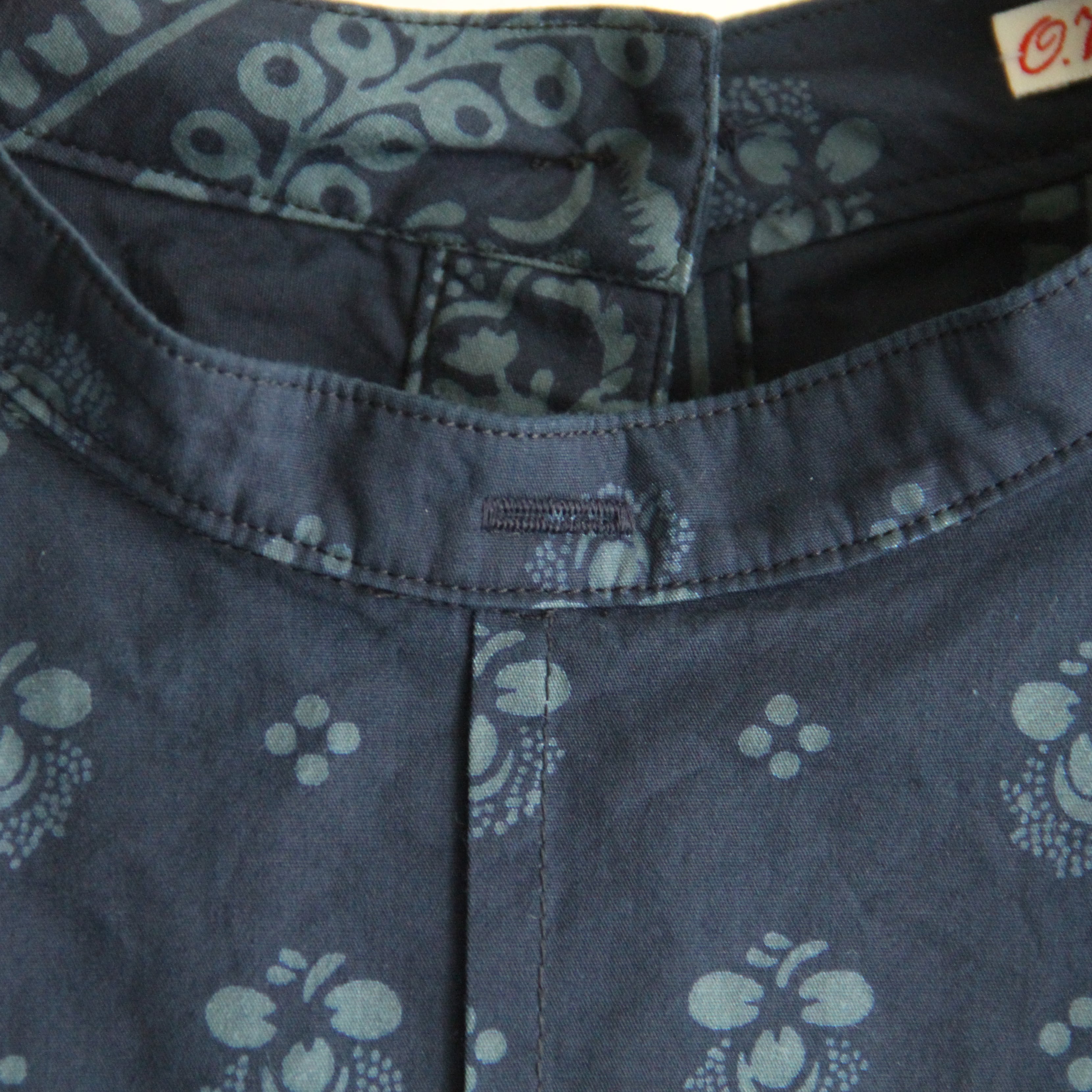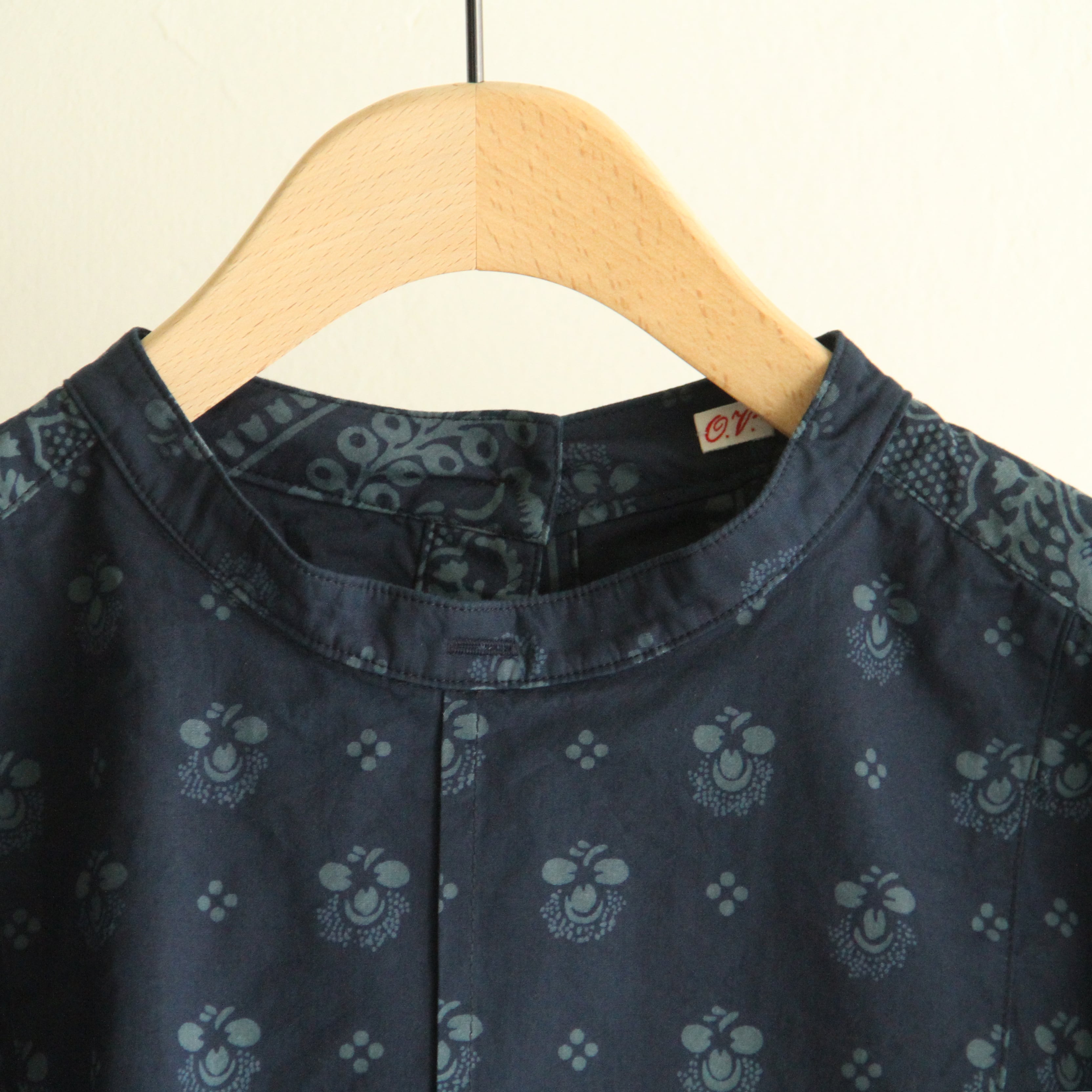 プリントは19世紀フランスのインディゴの抜染プリントの大判ショールを元に作成。